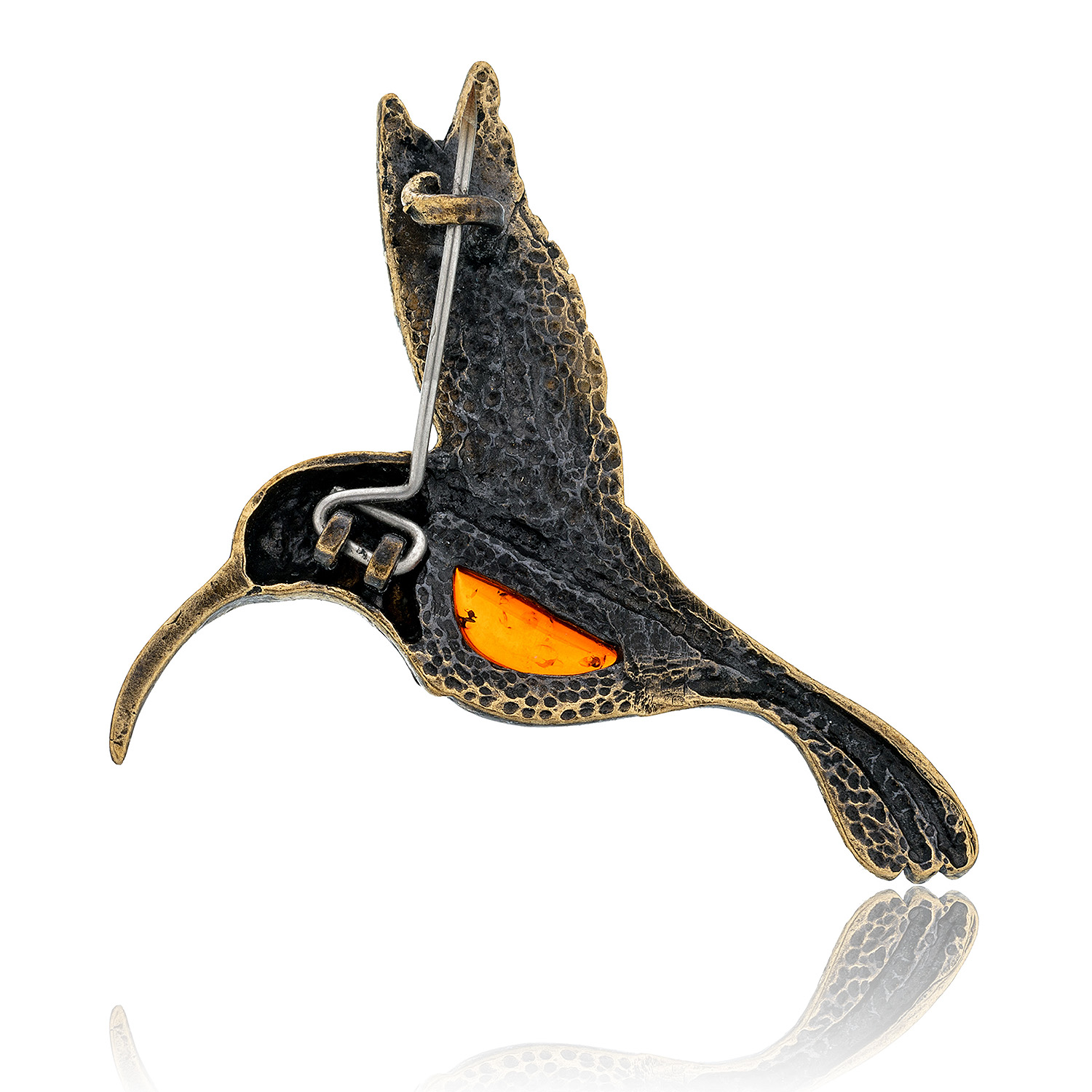 Брошь с янтарем "Колибри" (коньячный)