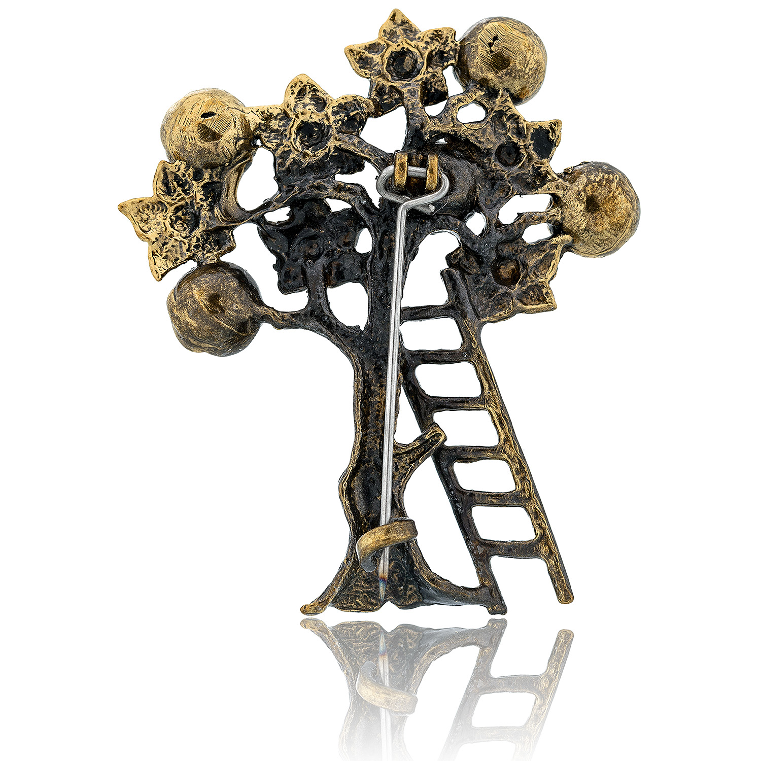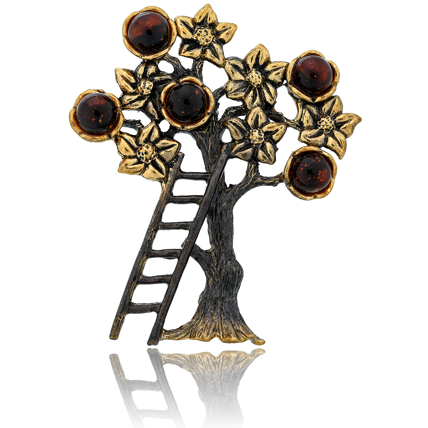 Брошь с янтарем "Урожай яблок" (коньячный)
