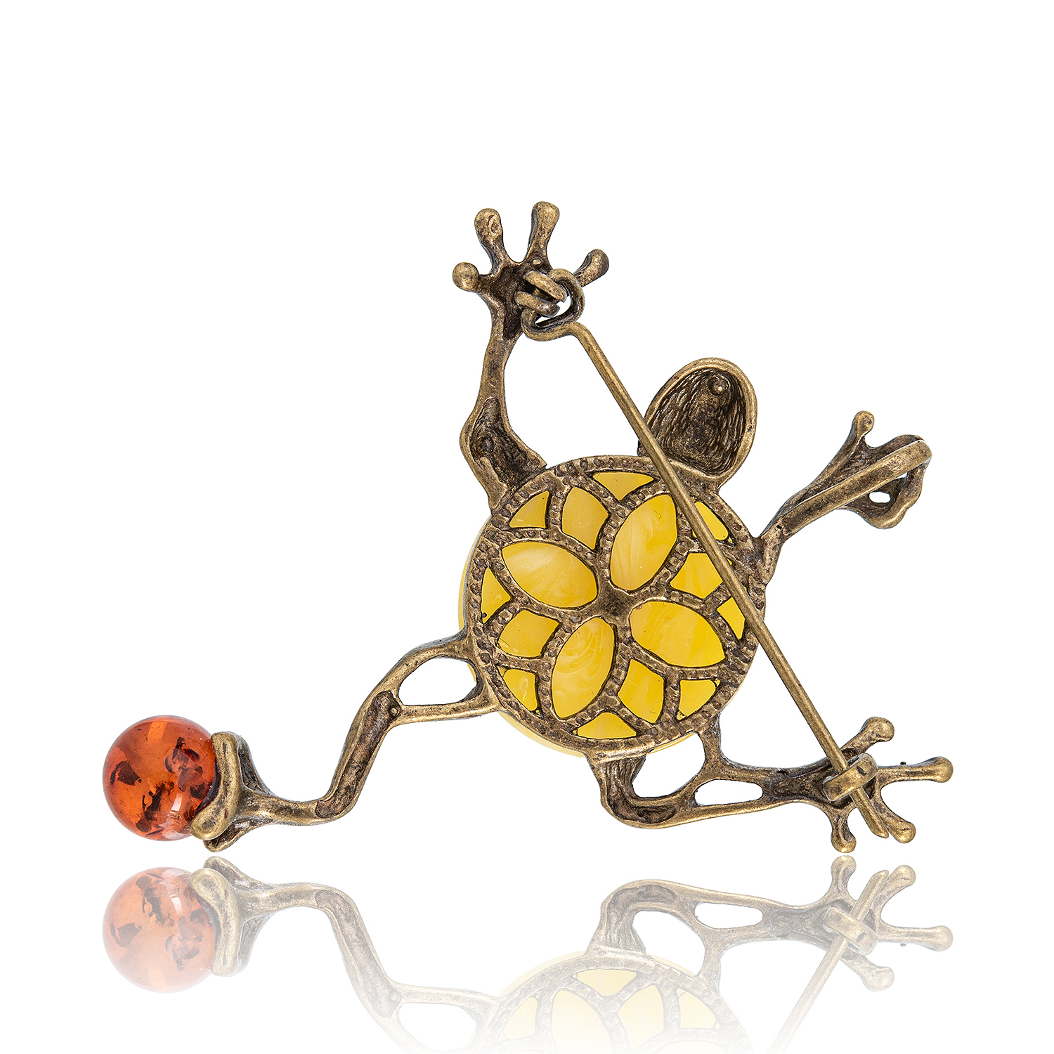 Брошь с янтарной вставкой "Лягушка Пузатик"