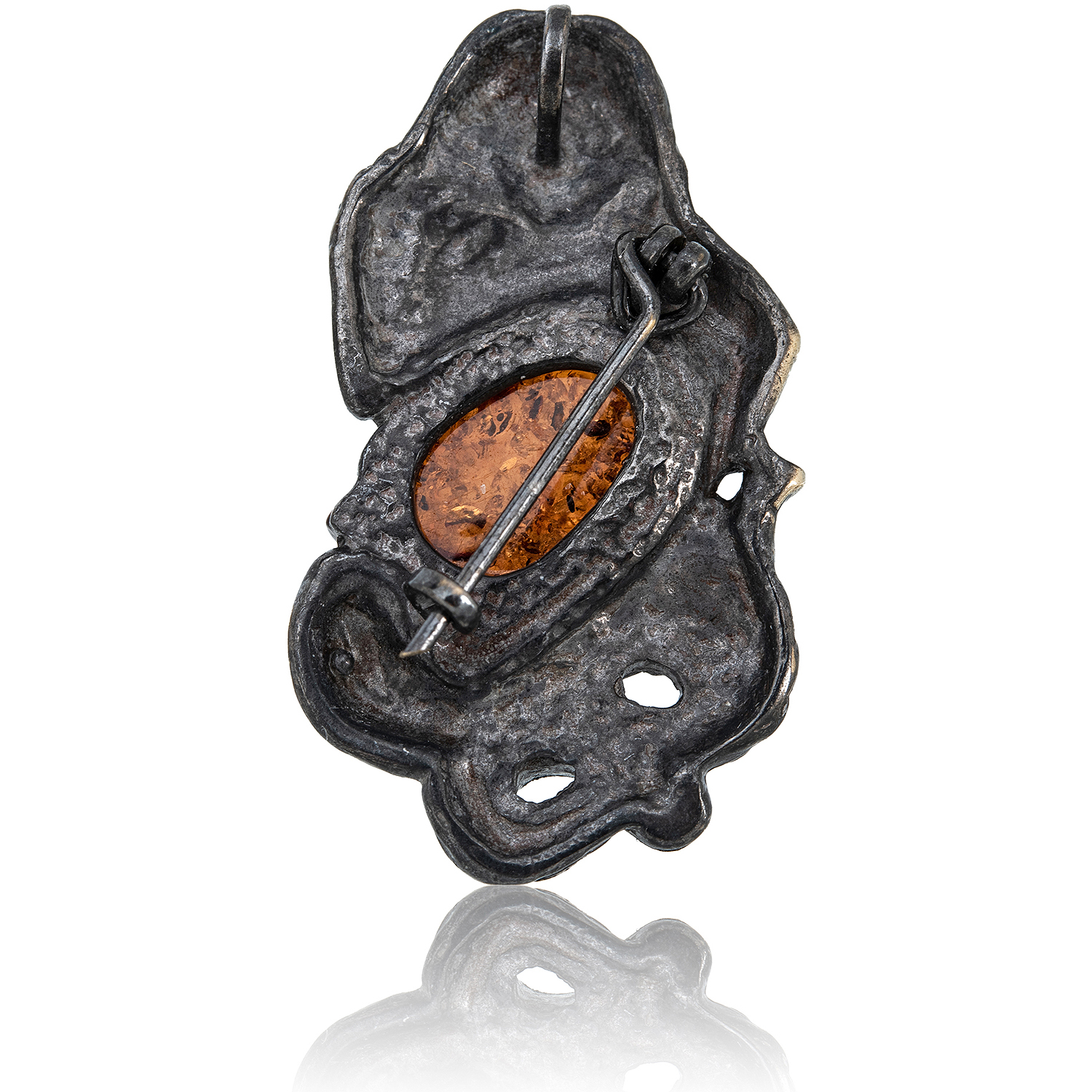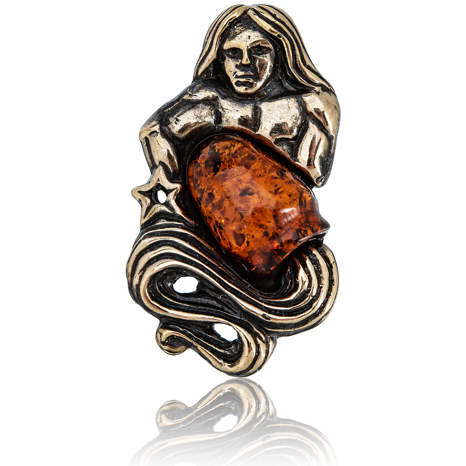 Брошь с янтарной вставкой "Знак зодиака Водолей"