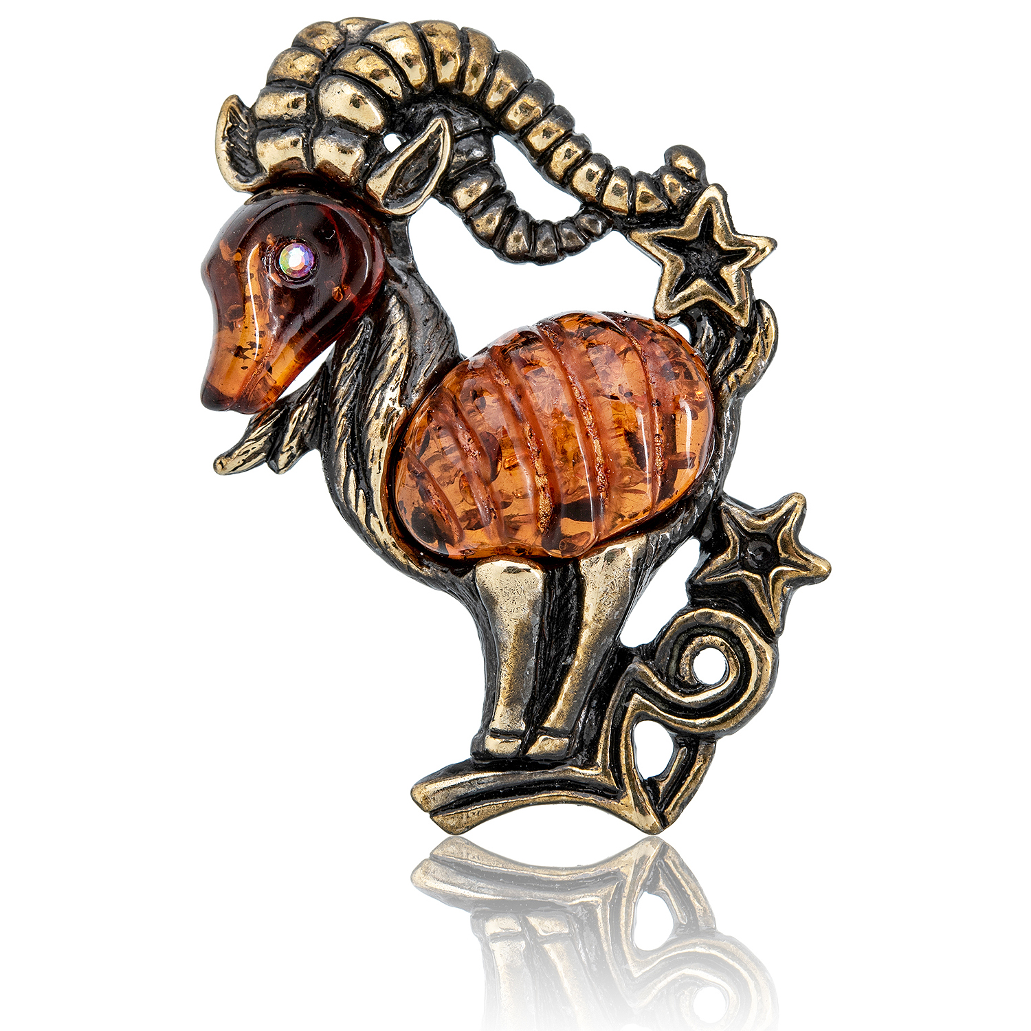 Брошь с янтарной вставкой "Знак зодиака Козерог"