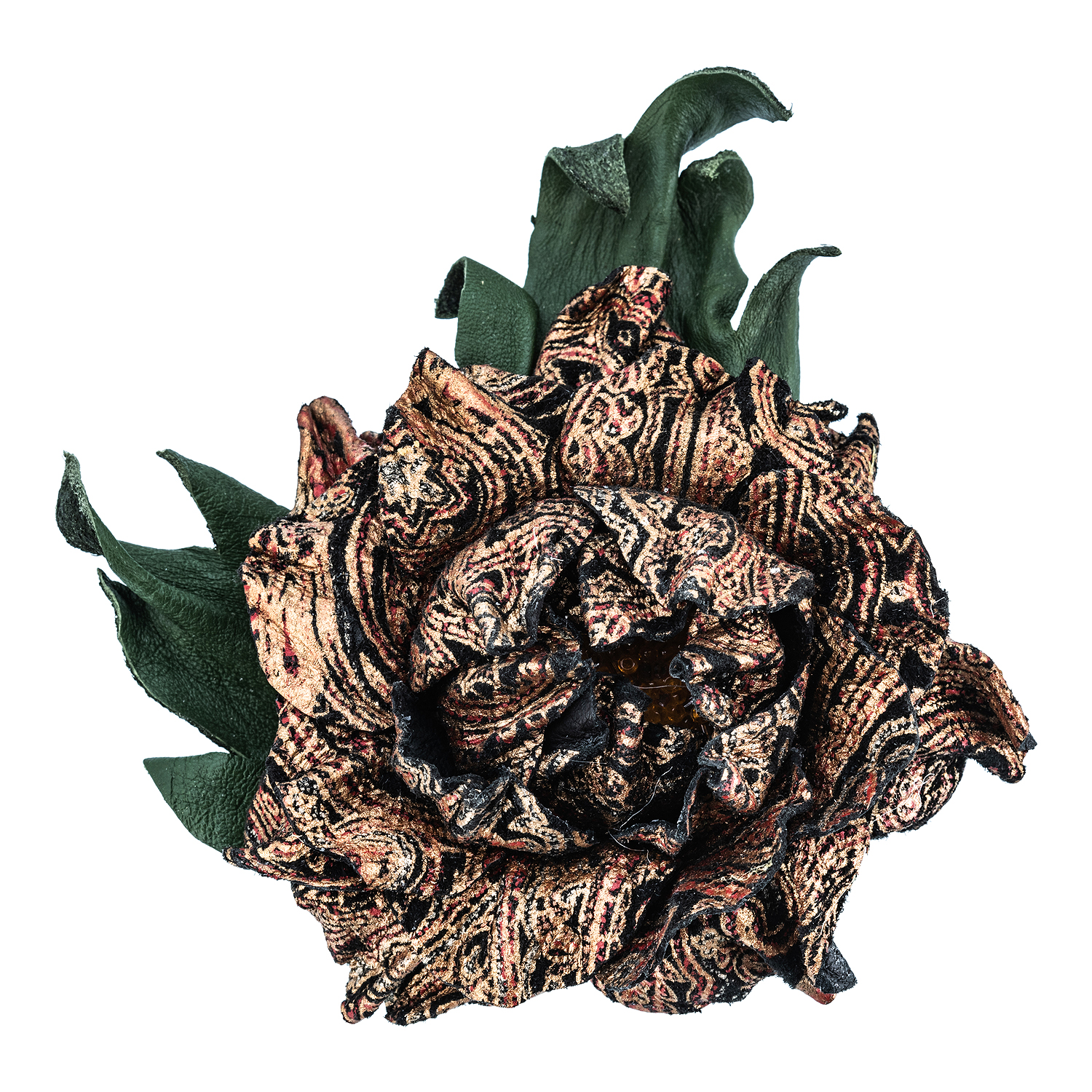 Брошь из натуральной кожи "Цветок"