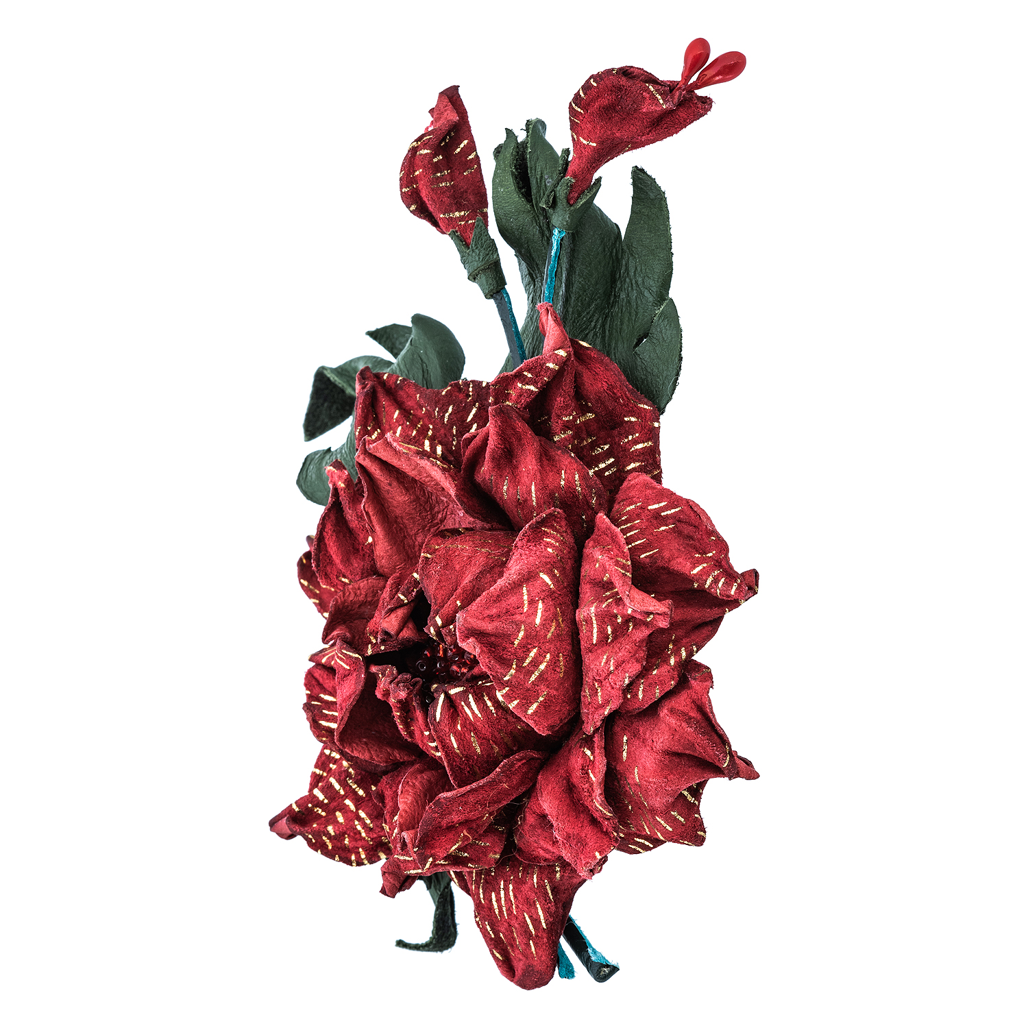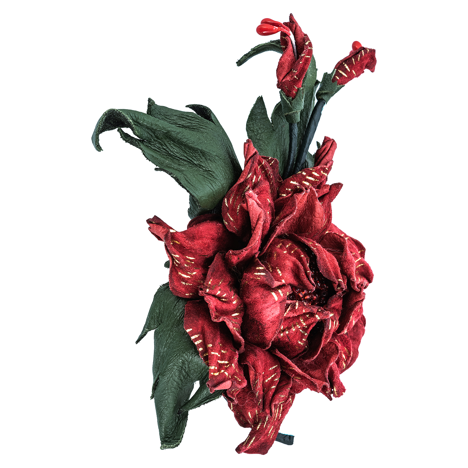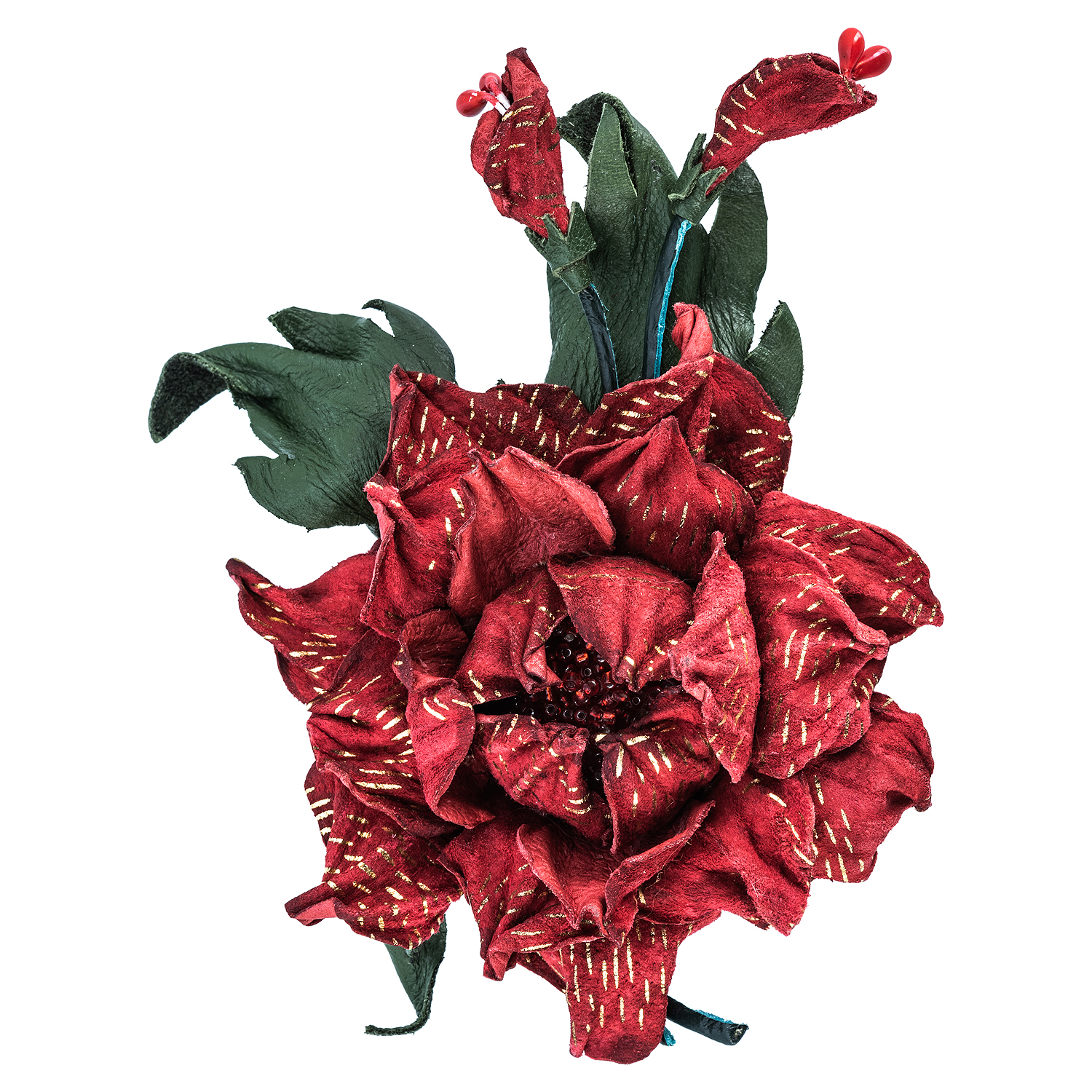 Брошь из натуральной кожи "Цветок".Размер: 140х110 мм