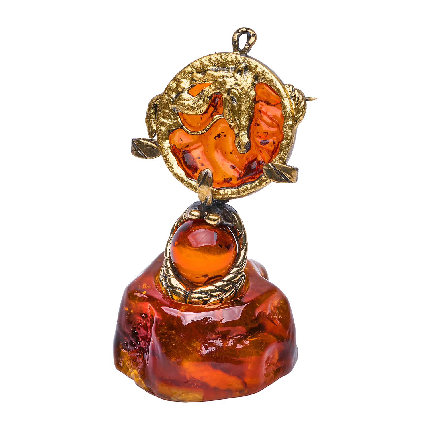 Лошадь Символ 2026 года. Брошь-кулон "Мой конь всегда со мной".Материалы: янтарь, латунь.