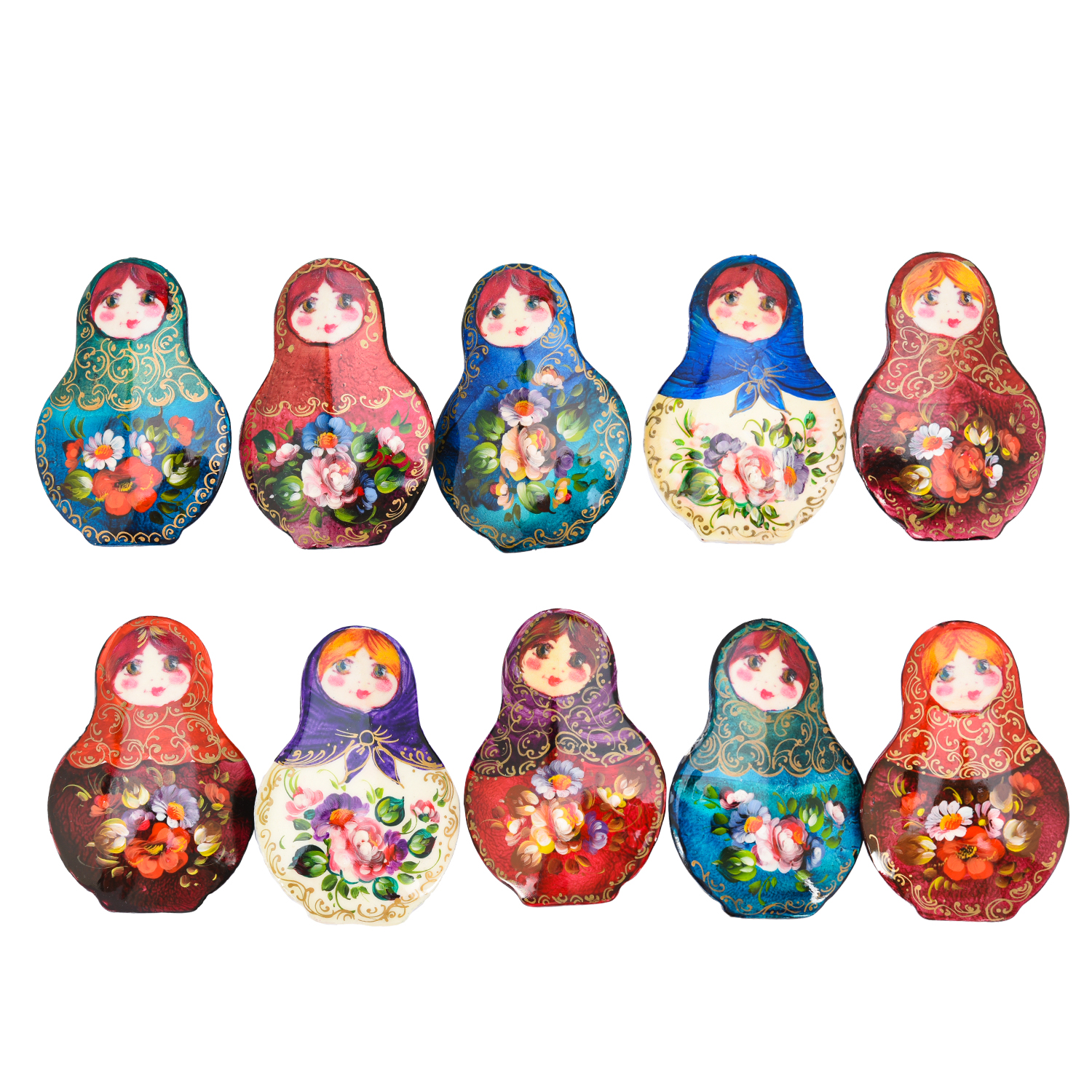 Русские подарки и сувениры → Украшения → Броши → Брошь с ручной росписью "Жостово. Матрешка" (в ассортименте)