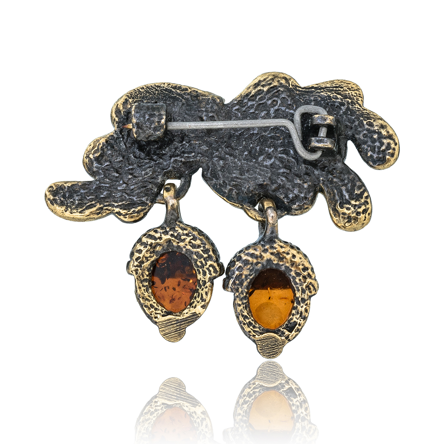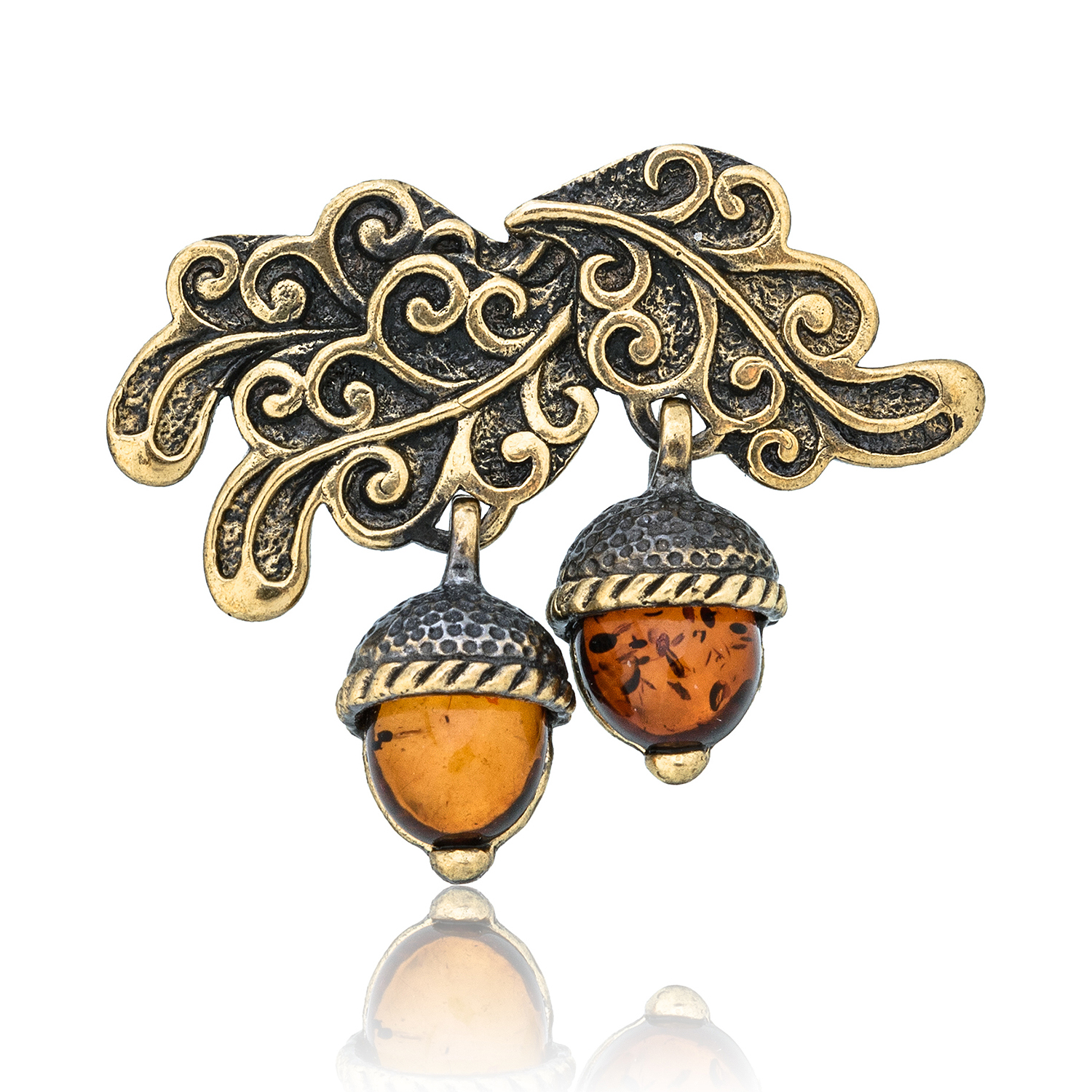 Брошь с янтарной вставкой "Желуди"