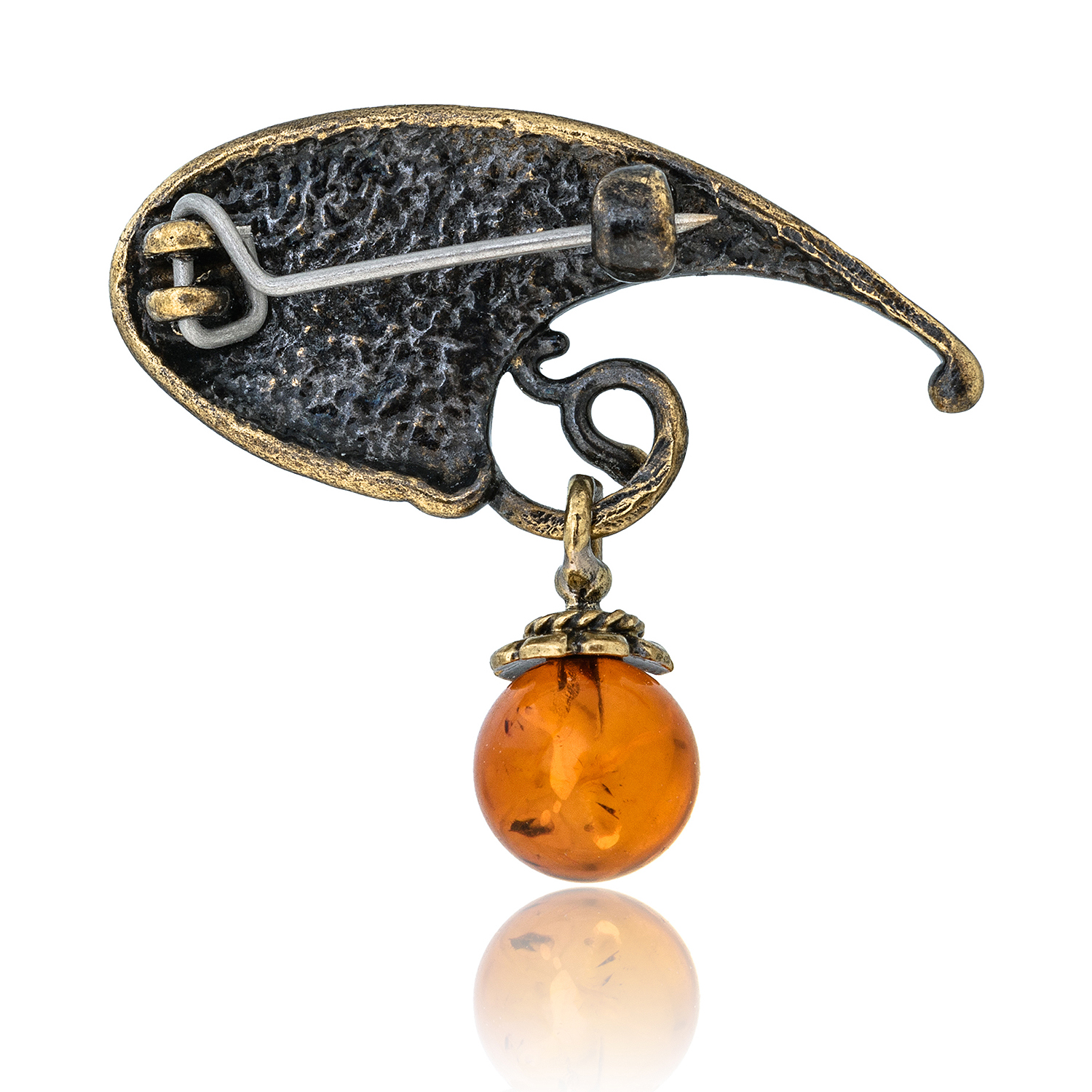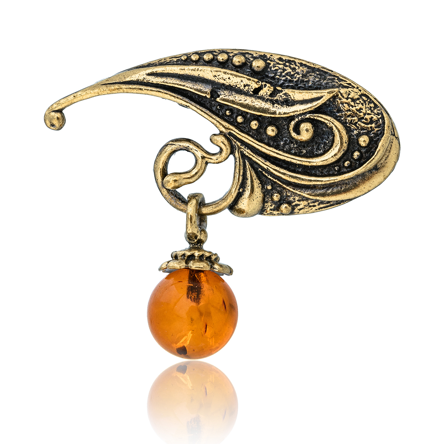 Брошь с янтарной вставкой "Колокольчик"