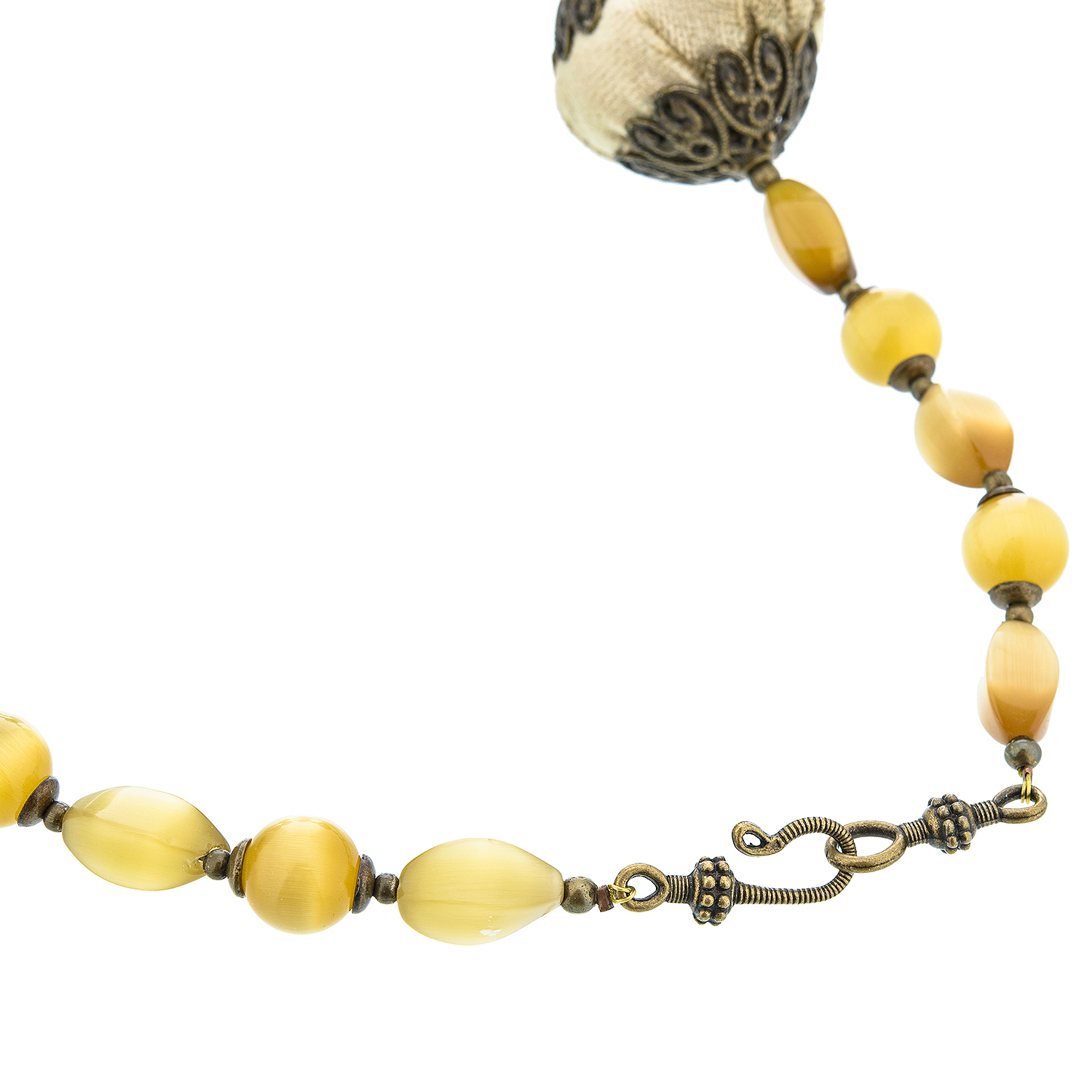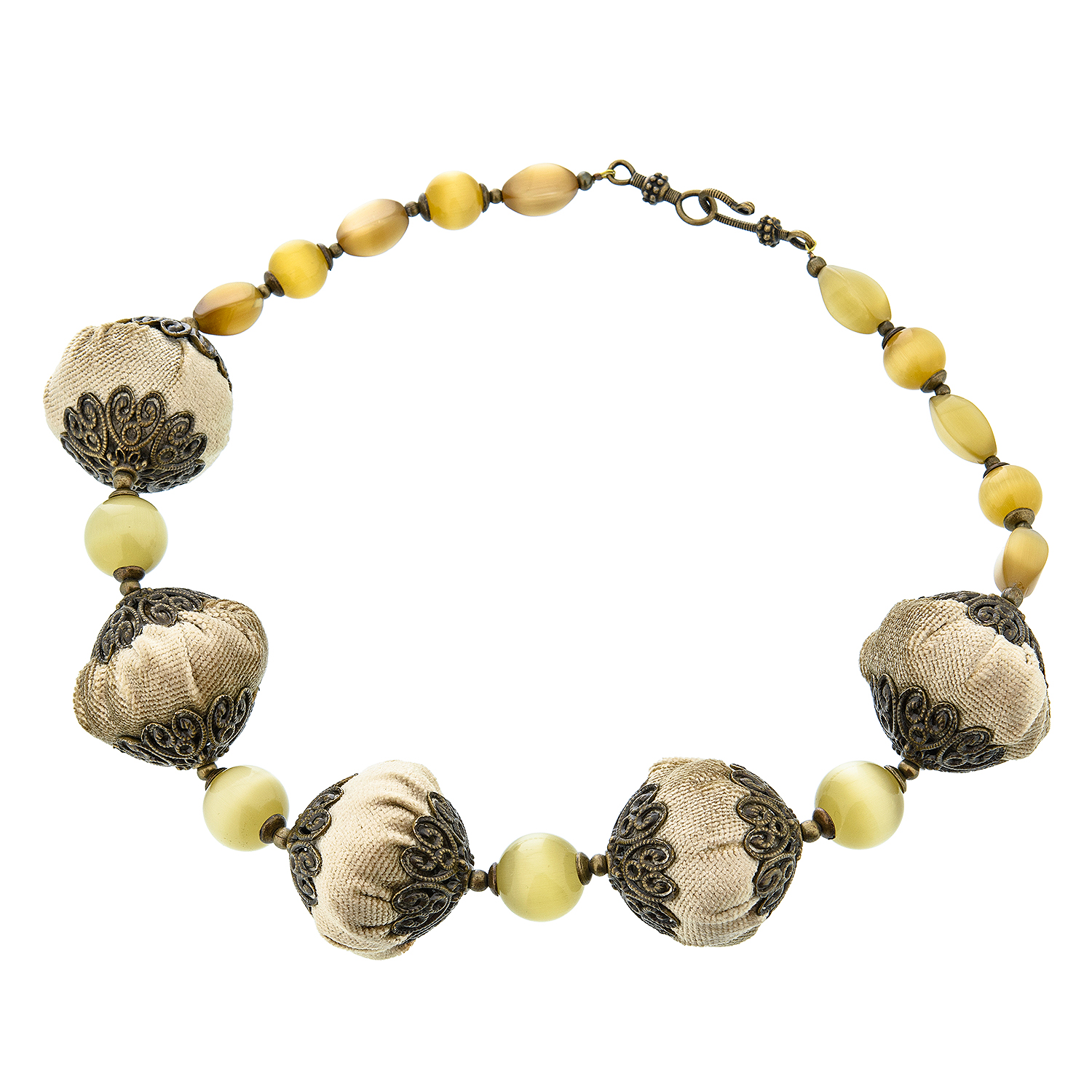 Бусы из натурального камня.Материалы: кошачий глаз, бархат, бронза.