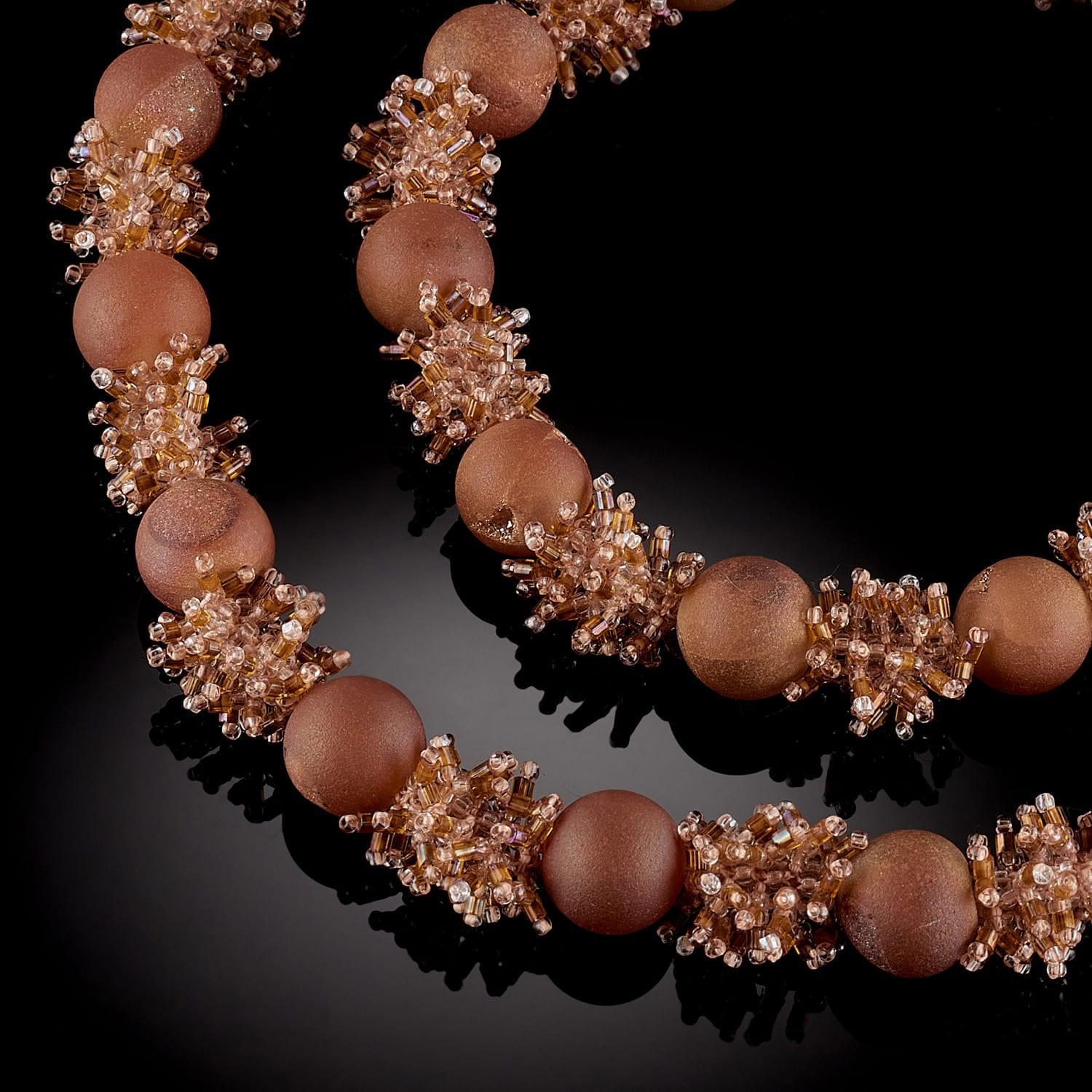 Колье из бисера с натуральными камнями. Пирит