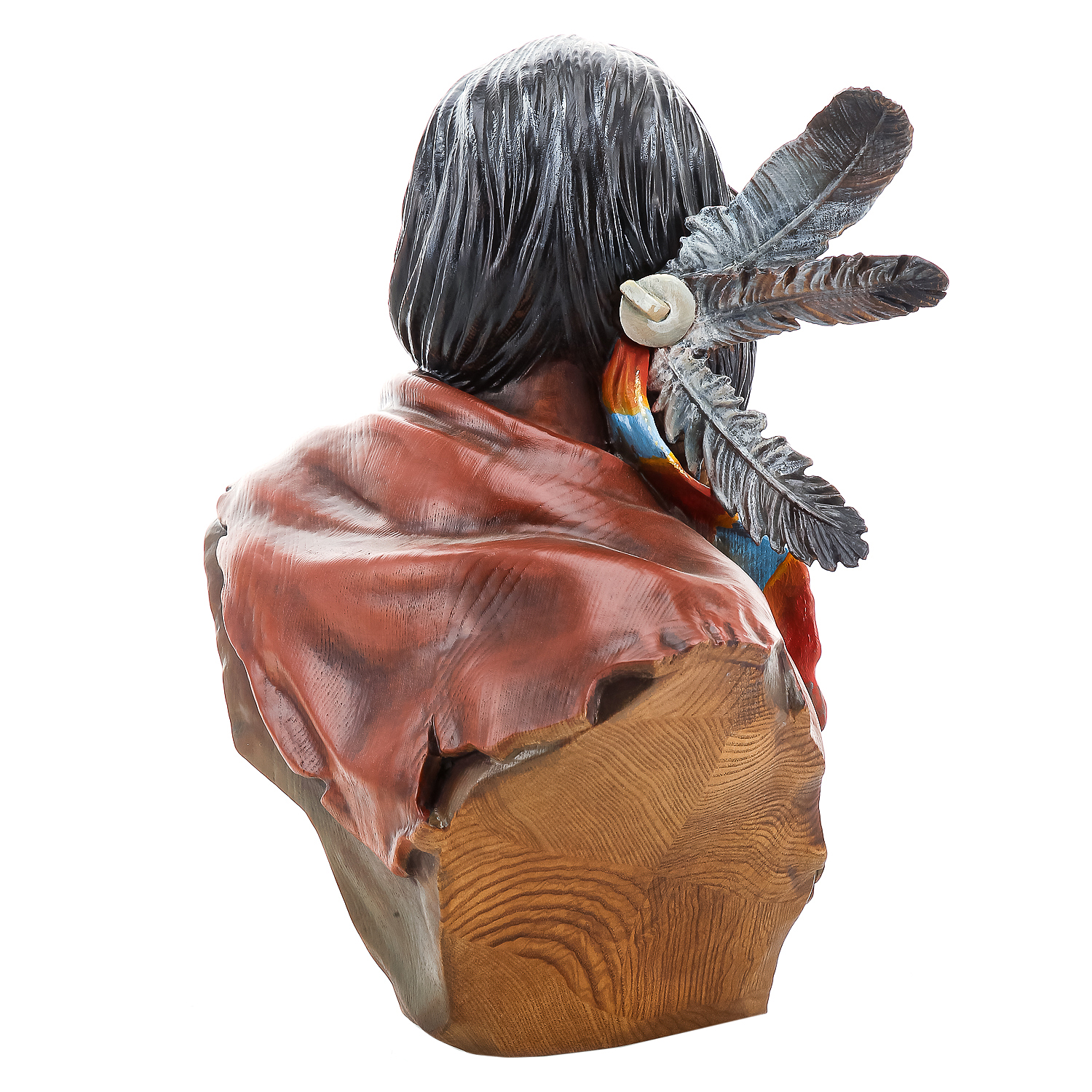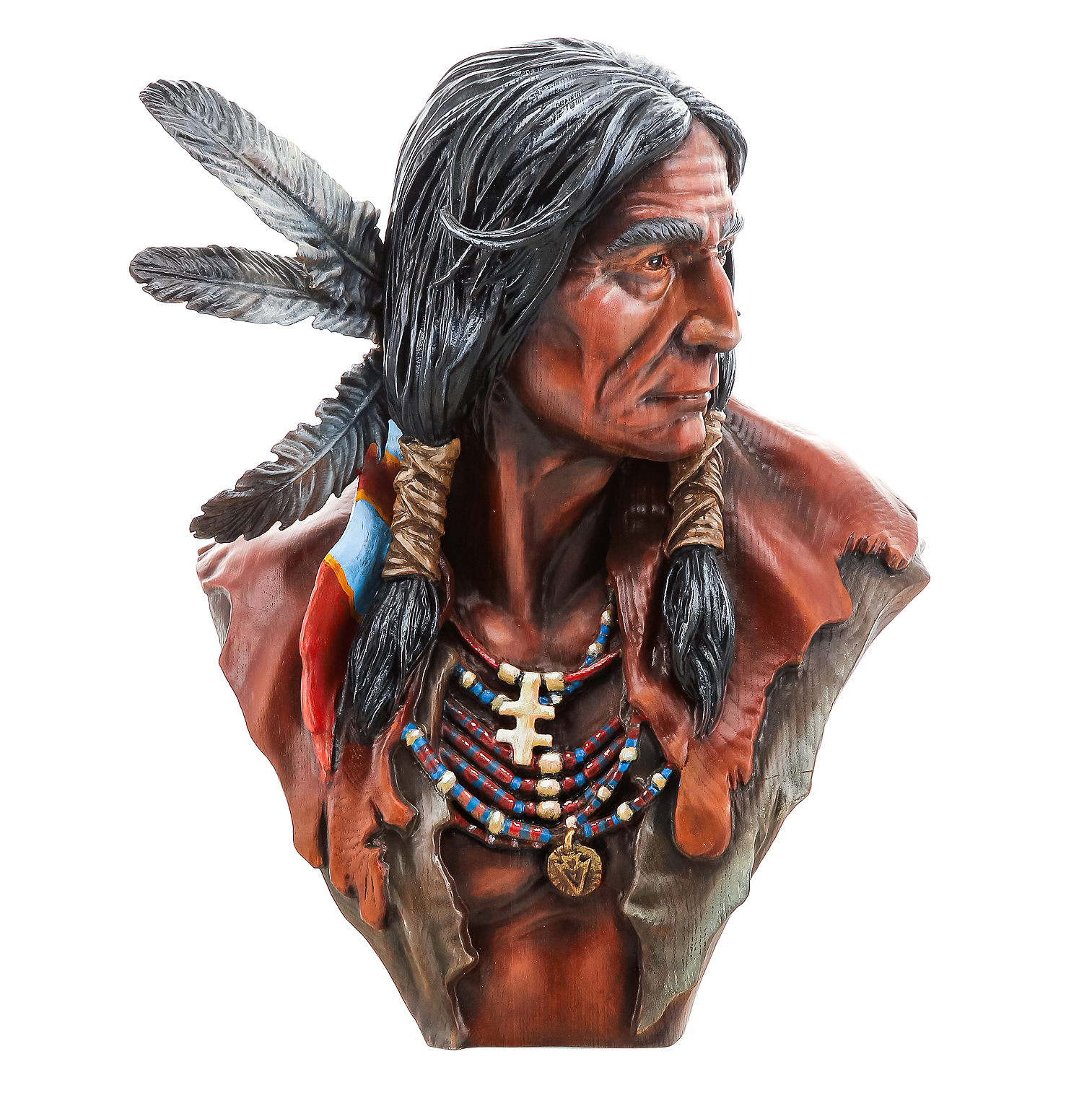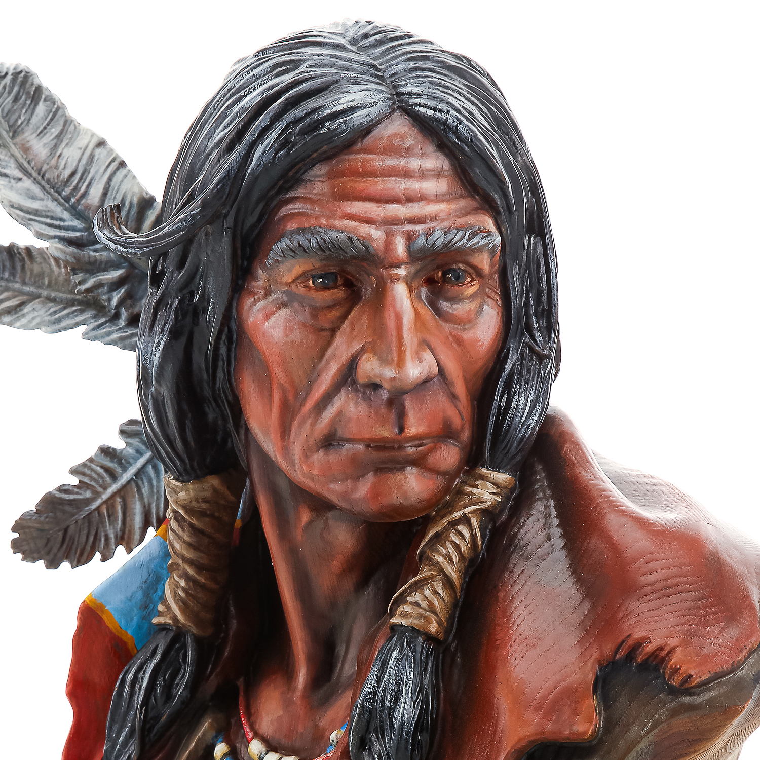 Деревянная резная скульптура "Бюст индейца". Высота 39 см