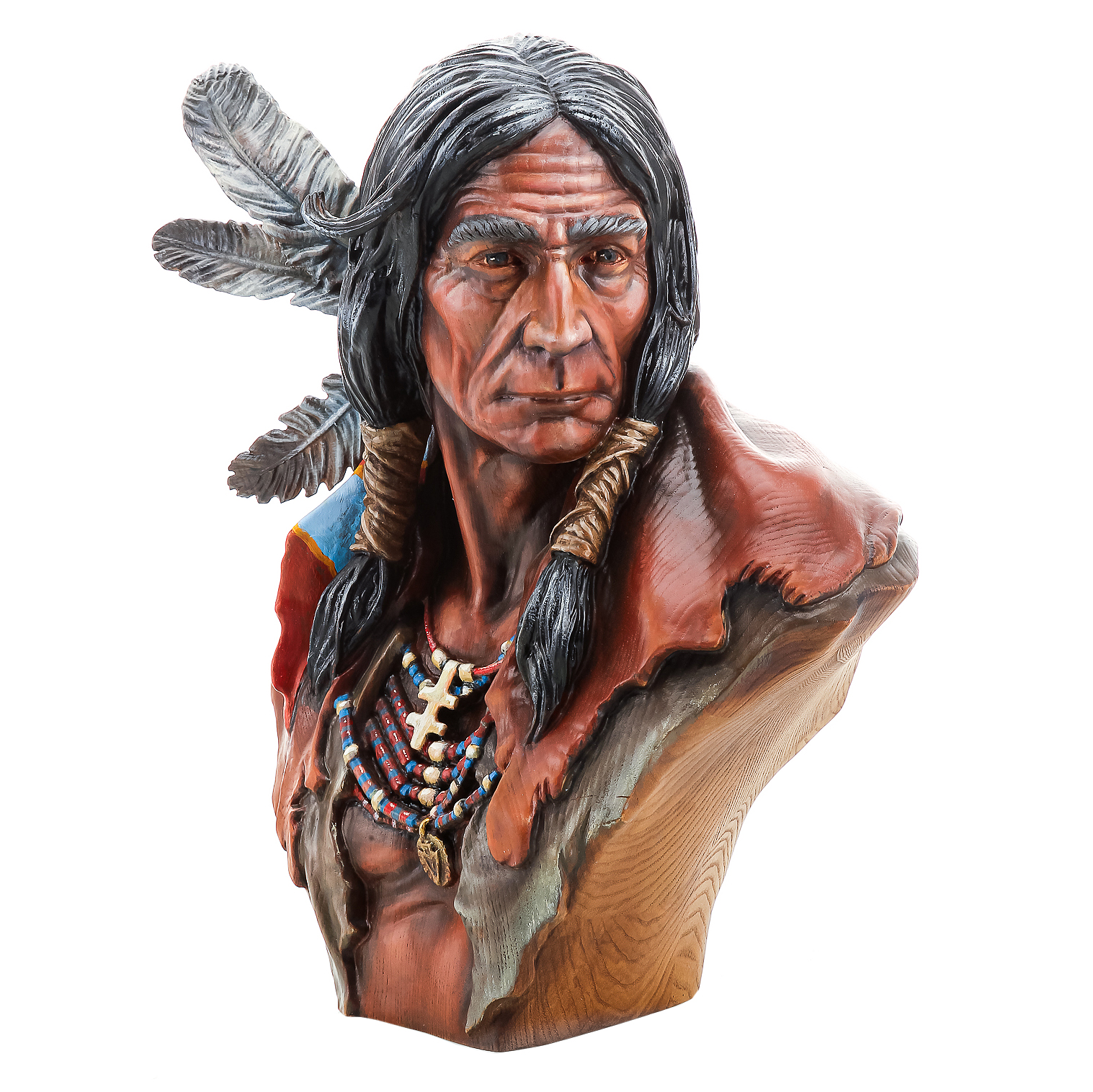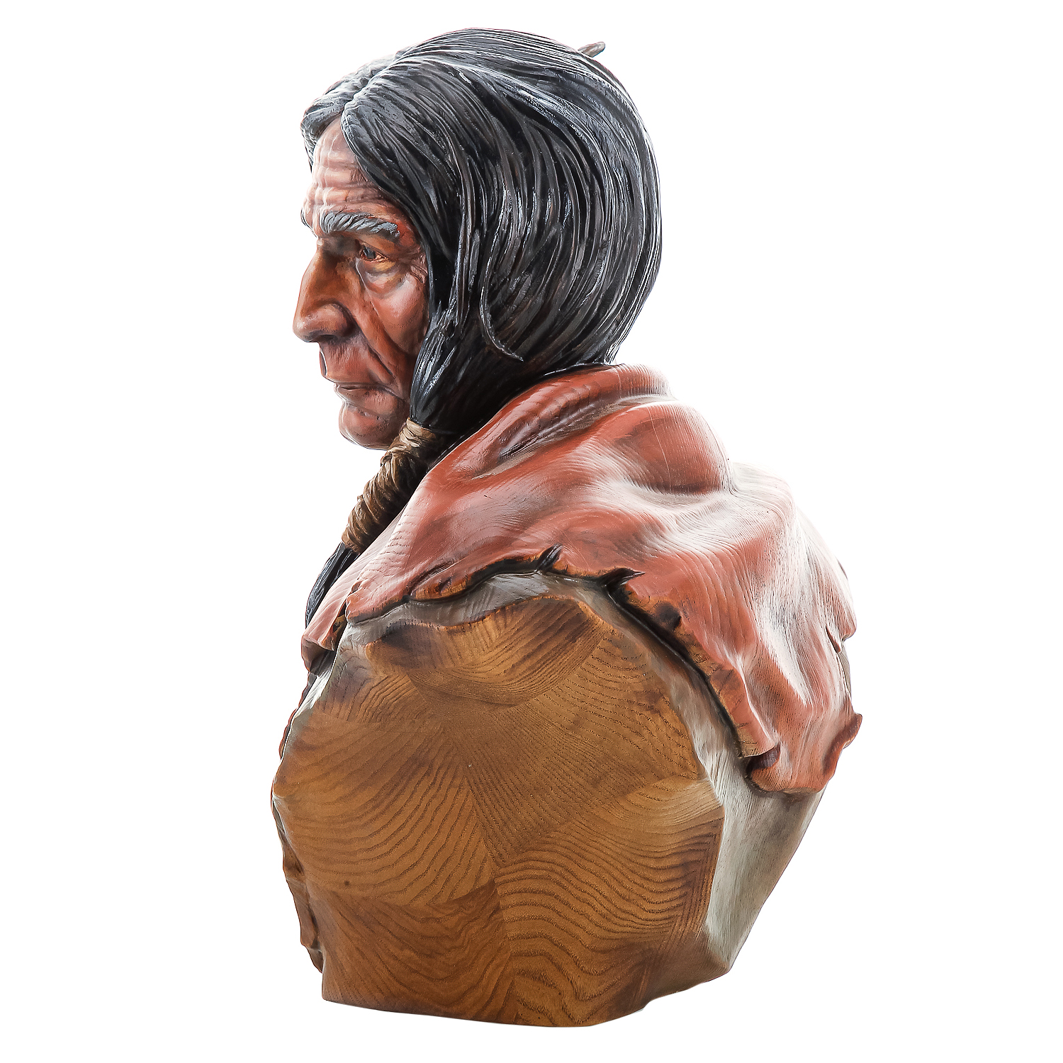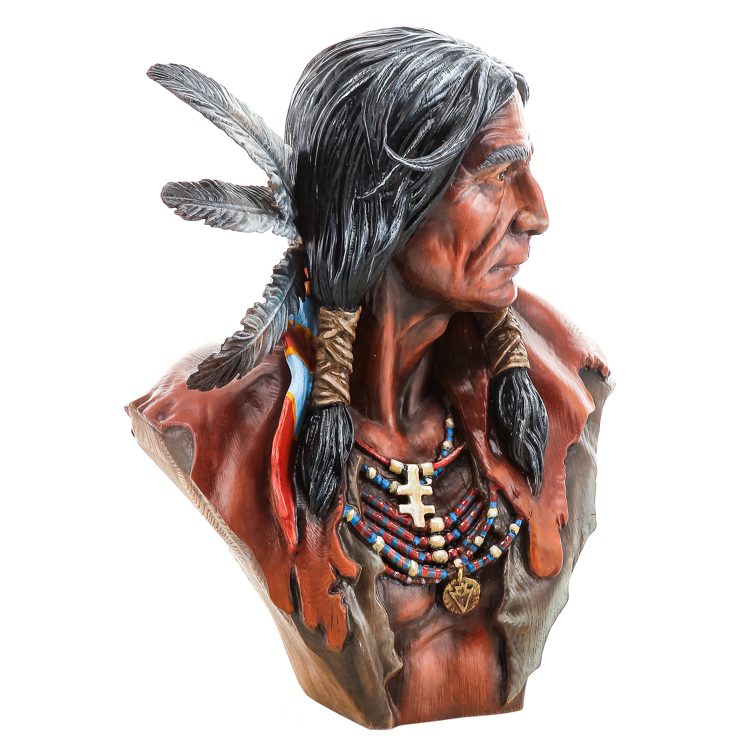 Деревянная резная скульптура "Бюст индейца". Высота 39 см