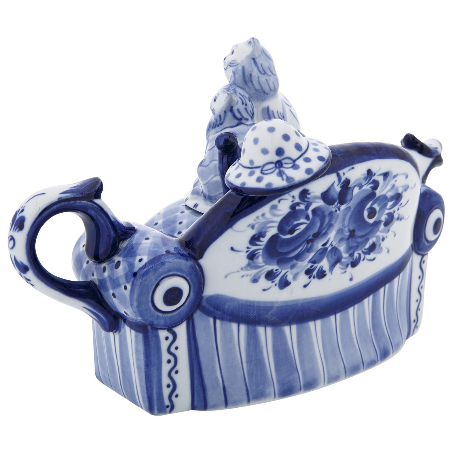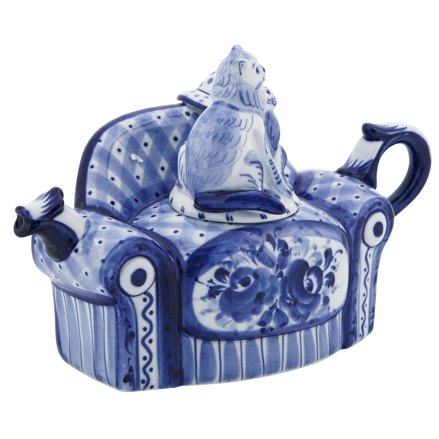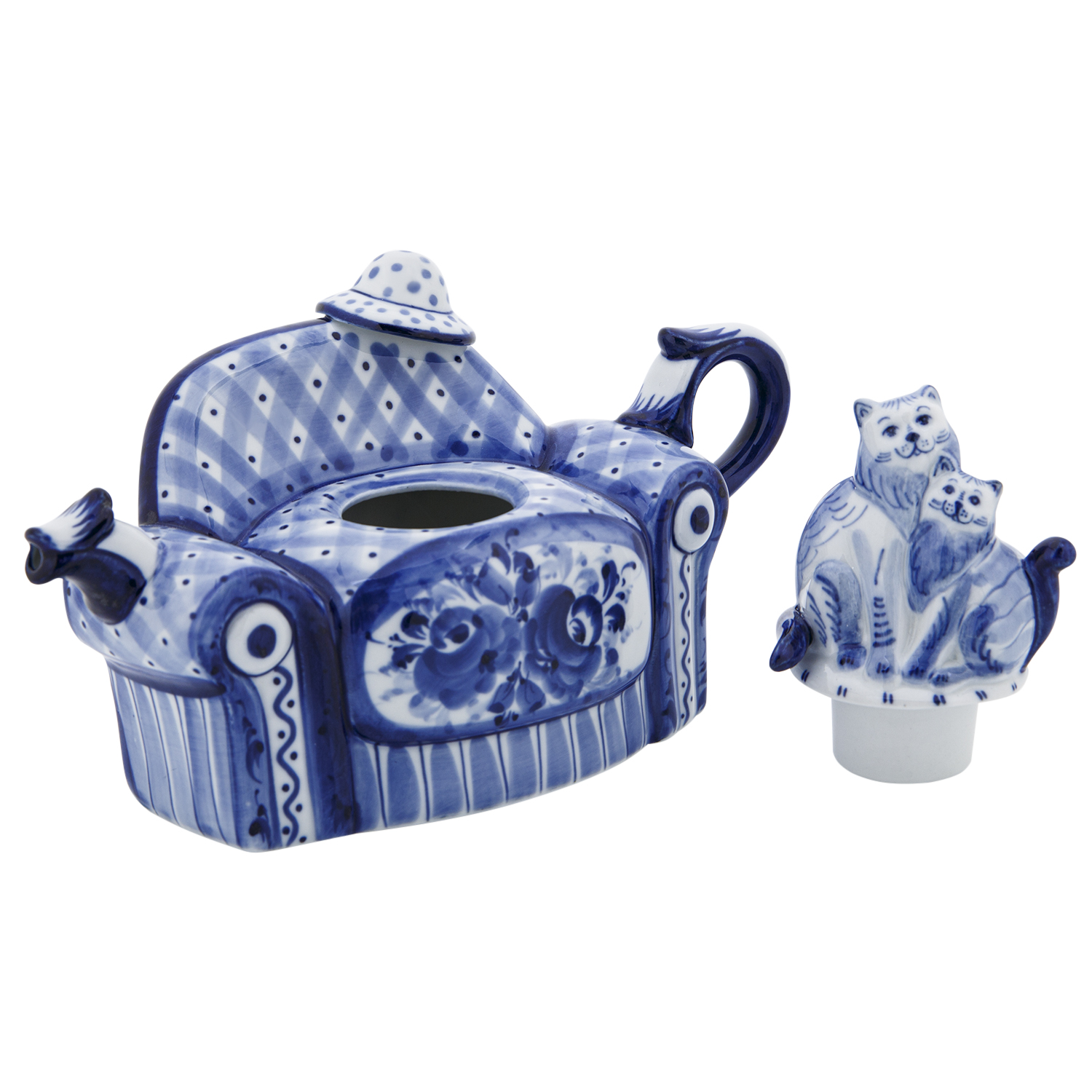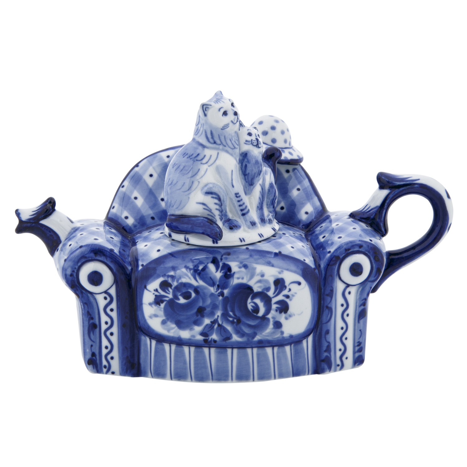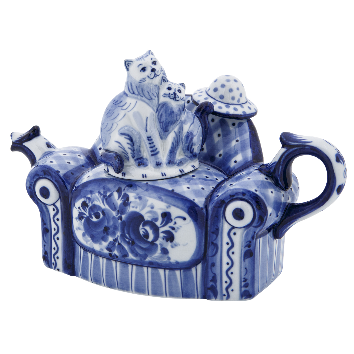 Чайник коллекционный "Диван с кошками". Гжель
