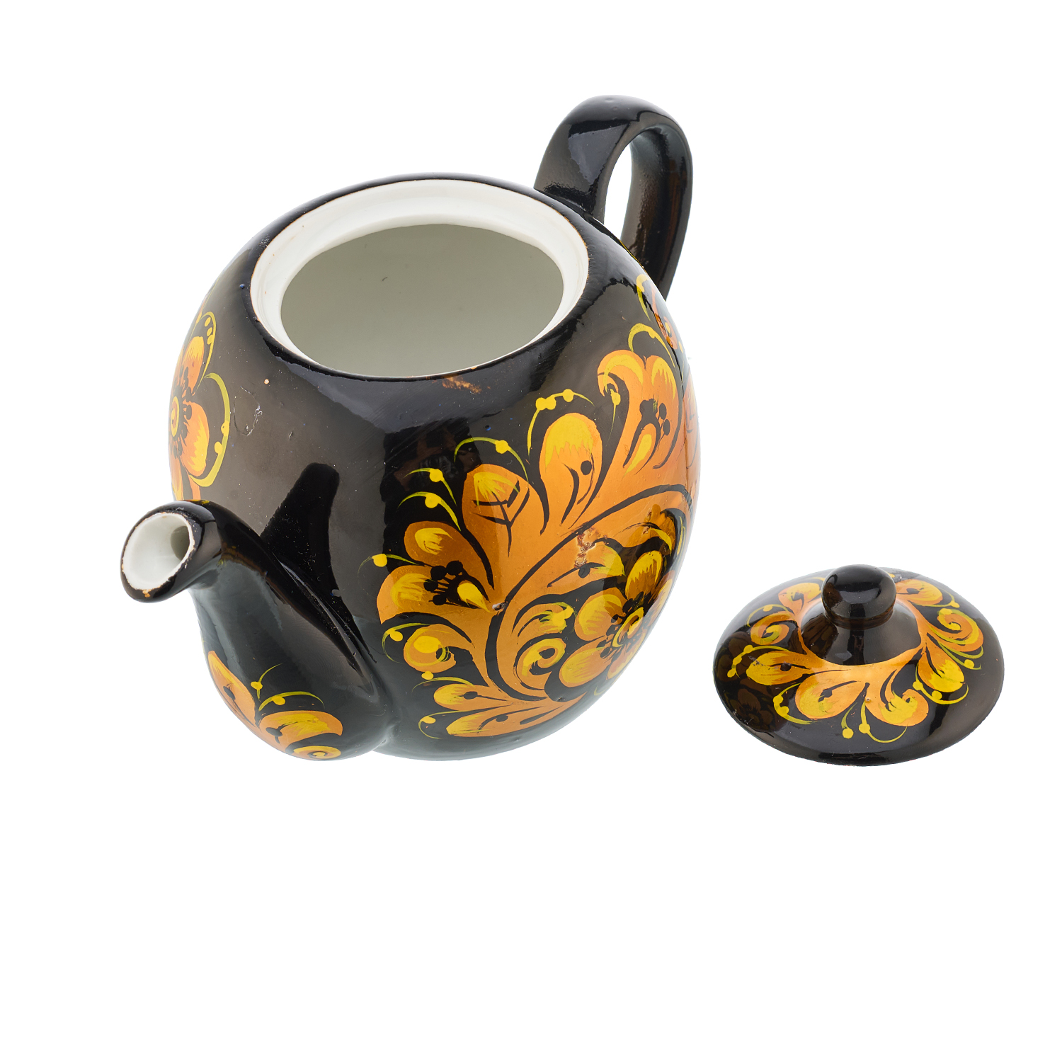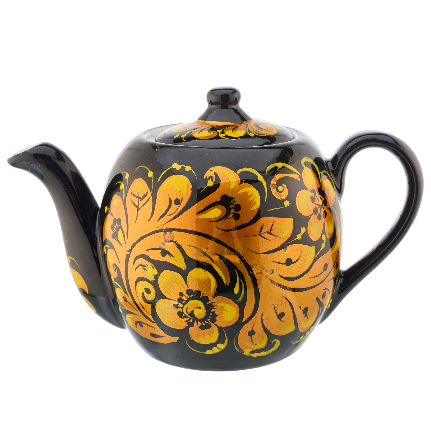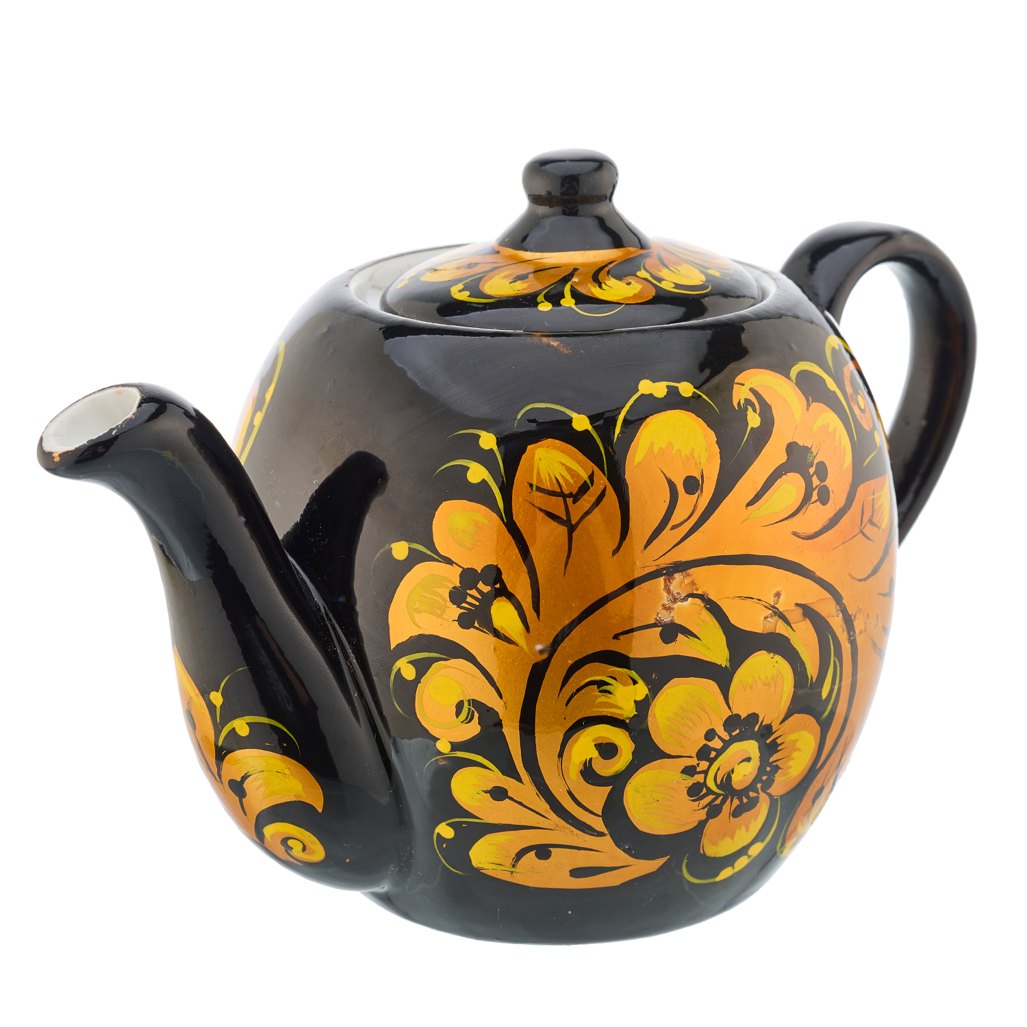 Чайник заварочный 500 мл "Золотая кудрина". Хохлома.Материалы: фарфор, краски, лак.