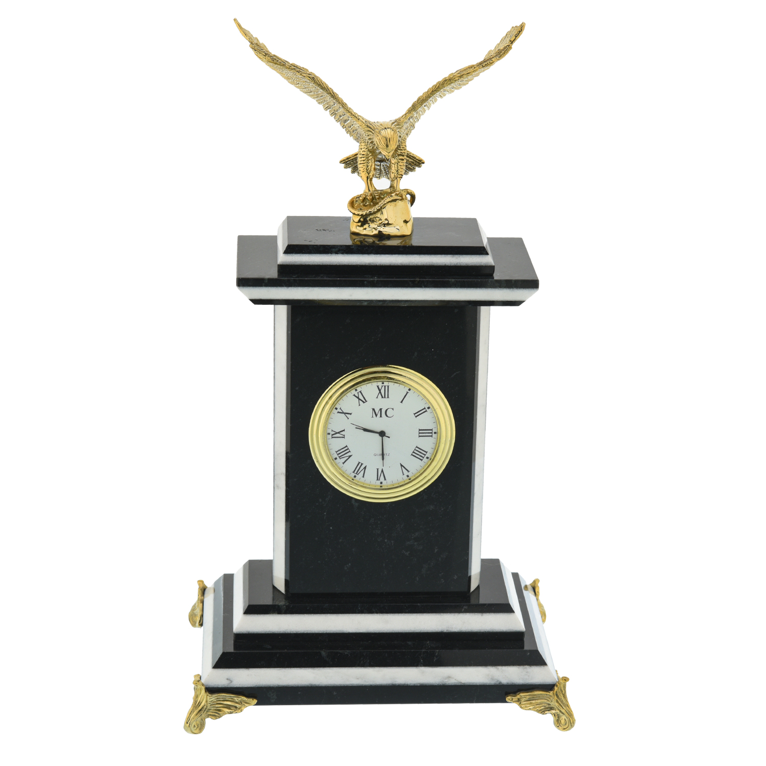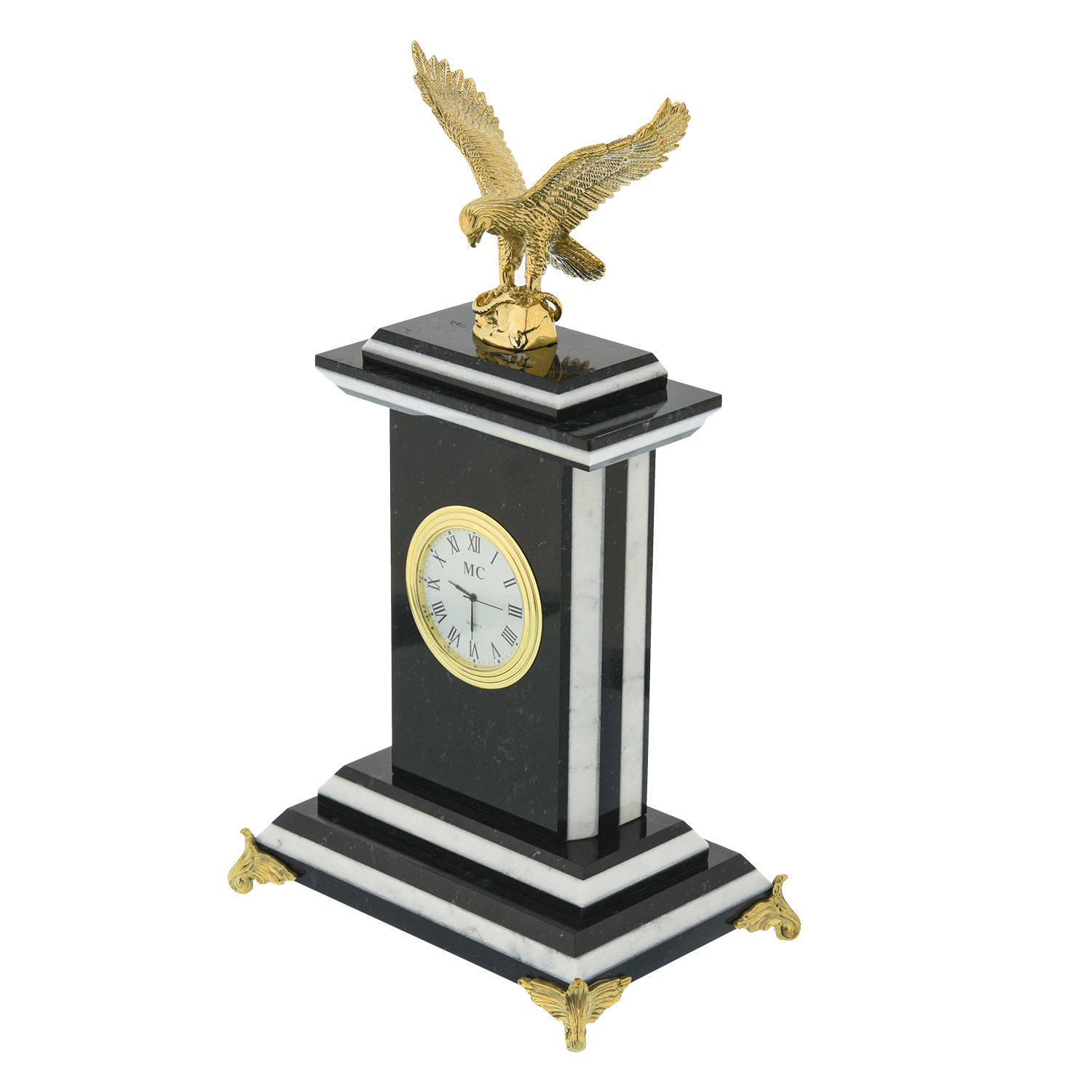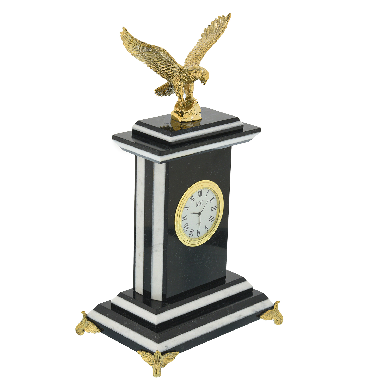 Часы из камня настольные "Орел".Материалы: натуральный камень, бронза, позолота.