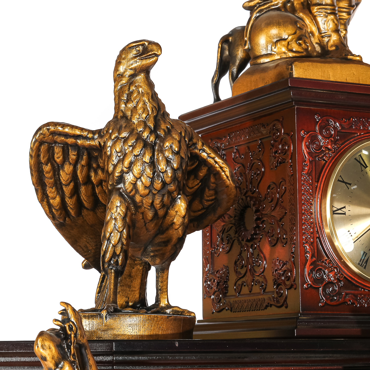 Деревянные резные часы "Полководцы". Высота 237 см