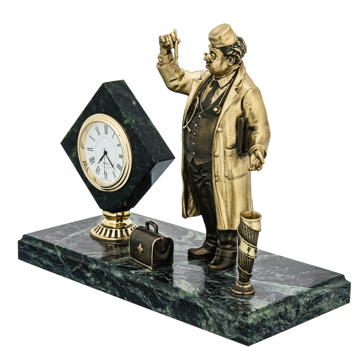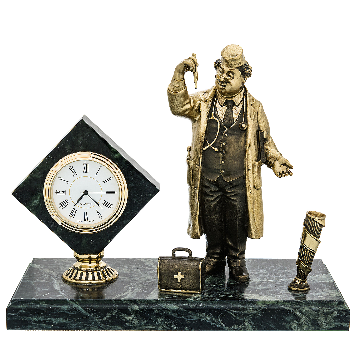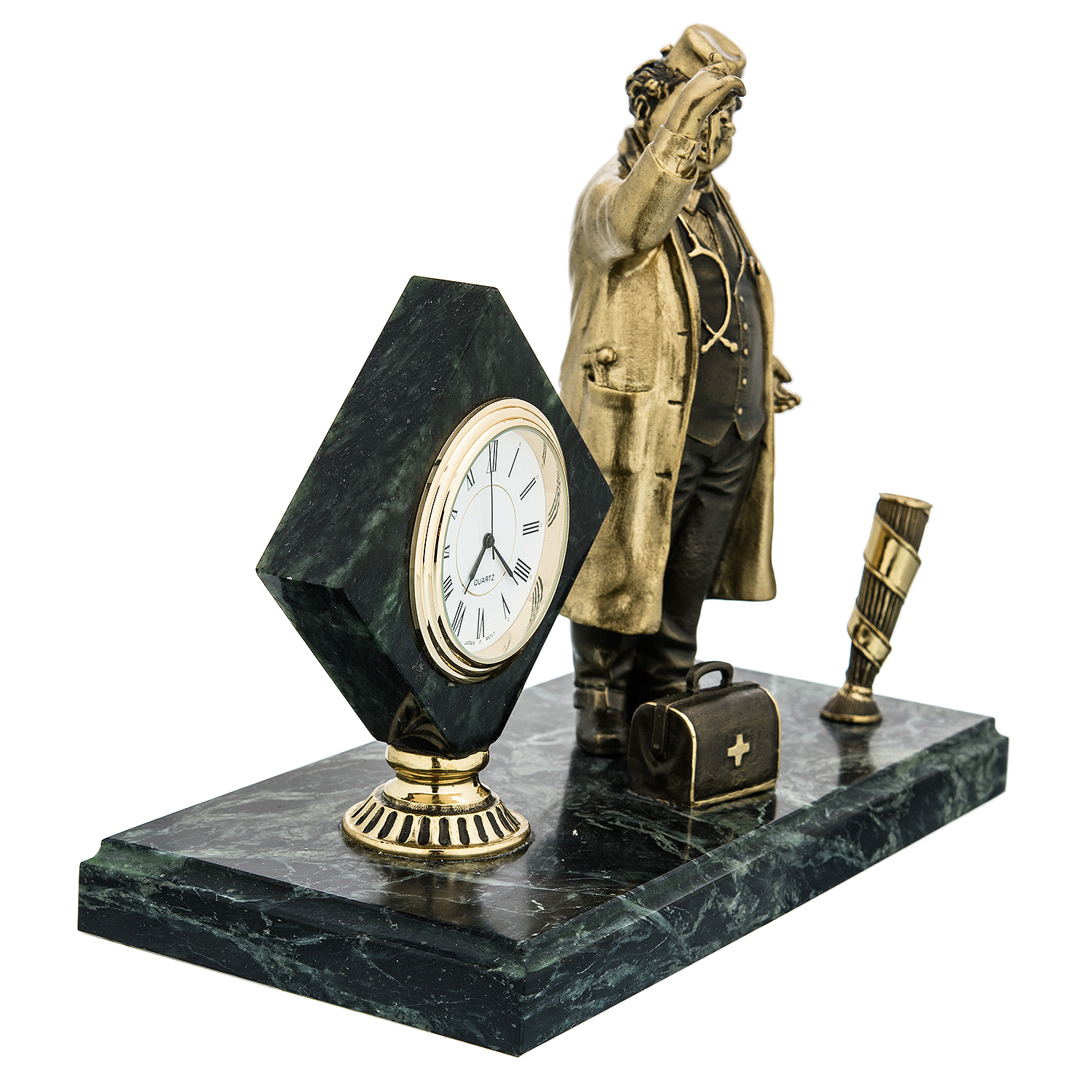 Русские подарки и сувениры → Интерьерные изделия → Часы → Настольные часы из бронзы и камня "Подарок доктору"