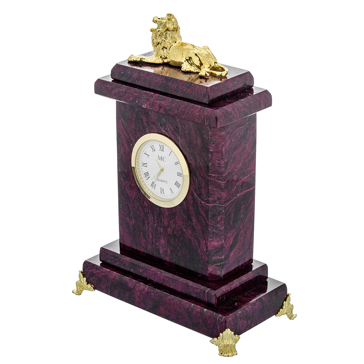 Часы настольные из бронзы и камня "Лев". Златоуст