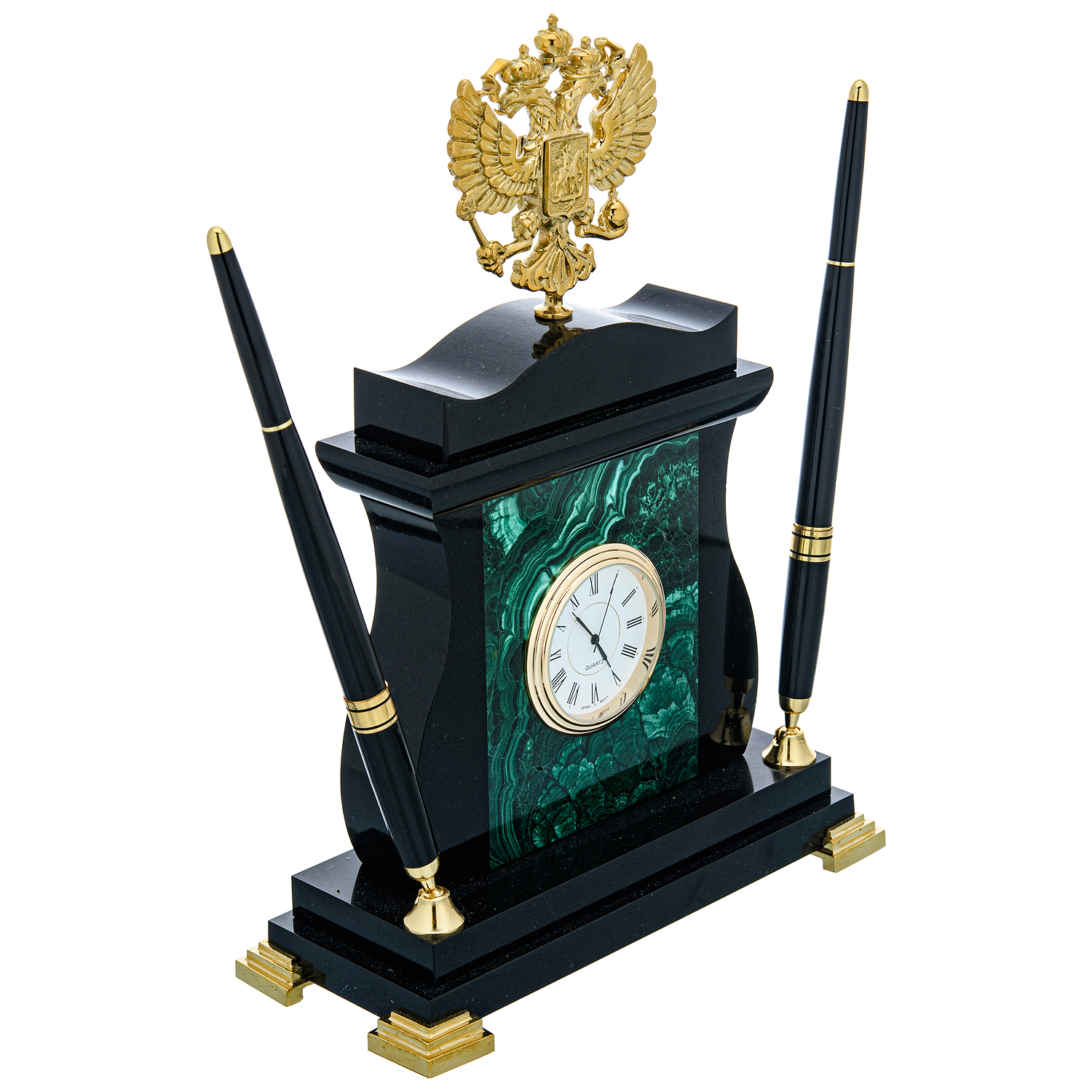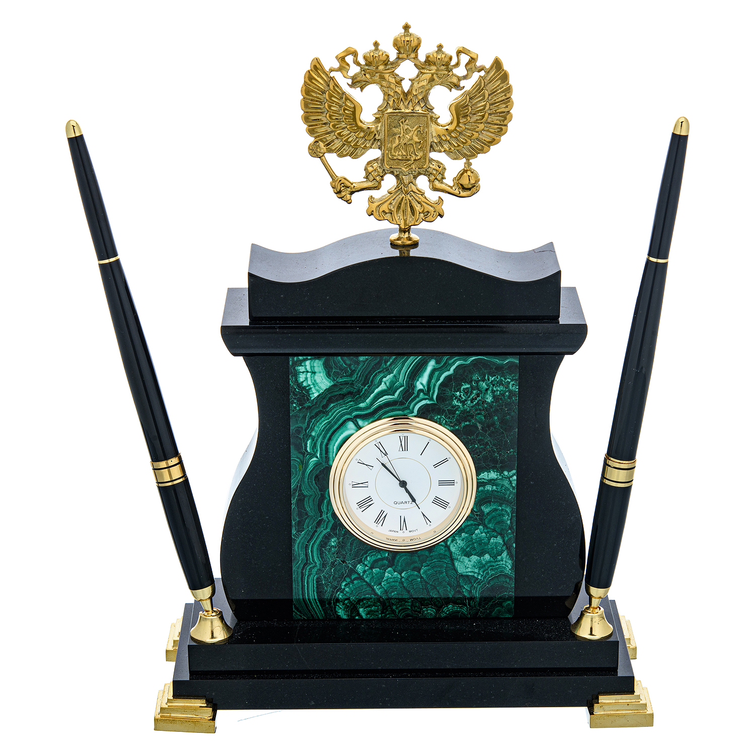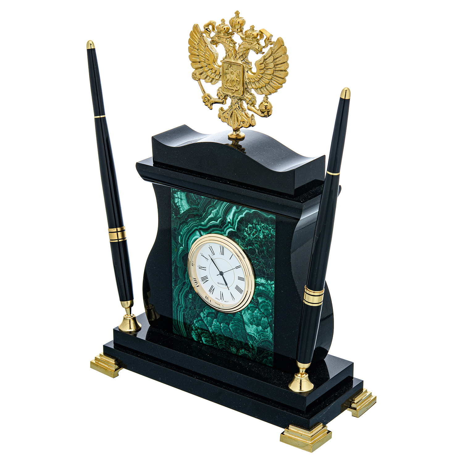 Русские подарки и сувениры → Интерьерные изделия → Часы → Часы настольные из натурального камня "Герб"
