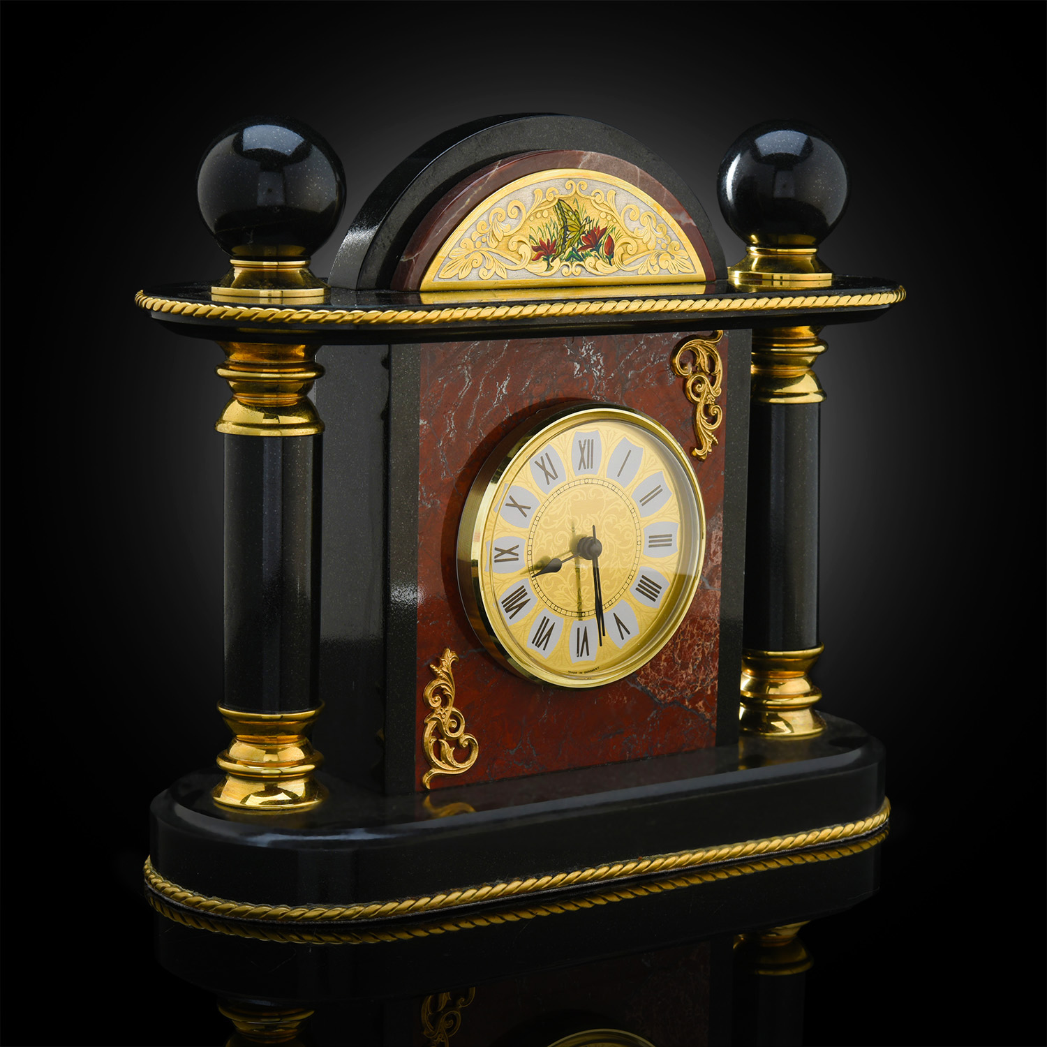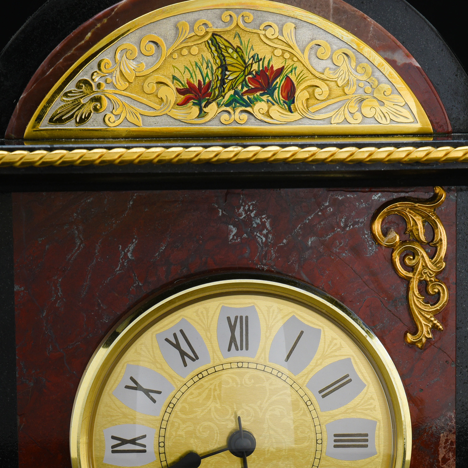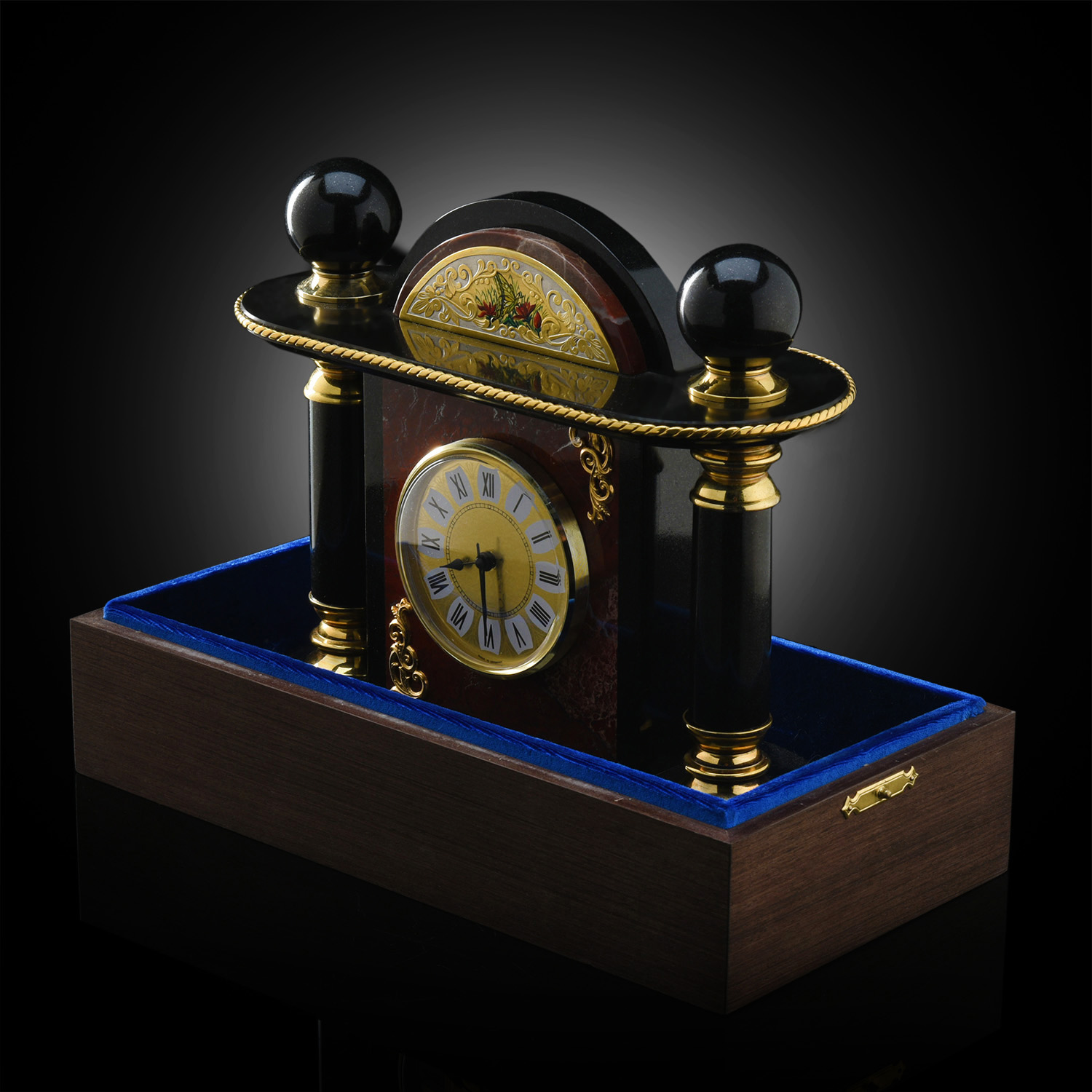Часы настольные "Бабочка". Златоуст.Материалы: долерит, латунь, никель, золото 999,9*, эмаль.