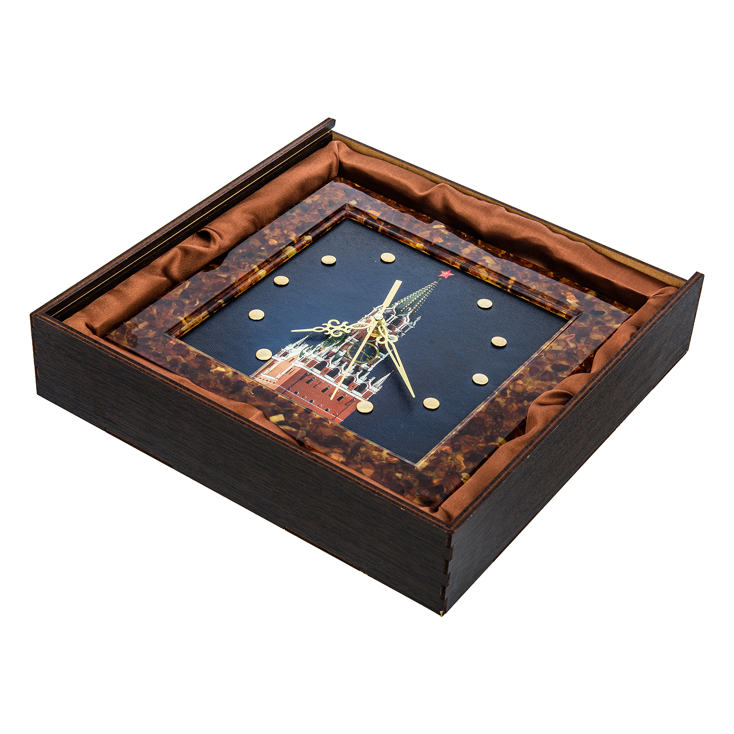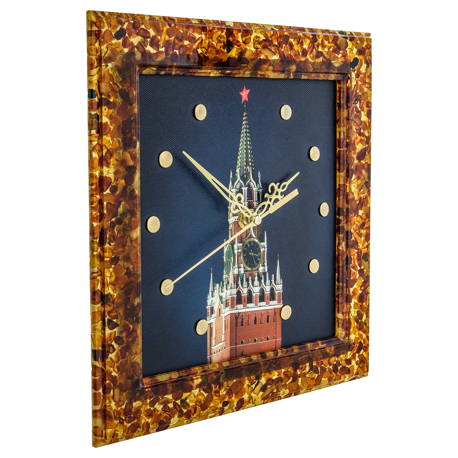 Часы настенные из янтаря "Спасская башня"