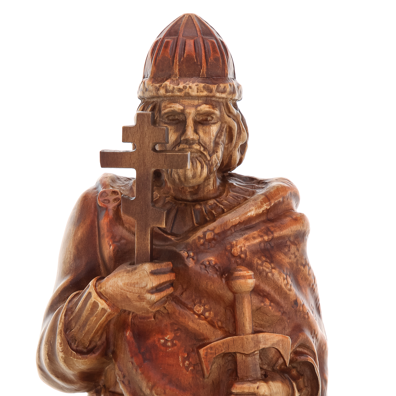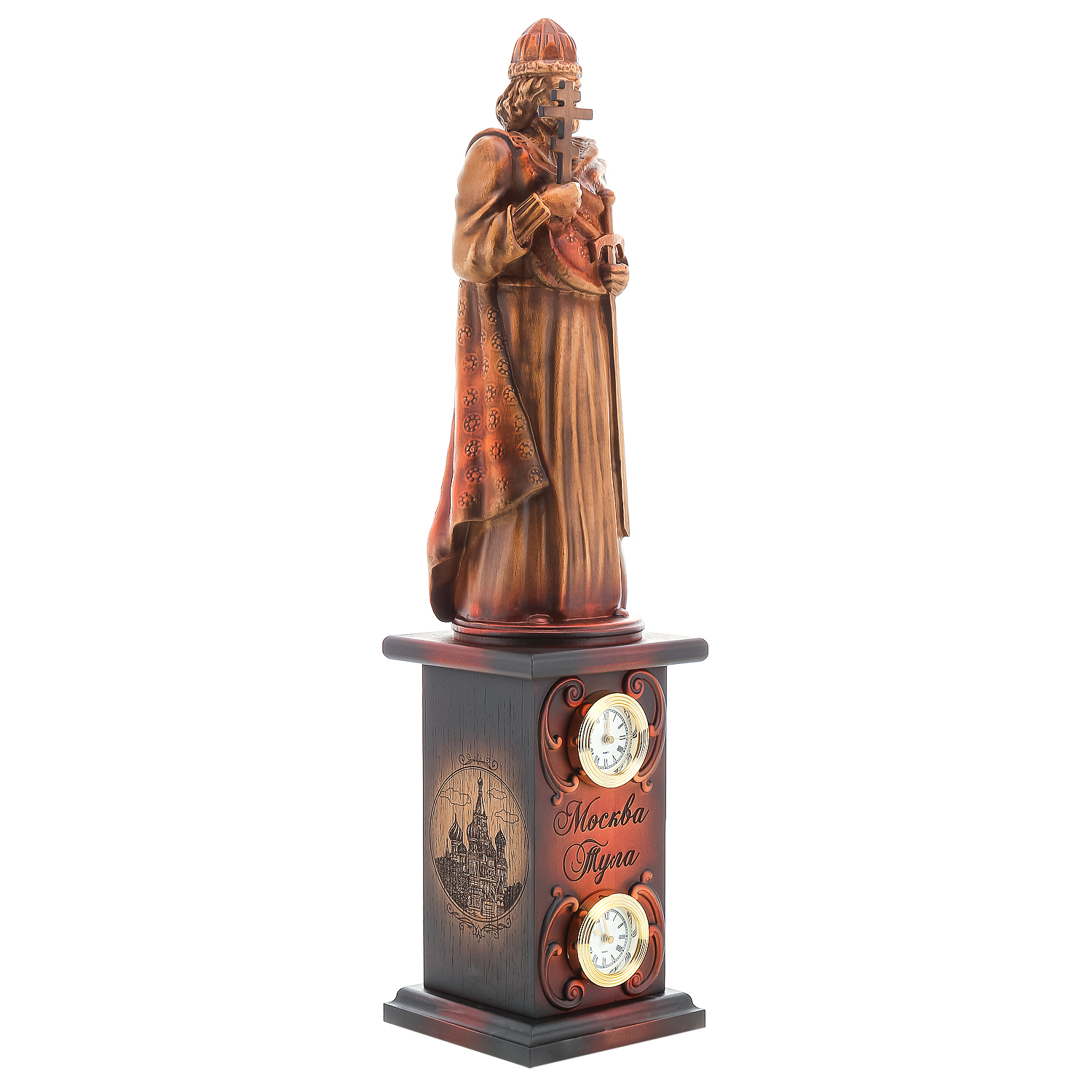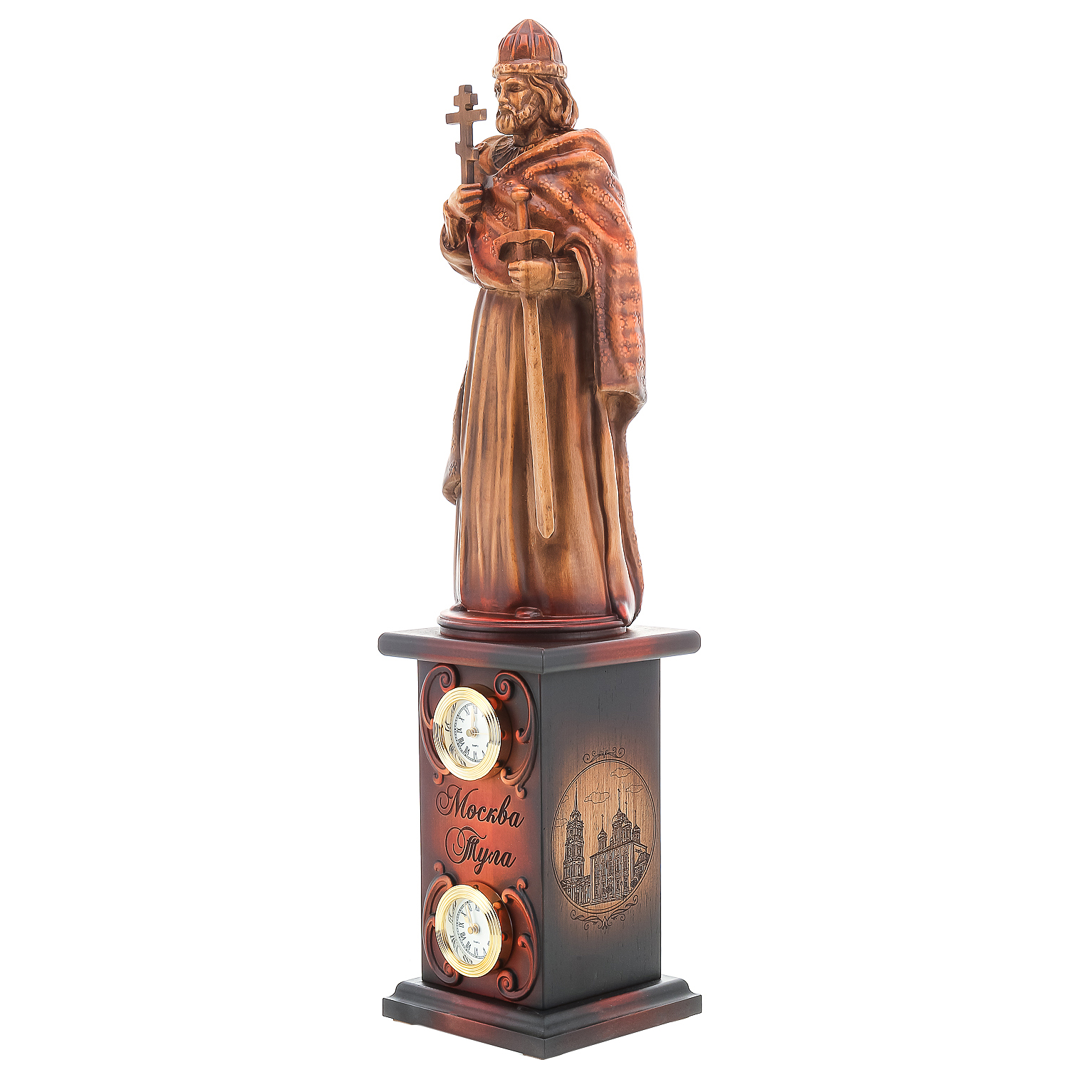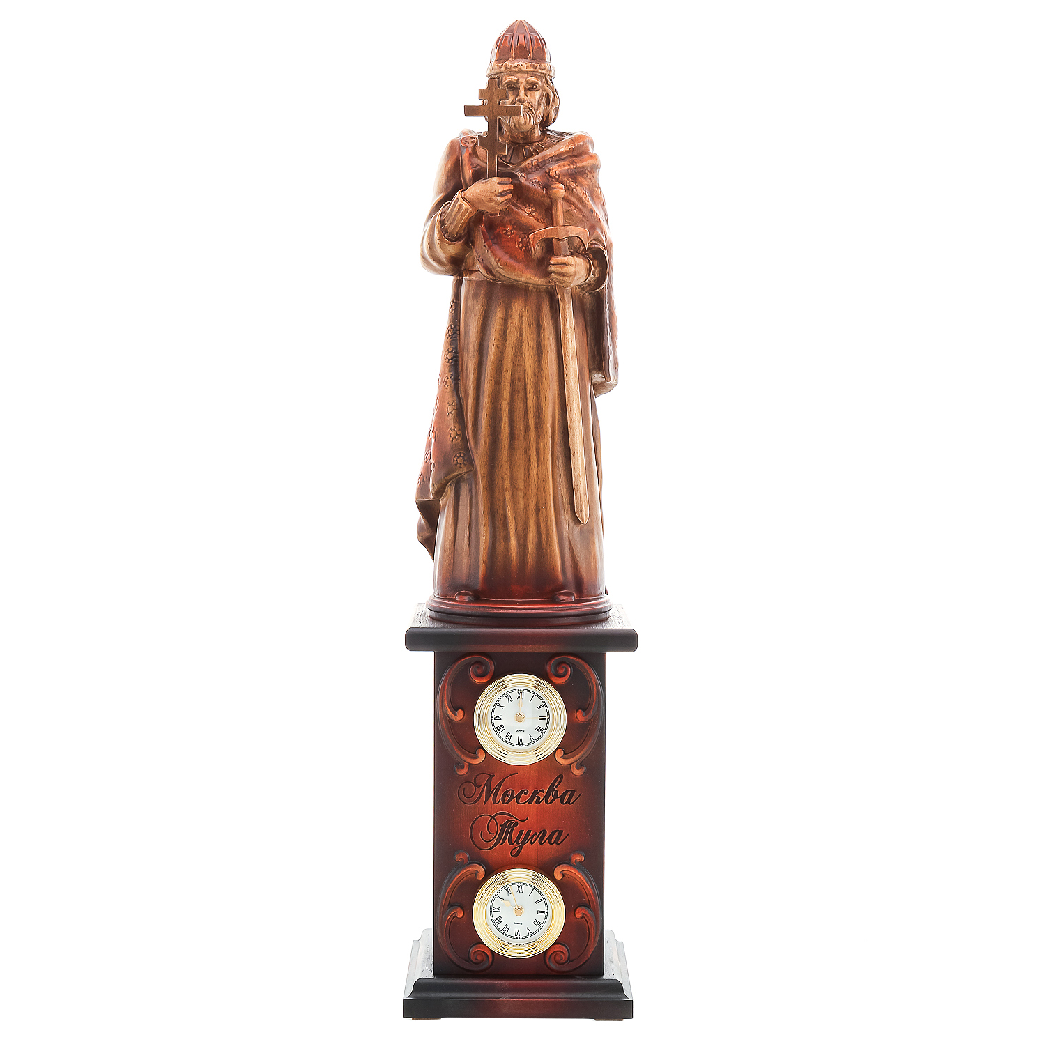 Деревянные резные часы "Князь Владимир". Высота 70 см