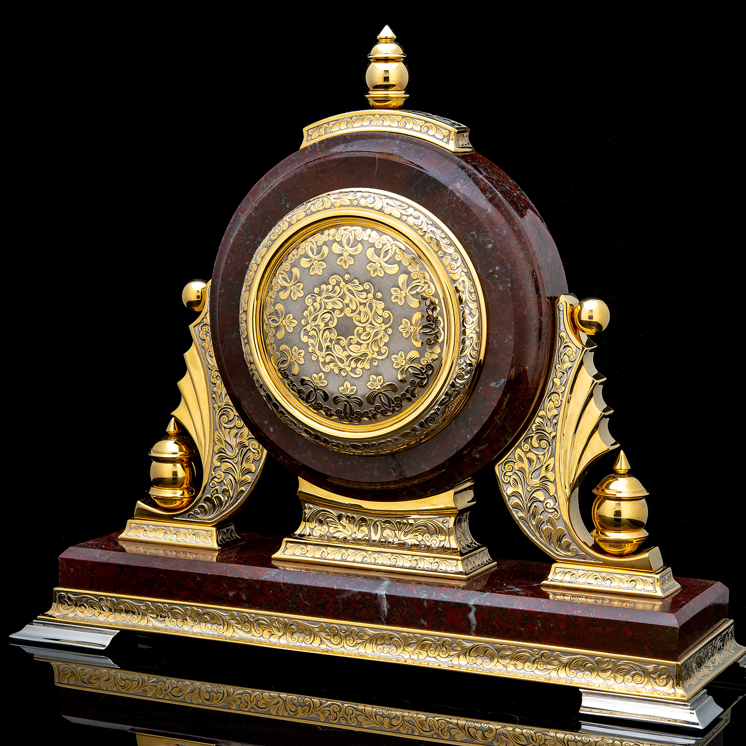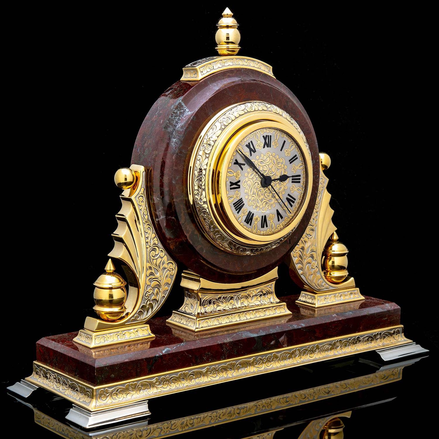 Часы настольные из камня с позолотой. Златоуст.Материалы: латунь, никель, золото 999,9*, яшма.