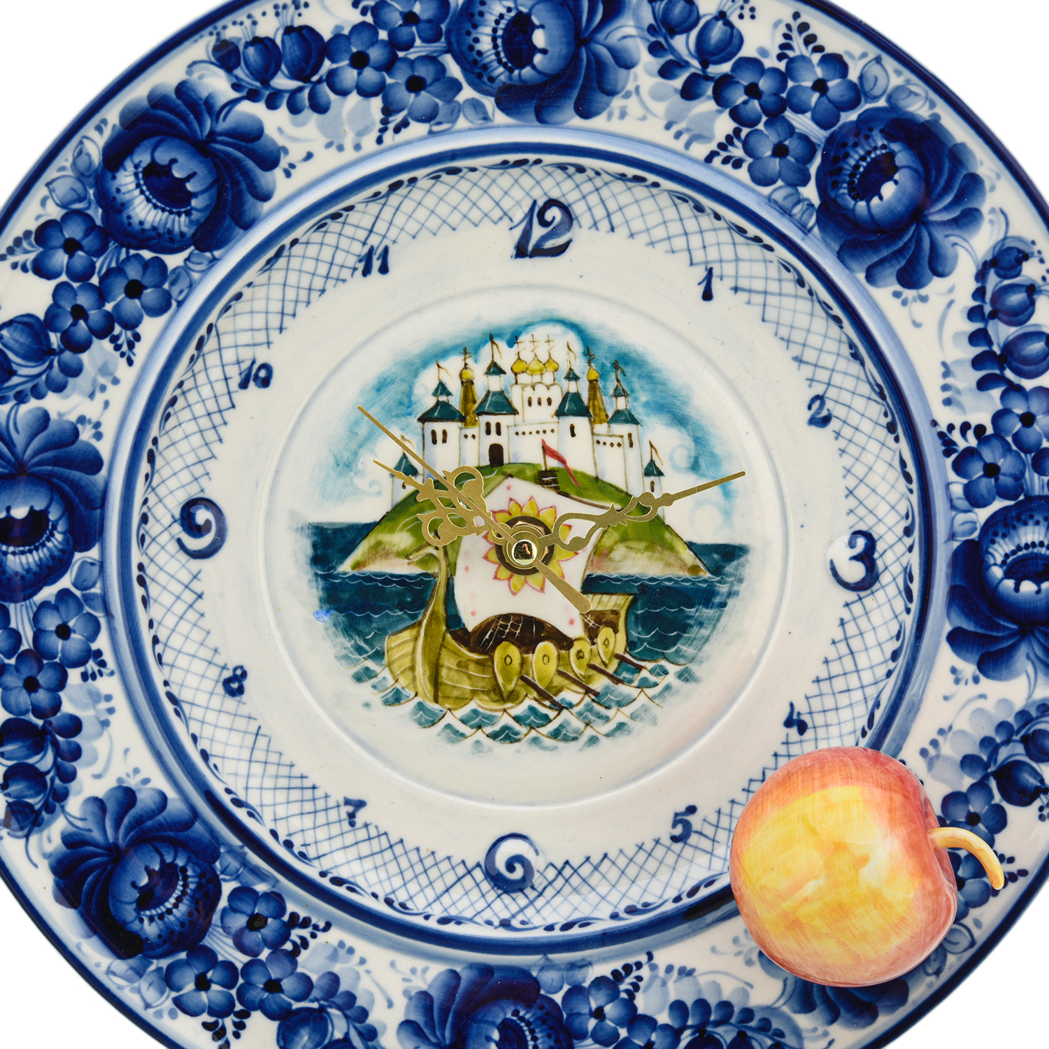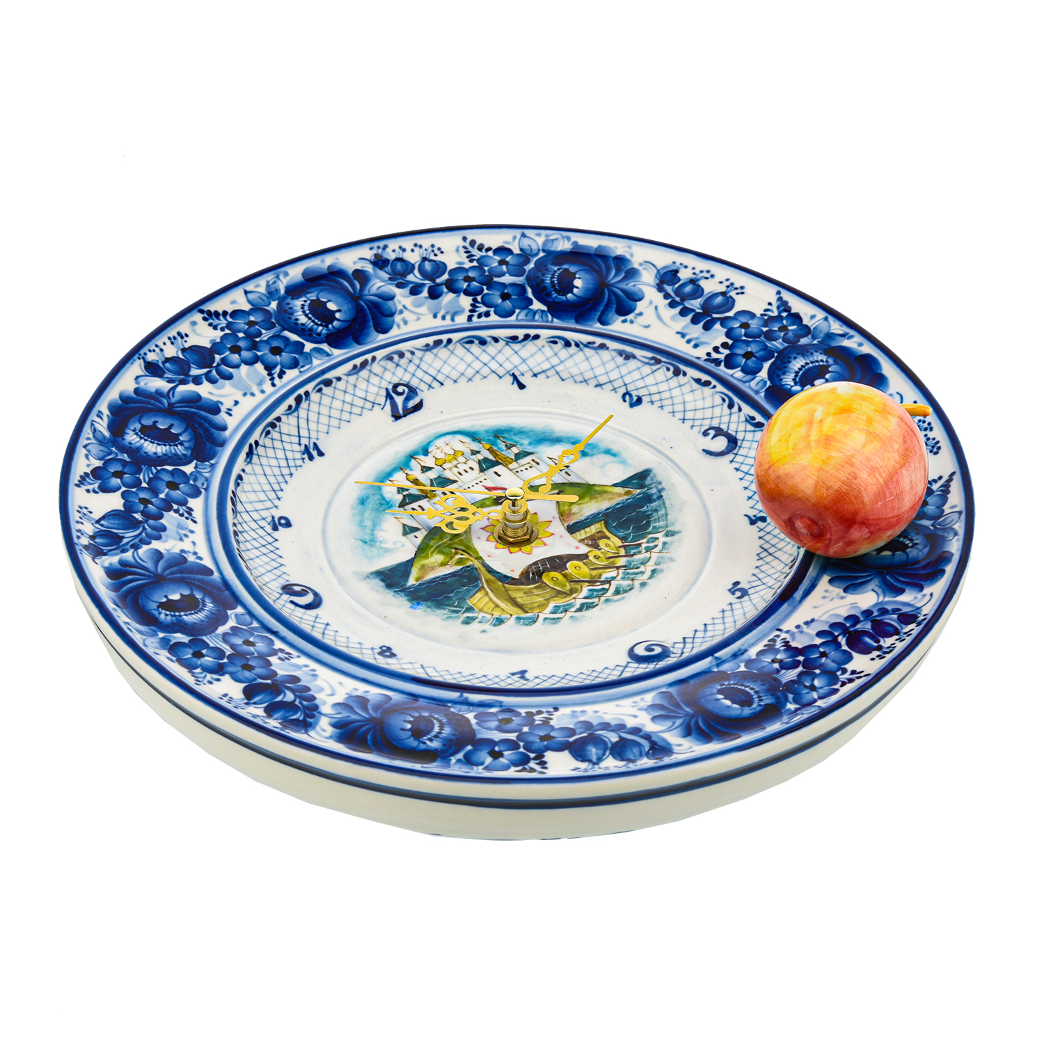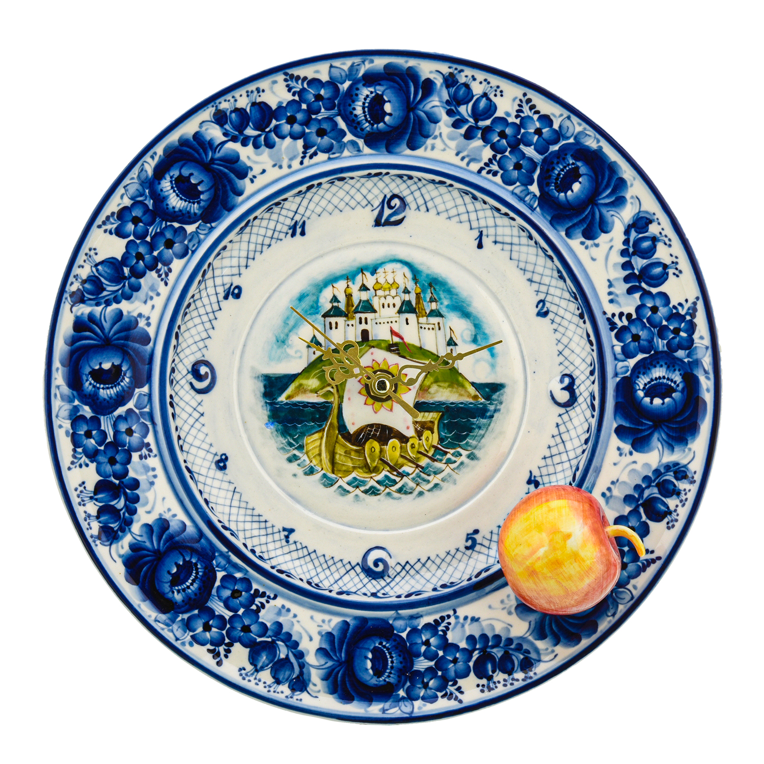 Русские подарки и сувениры → Интерьерные изделия → Часы → Часы настенные "Волшебное яблочко". Гжель в цвете