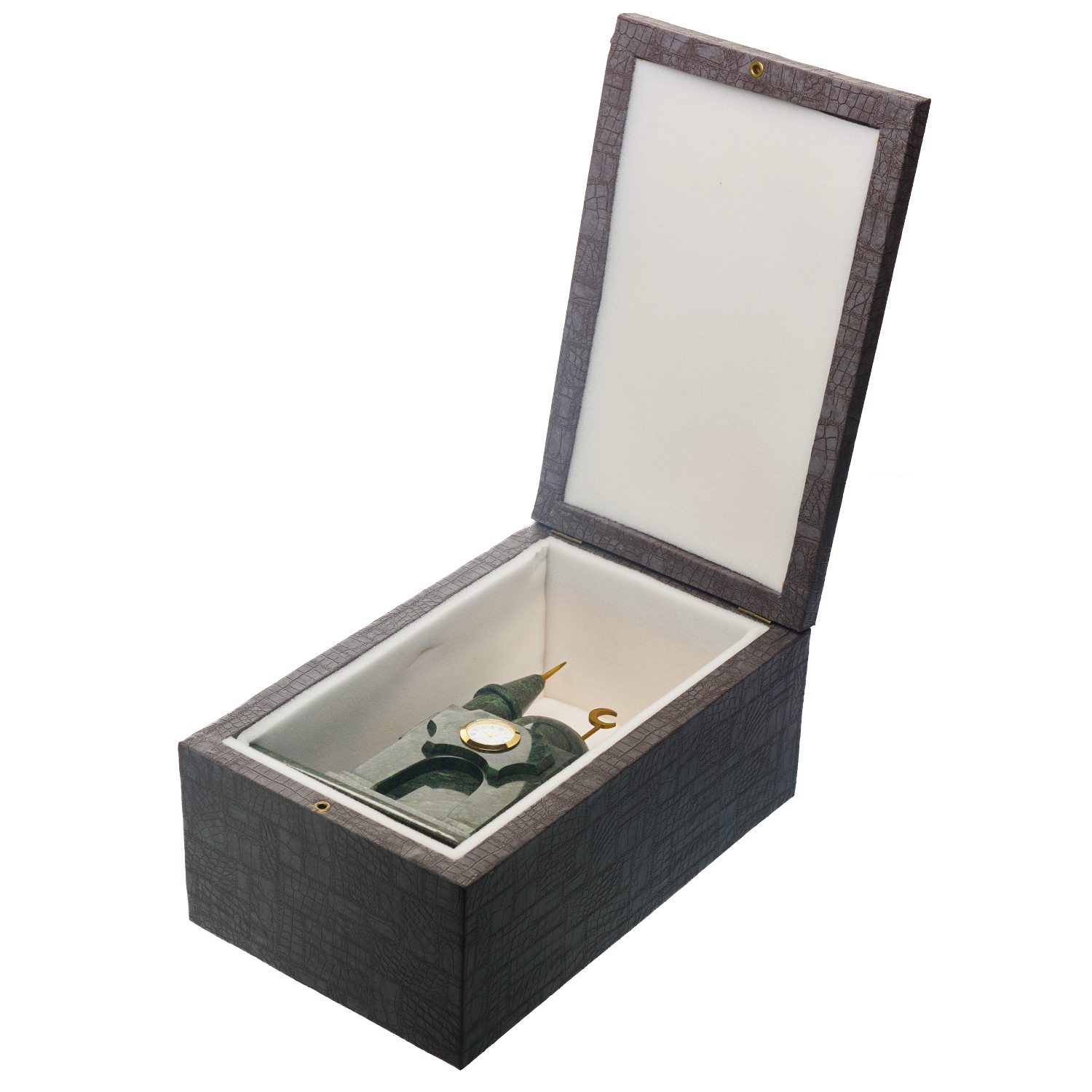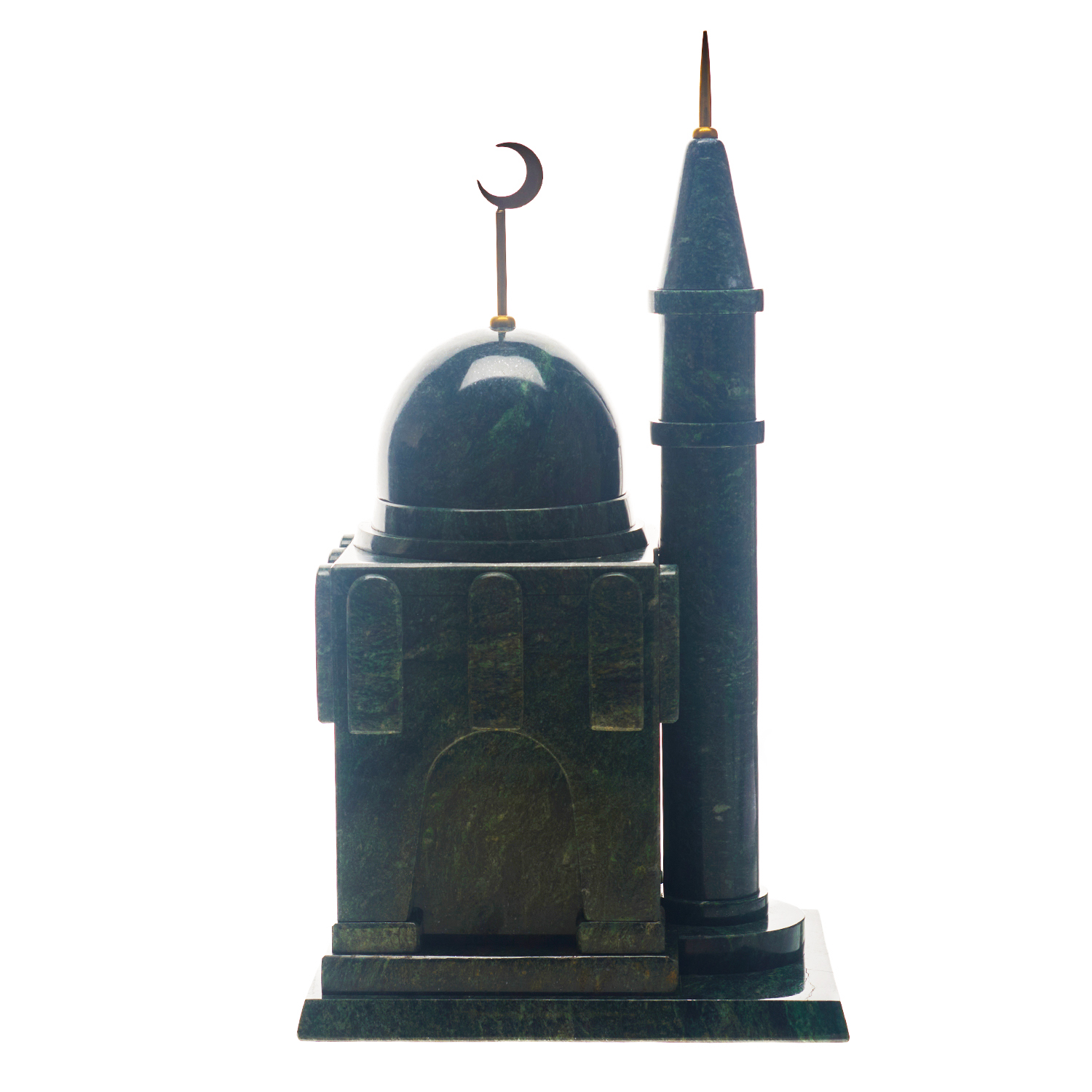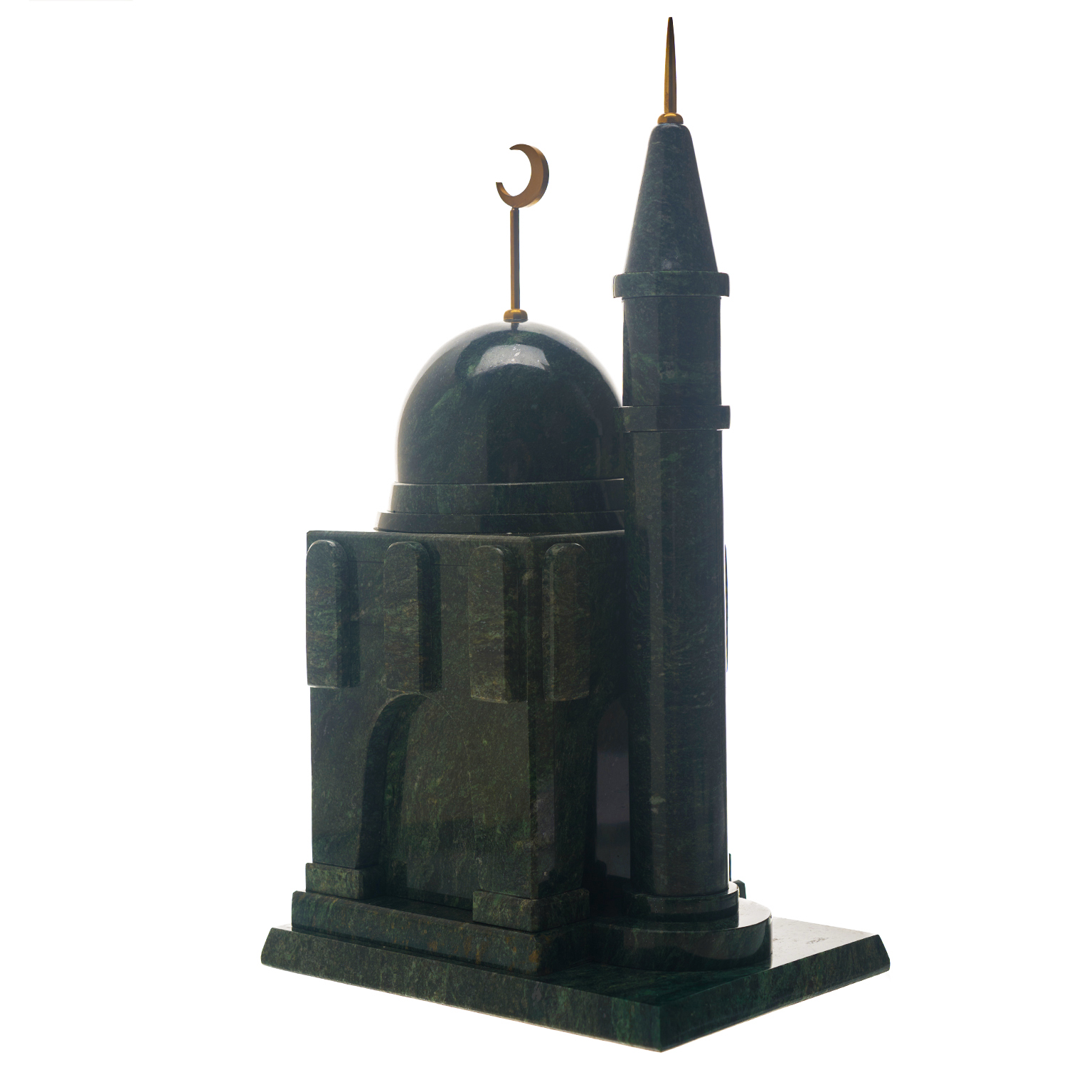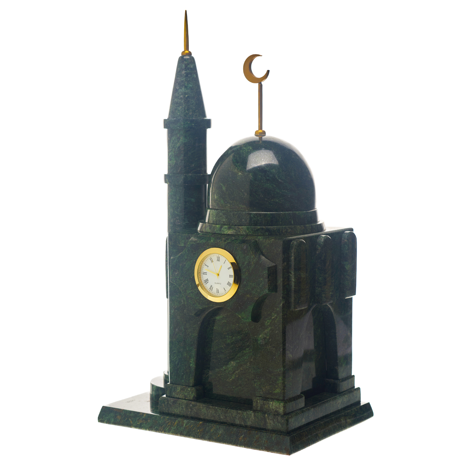 Часы настольные из камня "Мечеть".Материалы: змеевик, латунь, стекло.