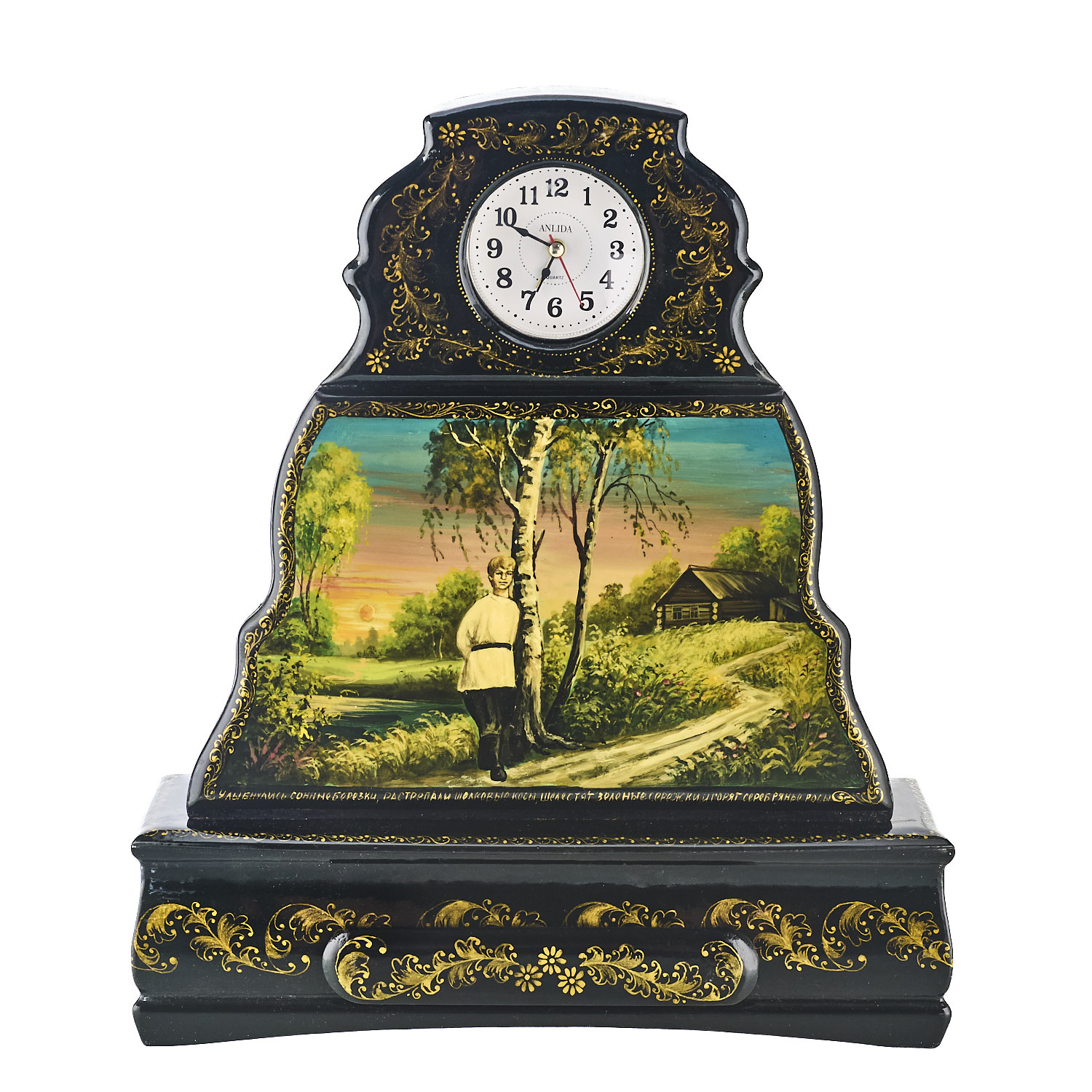 Часы с художественной росписью "Есенин".Материалы: папье-маше, краски, лак.