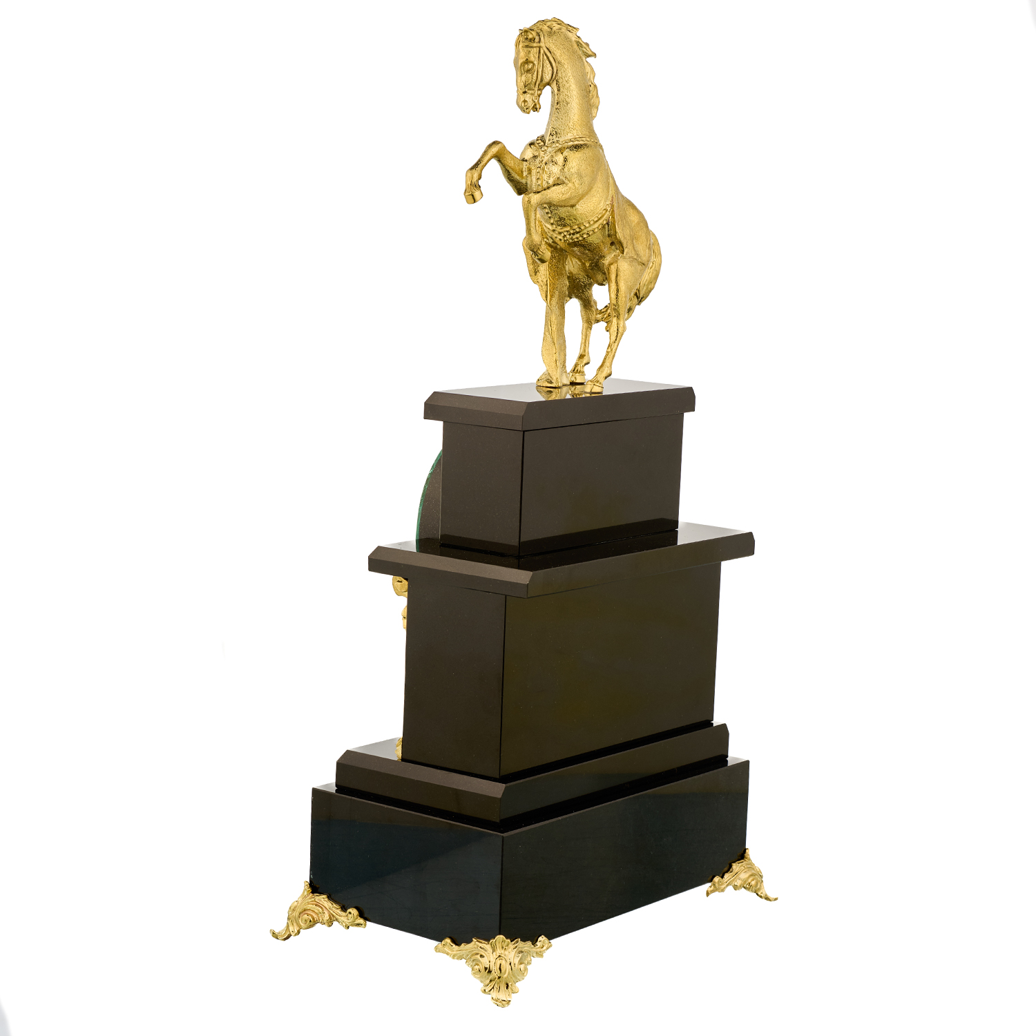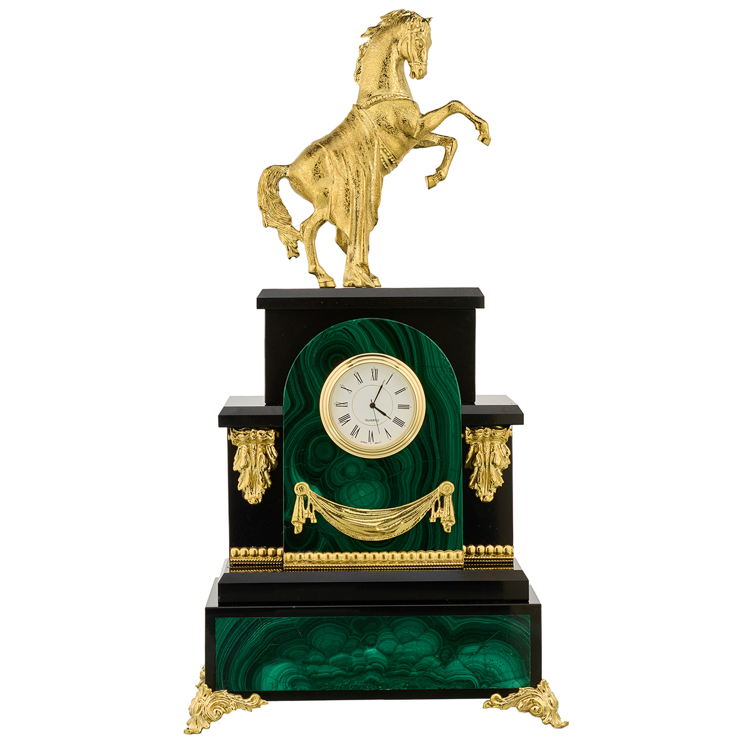Лошадь Символ 2026 года. Часы настольные из малахита "Конь". Златоуст.Материалы: малахит, бронза, золочение.