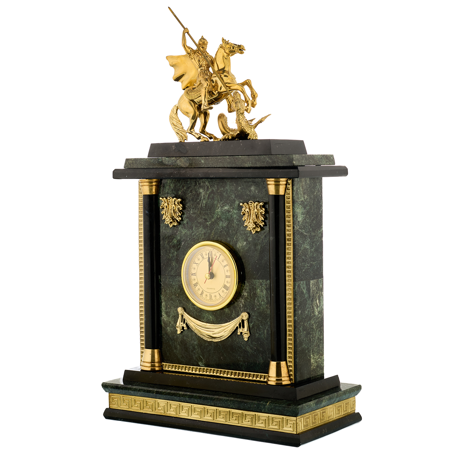 Часы настольные из камня "Георгий Победоносец". Златоуст.