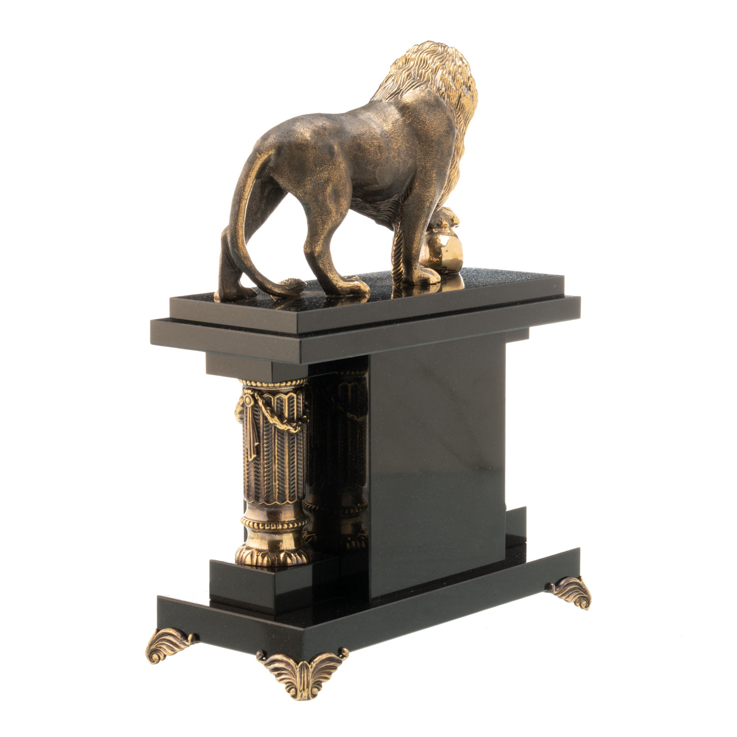 Часы настольные из натурального камня "Лев".Материалы: яшма, бронза, золочение.