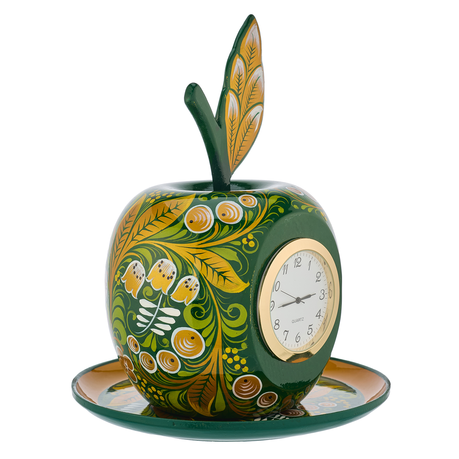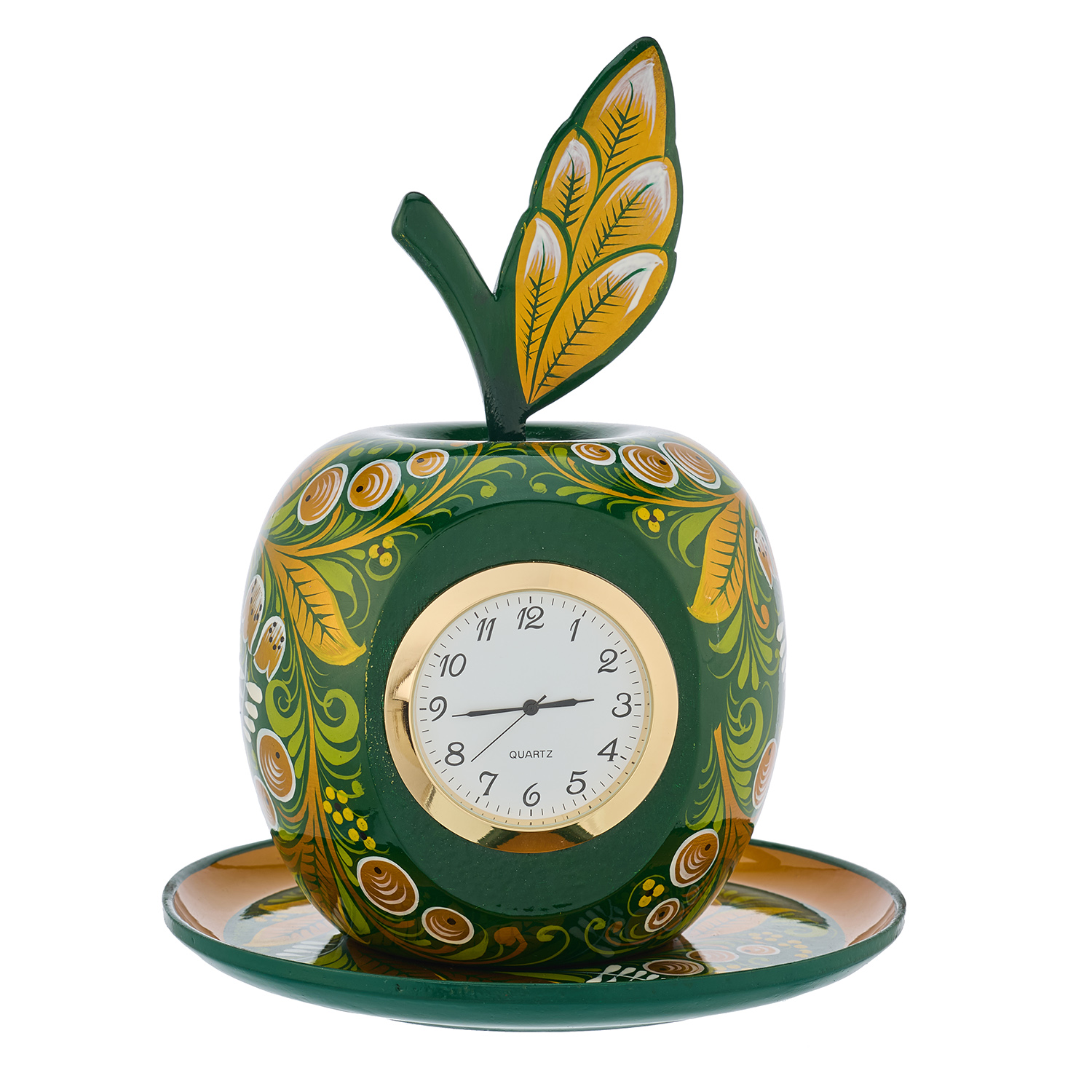 Настольные часы "Яблоко на тарелочке". Хохлома