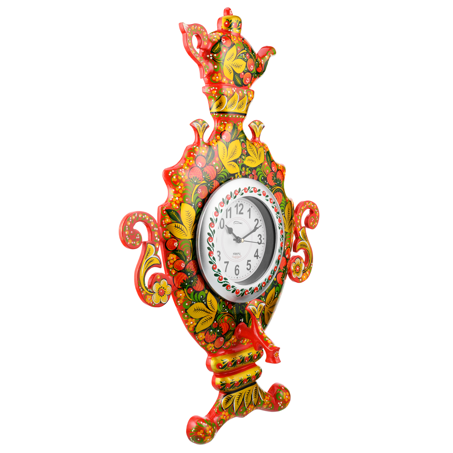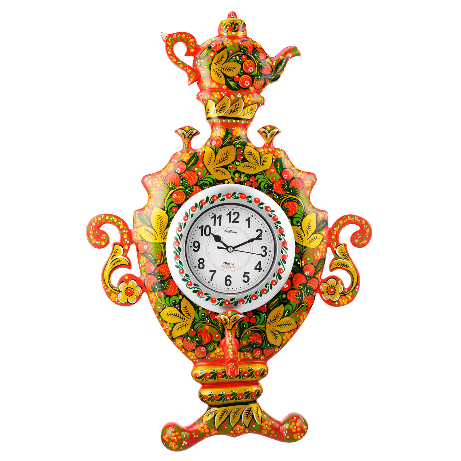Русские подарки и сувениры → Интерьерные изделия → Часы → Часы настенные с росписью "Самовар". Хохлома