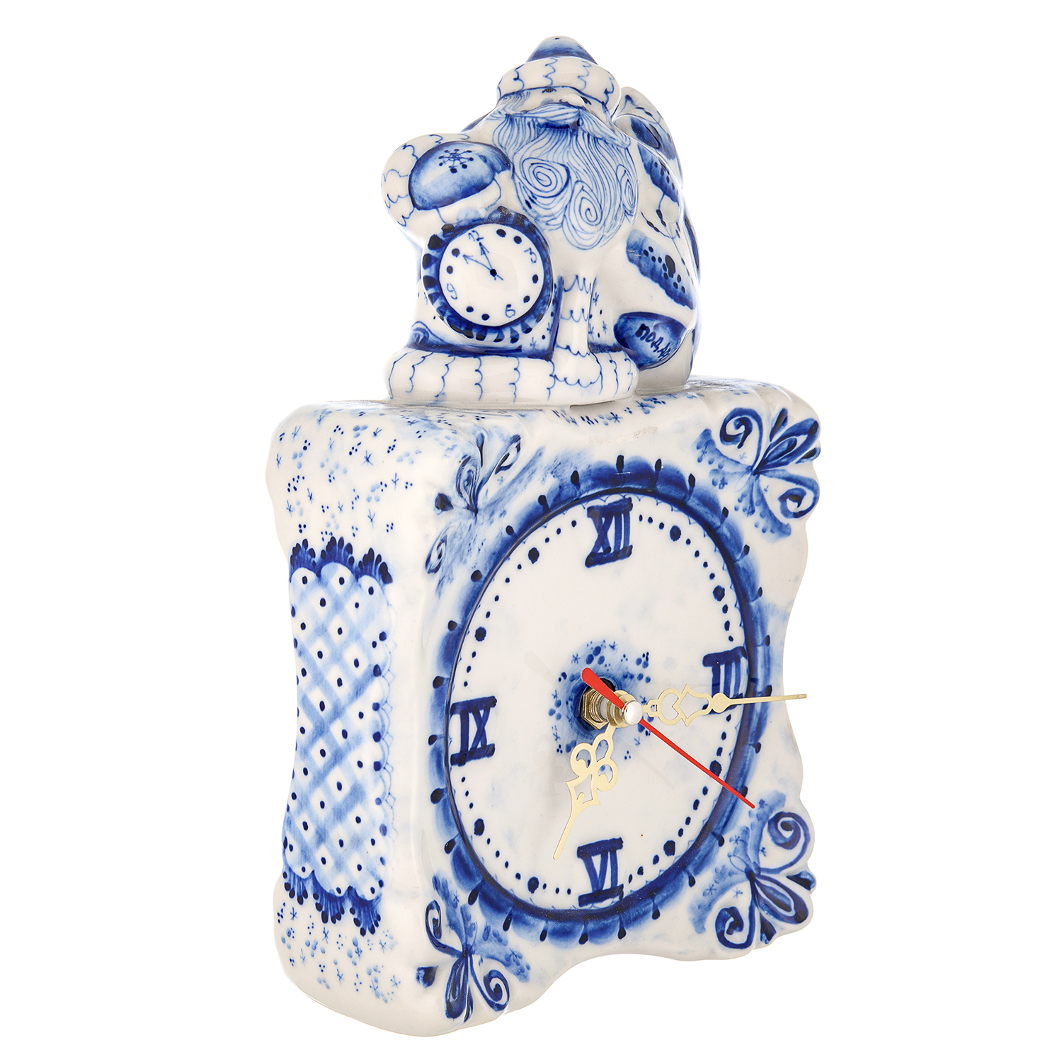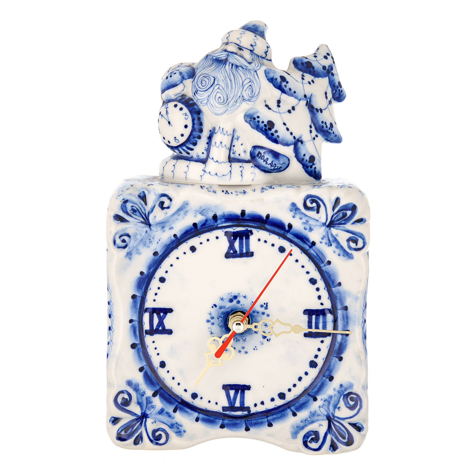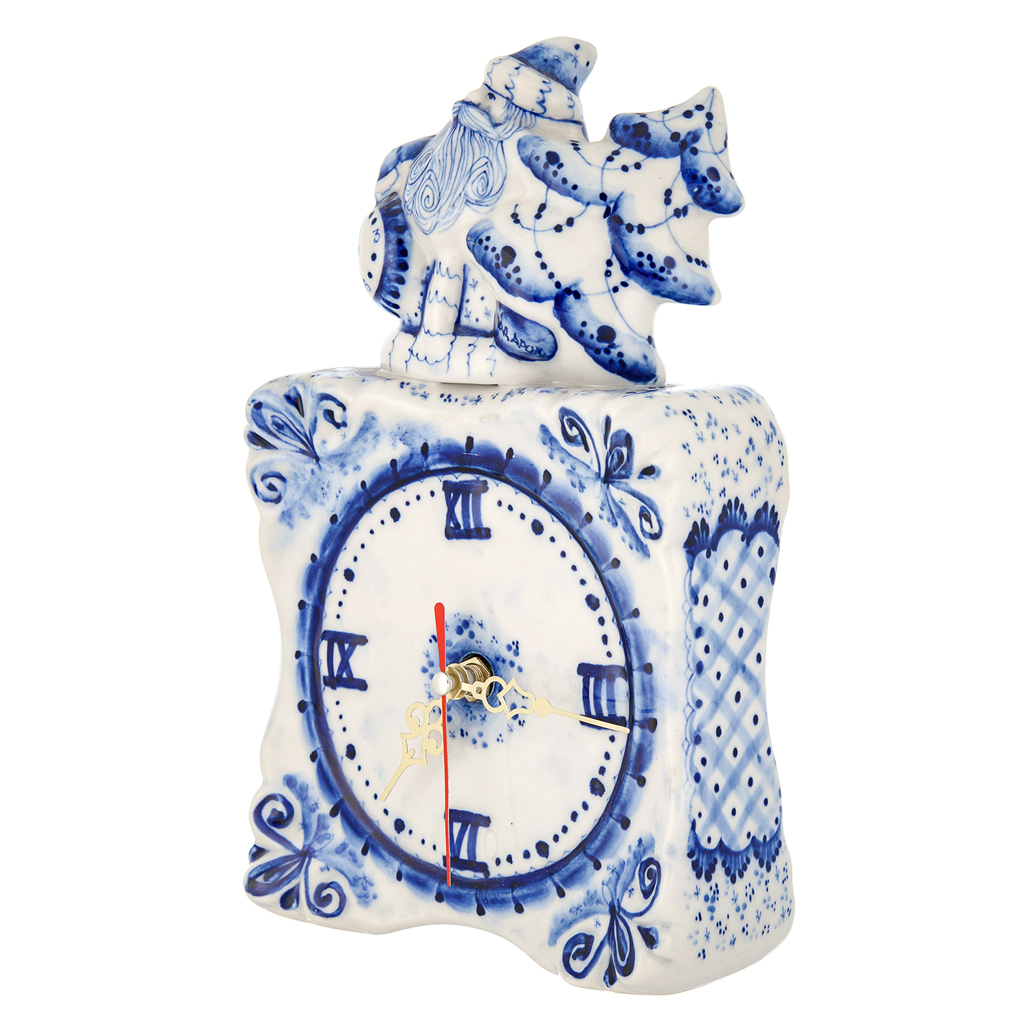 Русские подарки и сувениры → Интерьерные изделия → Часы → Часы настольные фарфоровые "Морозко". Фарфор Гжель