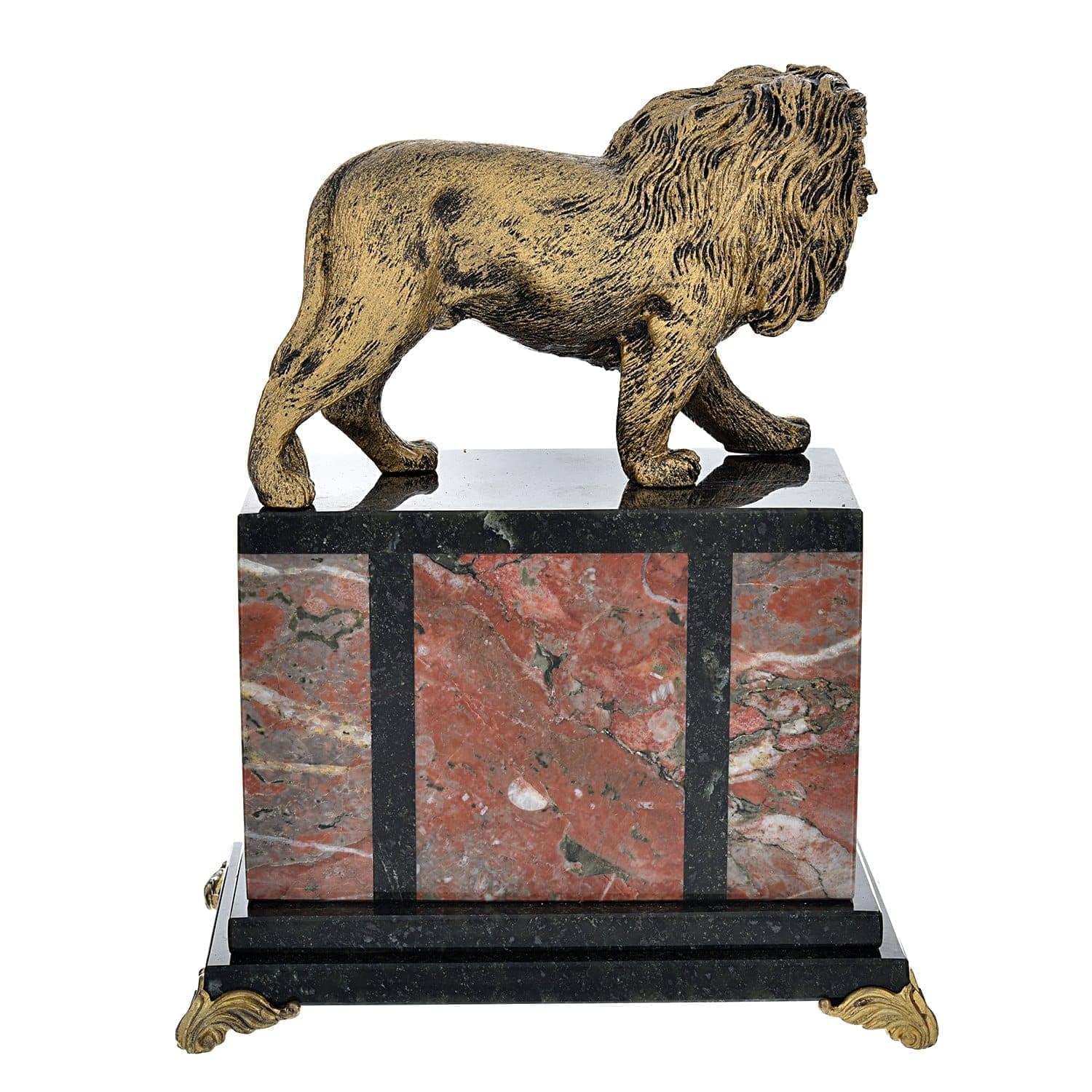 Заполучить в кабинет бронзового Льва, символа власти и силы, - это привилегия. Вашему вниманию - настольные часы в имперском стиле с монументальным корпусом из природного минерала, камней змеевика и мрамолита. Часы со скульптурой льва - образцом художественного литья - создают в интерьере символичный акцент и место силы...Материал: