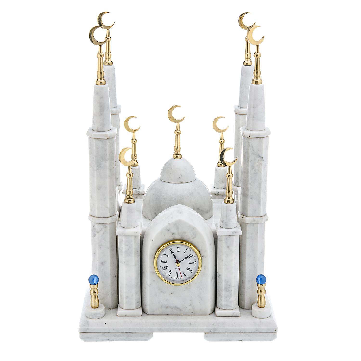 В галерее дорогих подарков "Русь Великая" представлен небольшой выбор эксклюзивных интерьерных аксессуаров для представителей народов России, исповедующих ислам, - мусульман. Вашему вниманию предлагаются авторские часы "Мечеть", изготовленные вручную по авторскому эскизу в виде красивого мусульманского молитвенного архитектурного сооружения с несколькими башнями-минаретами.