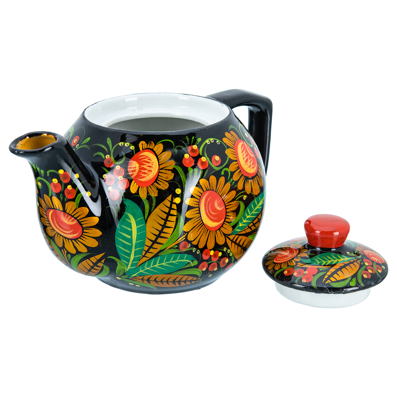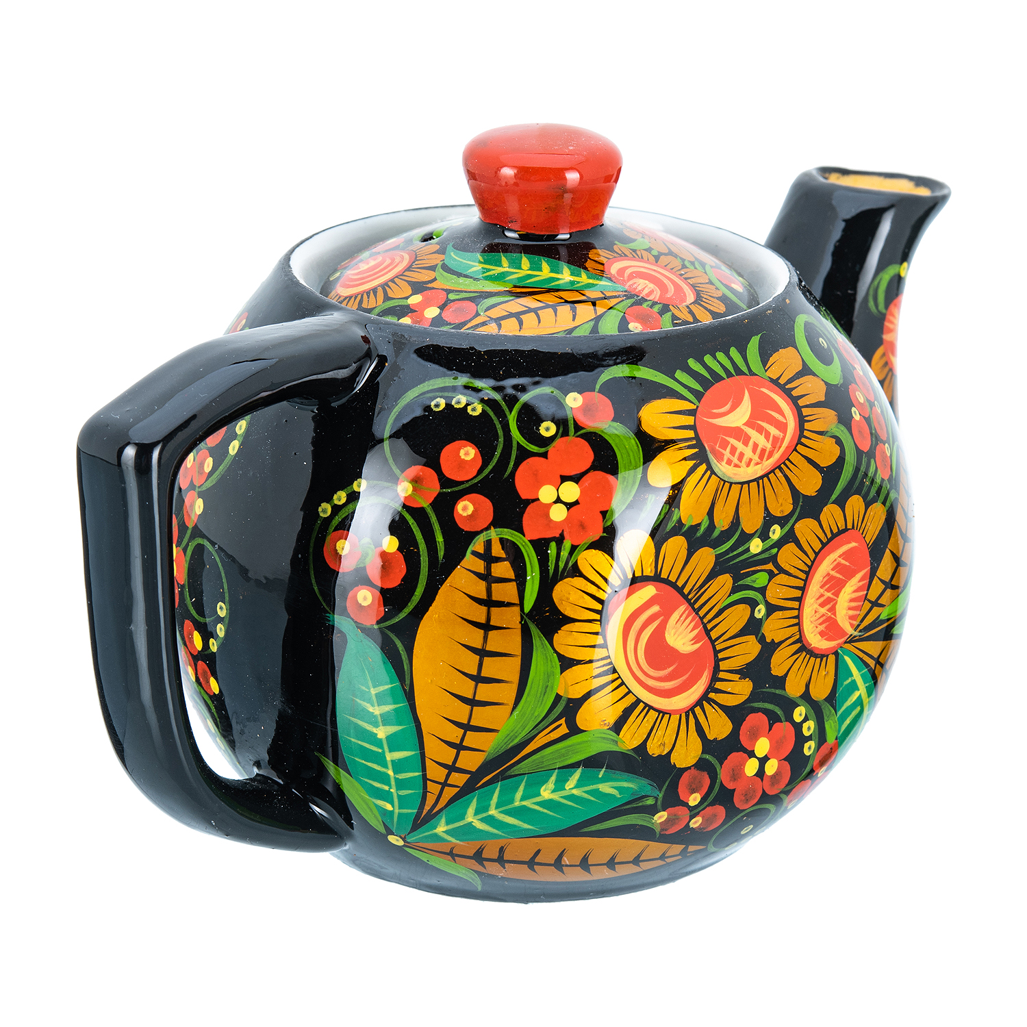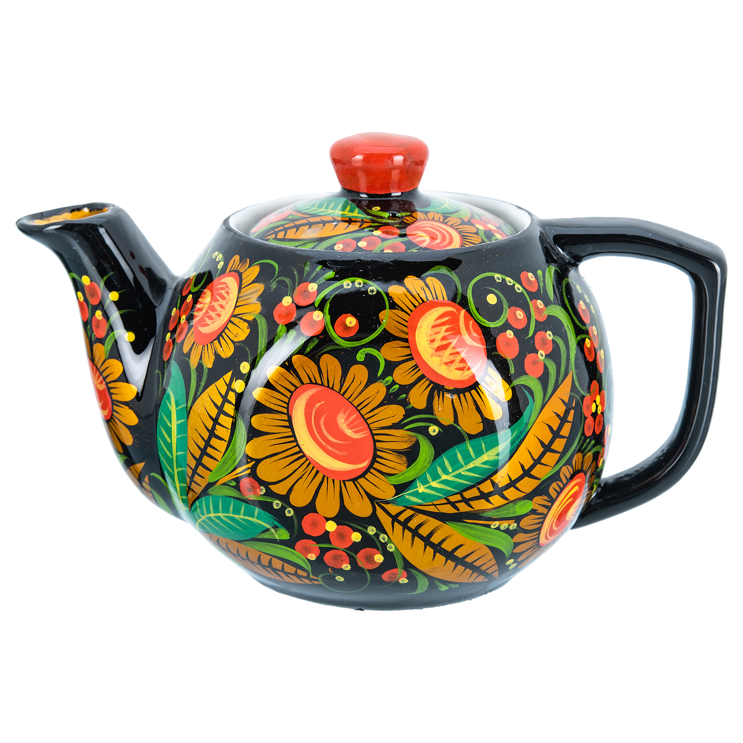 Чайник заварочный 0,7 л "Ромашка". Хохлома.Материалы: фарфор, краски, лак.