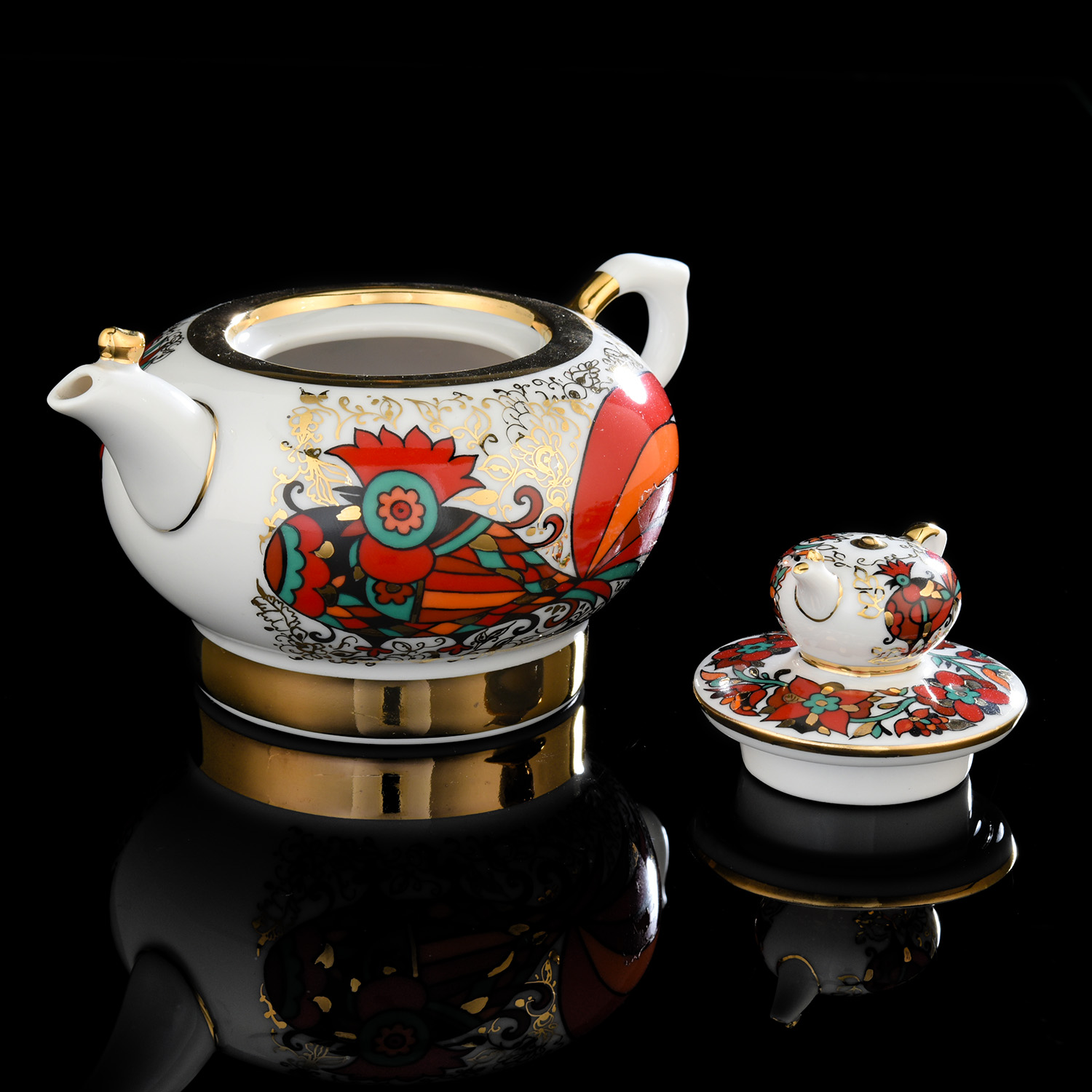 Чайник заварочный 250 мл "Красный петух". ИФЗ.Материал: фарфор.