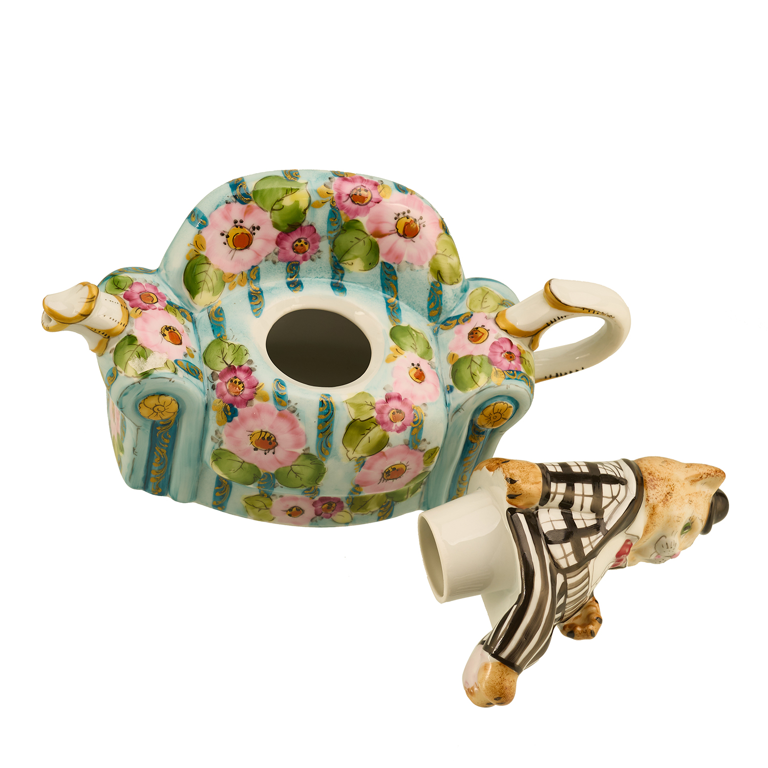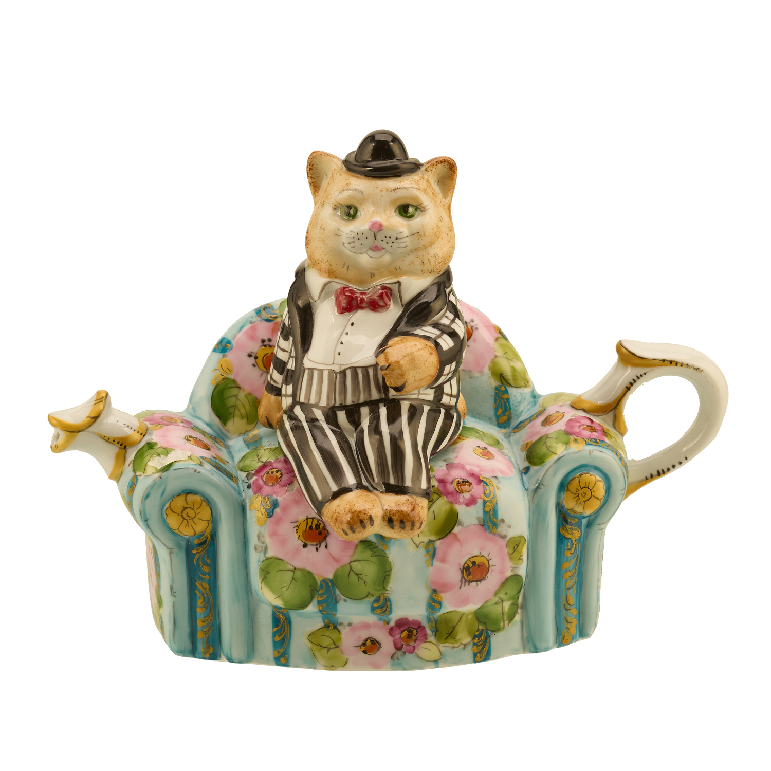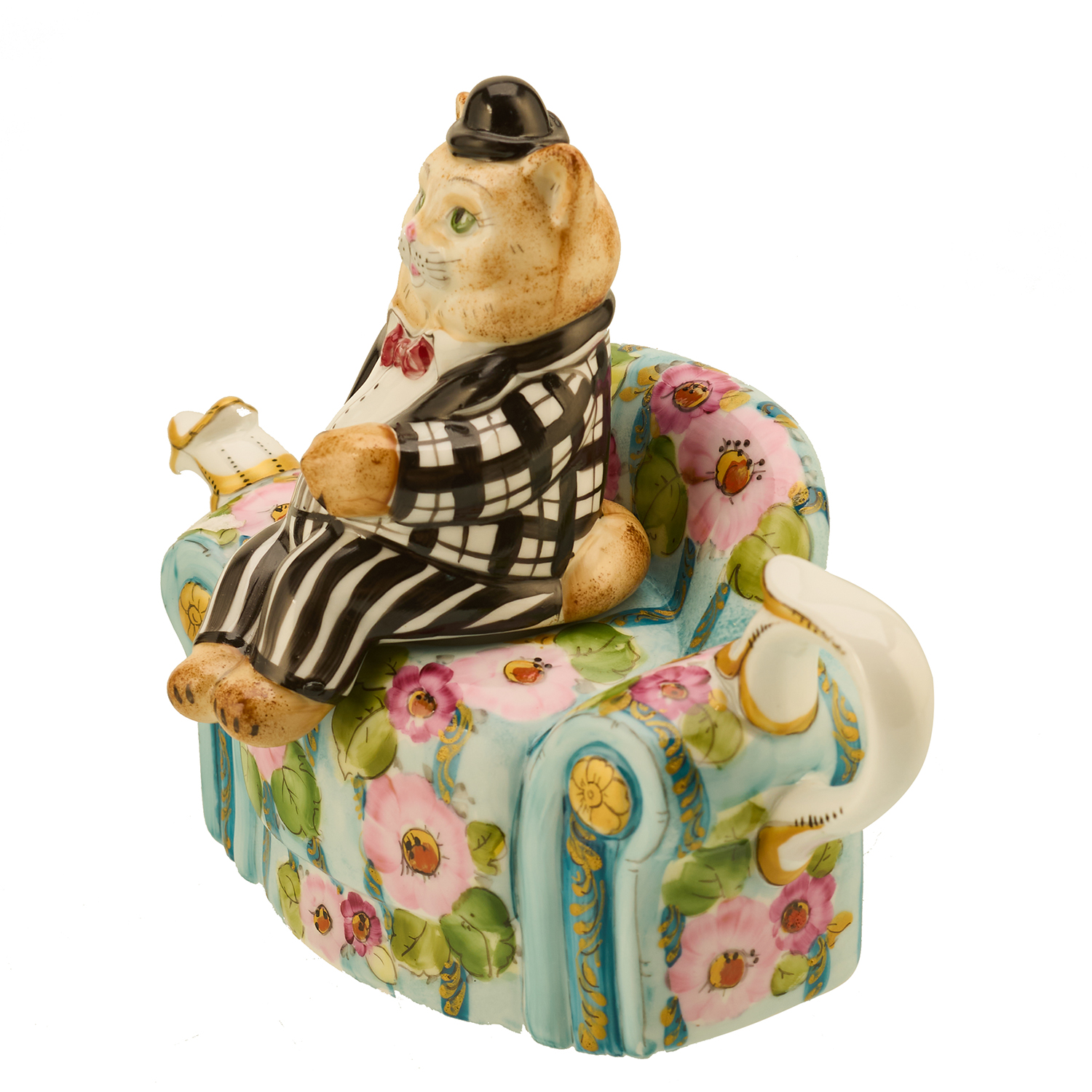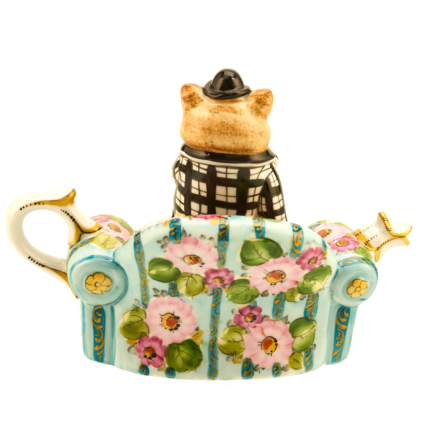 Чайник коллекционный "Кот на диване". Гжель в цвете