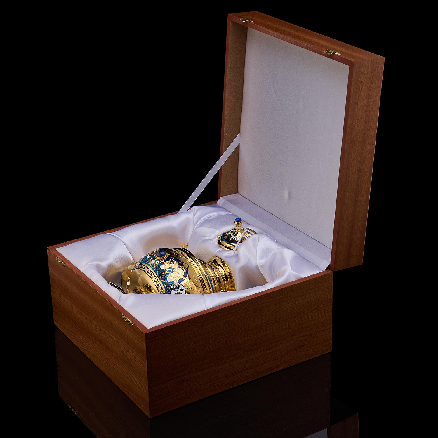 Чайник с лазуритом и эмалью "Гжель". Златоуст
