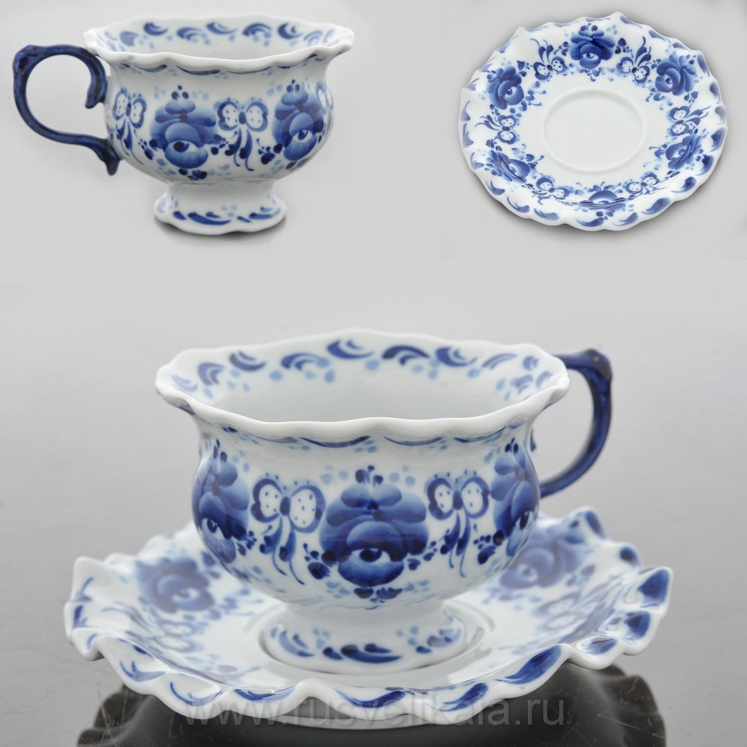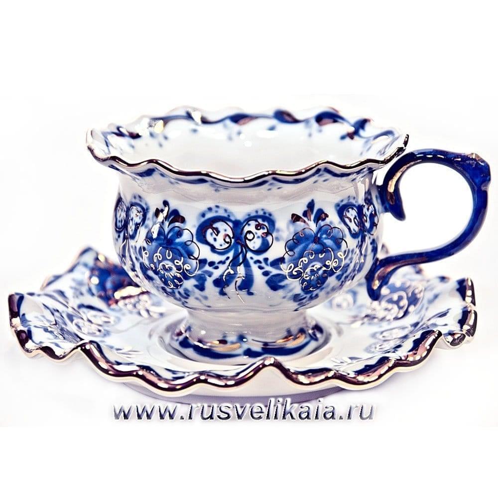 6420/зол Гжель Чайная пара "Любимая" в золоте 7*9,5см АР Тарыгин