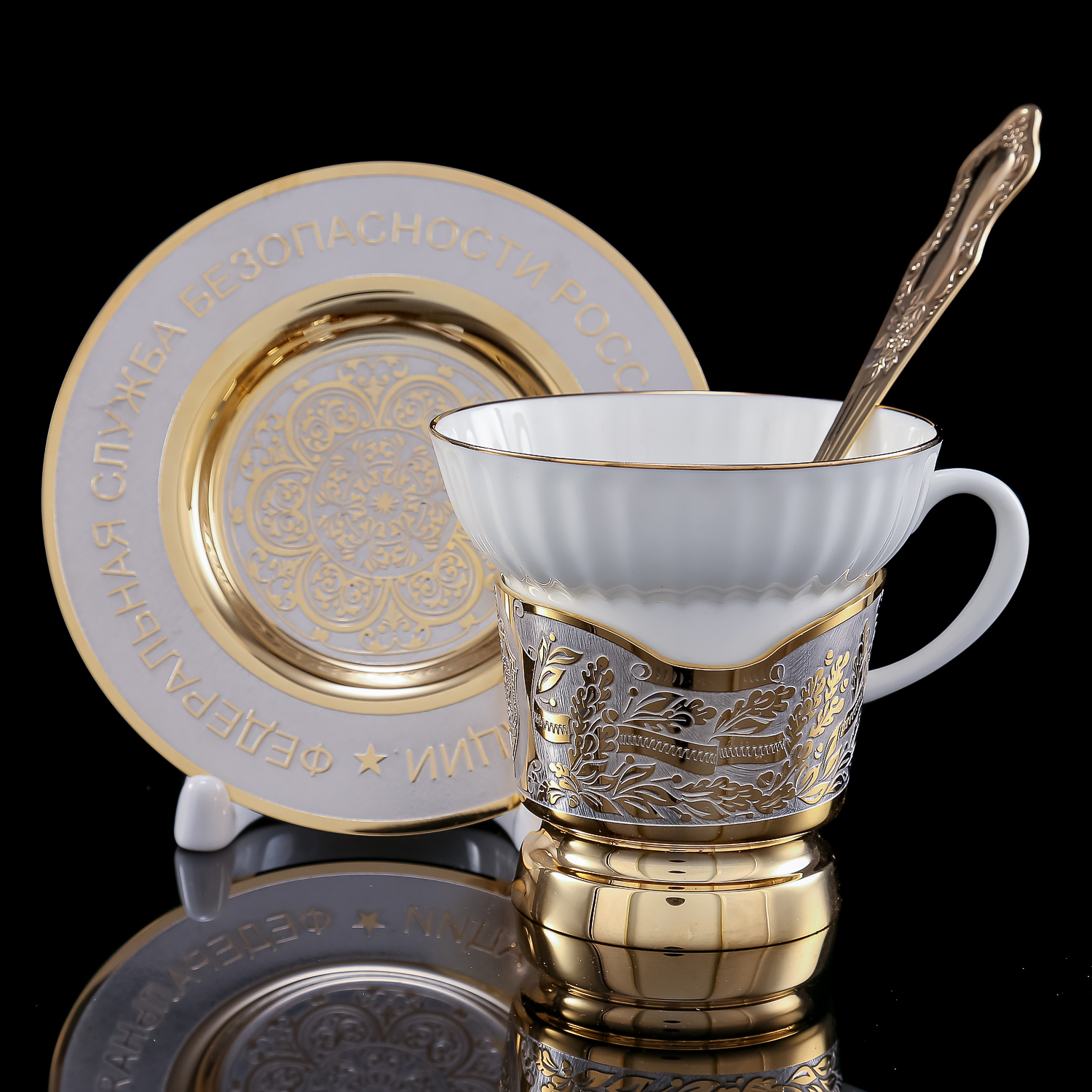 Материалы: латунь, никель, золото 999,9*, костяной фарфор.