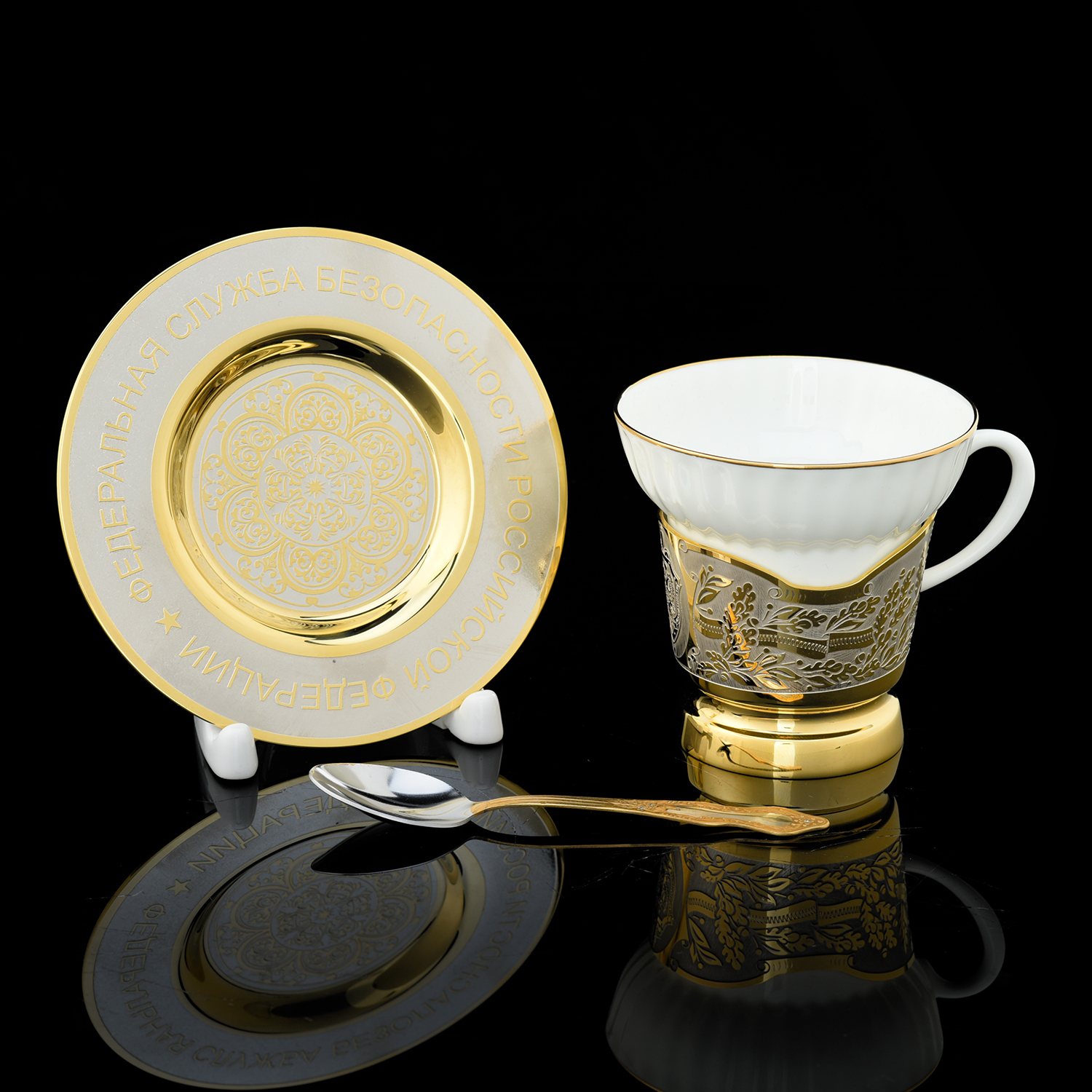 Материалы: латунь, никель, золото 999,9*, костяной фарфор.