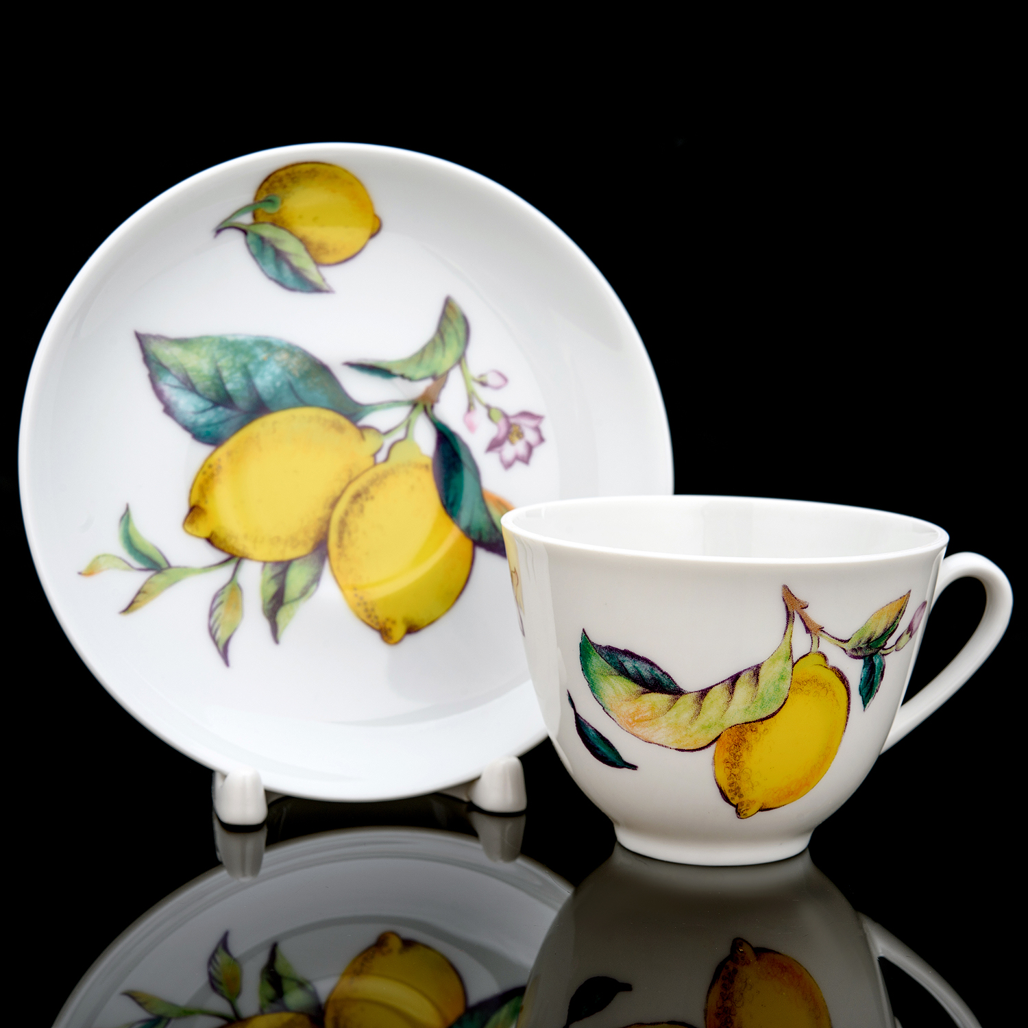 Русские подарки и сувениры → Посуда → Чайные пары → Чайная пара 250 мл "Лимоны". Форма Весенняя. ИФЗ