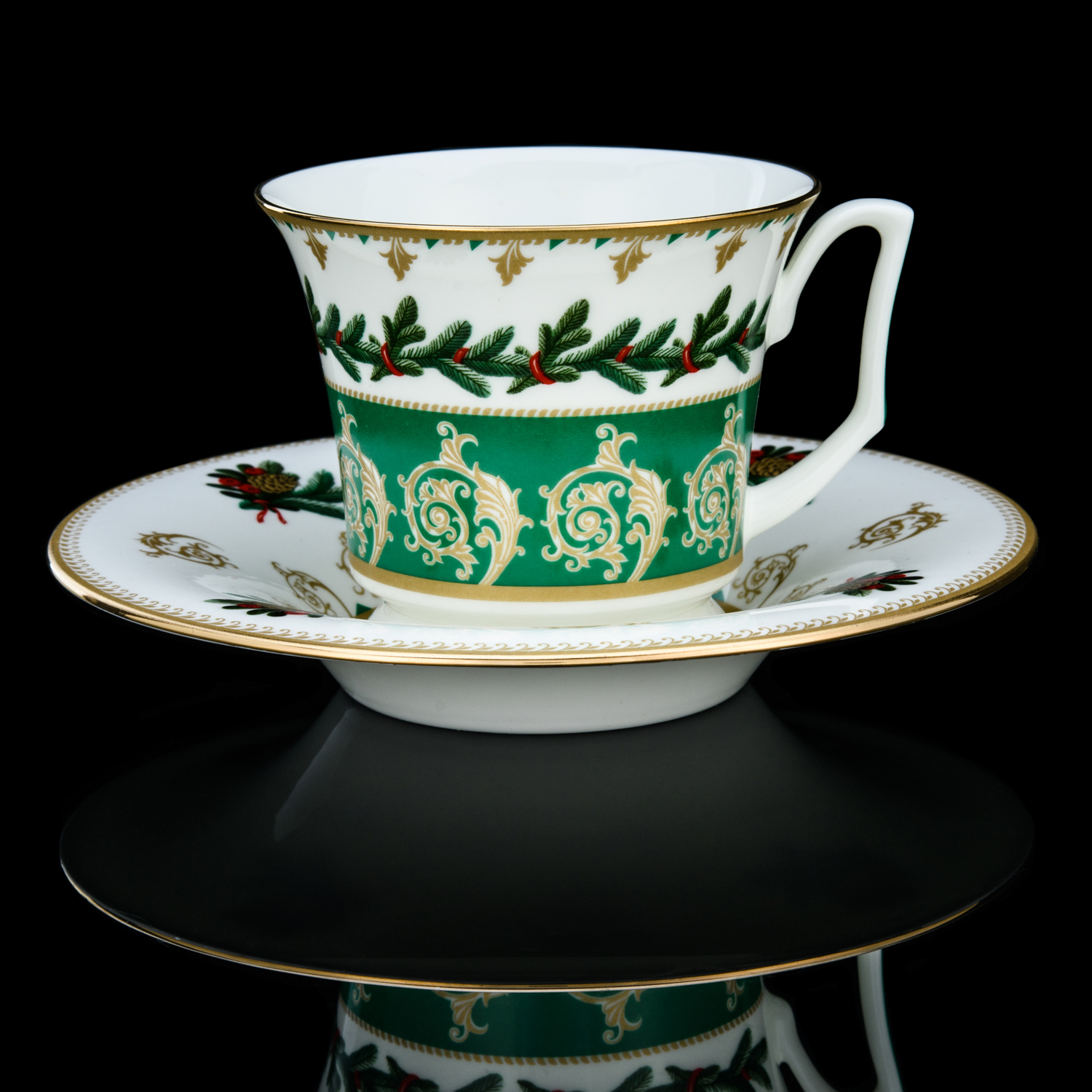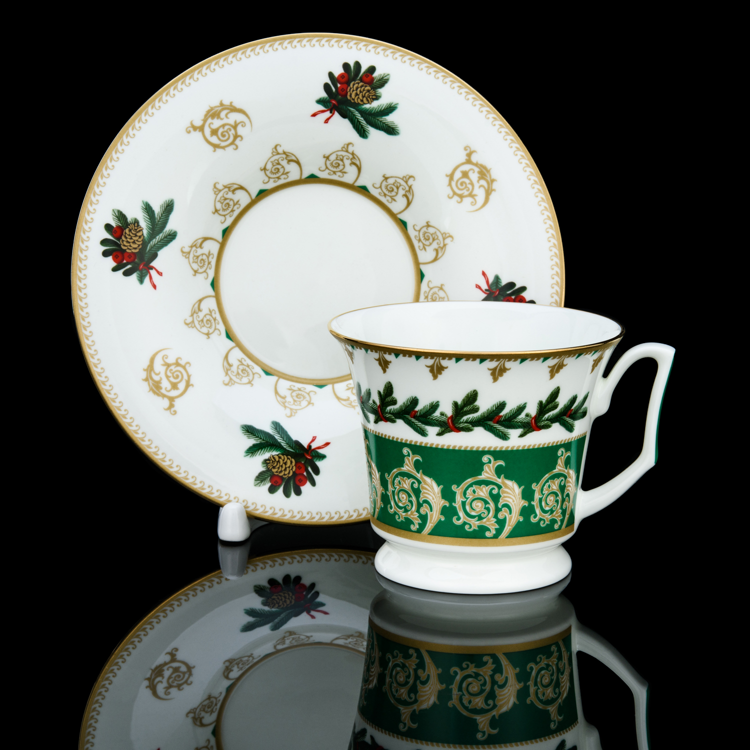 Русские подарки и сувениры → Посуда → Чайные пары → Чайная пара 210 мл "Еловые веточки". Форма Юлия. ИФЗ