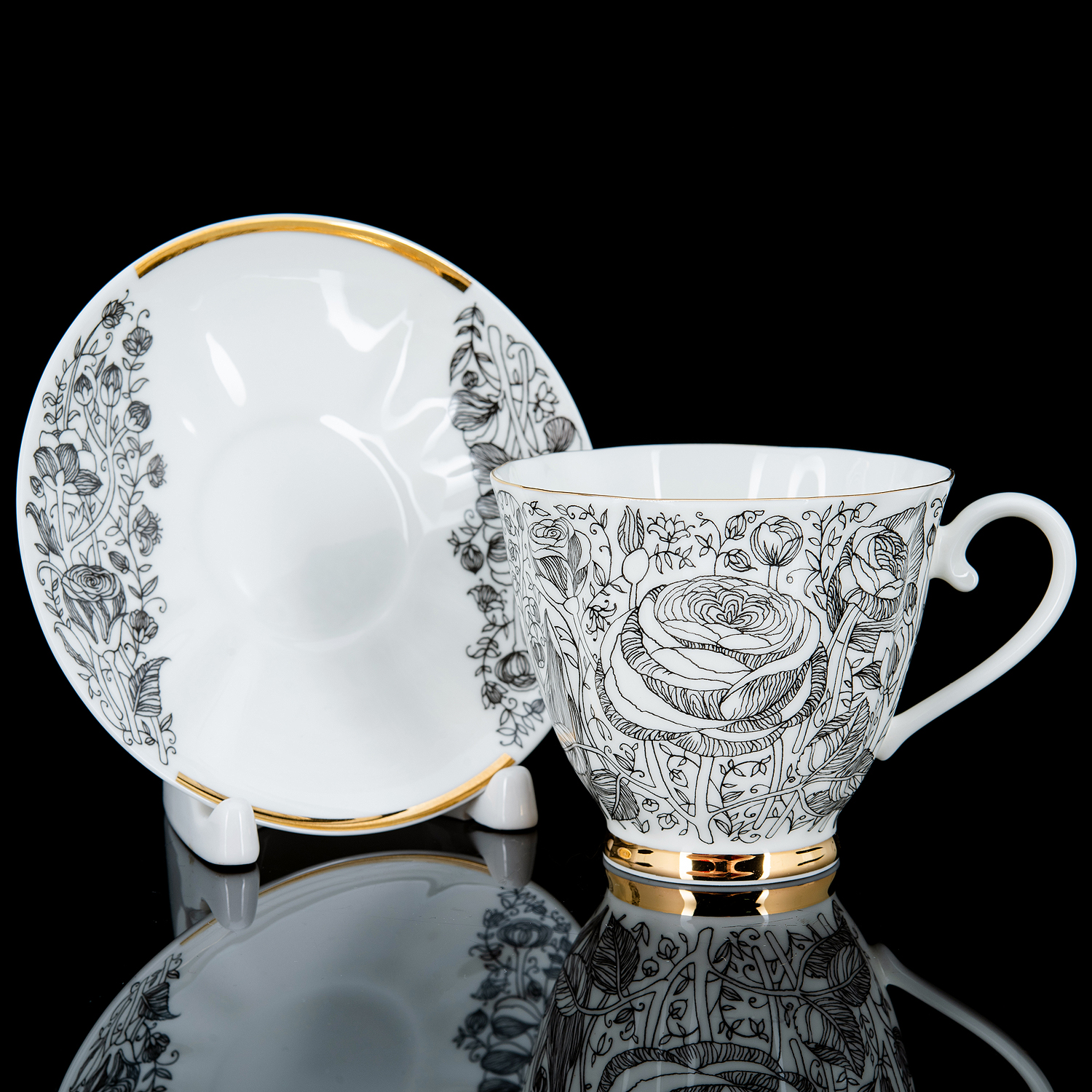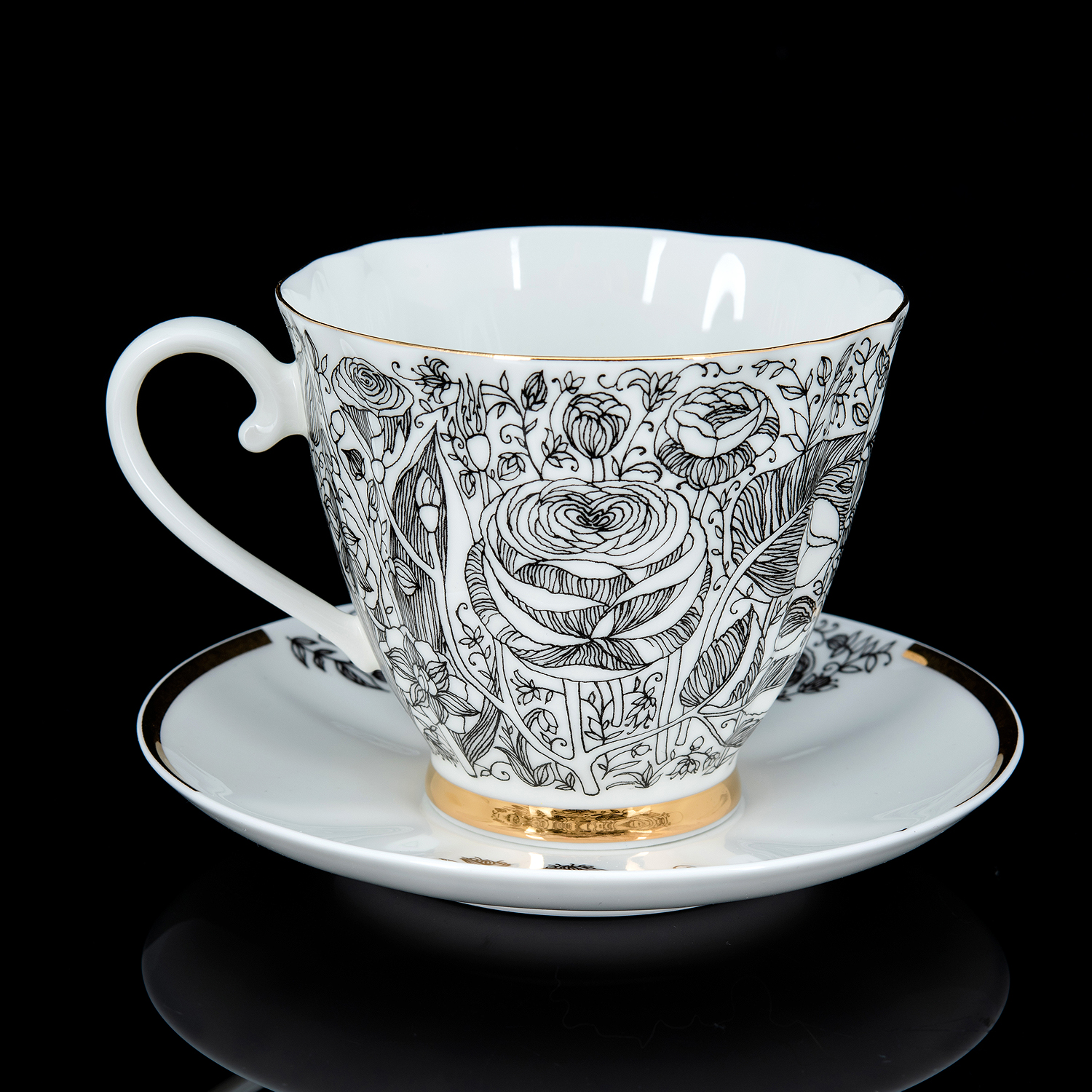 Чайная пара 200 мл "Лето черное". Форма Гвоздика. ИФЗ.Материал: костяной фарфор.