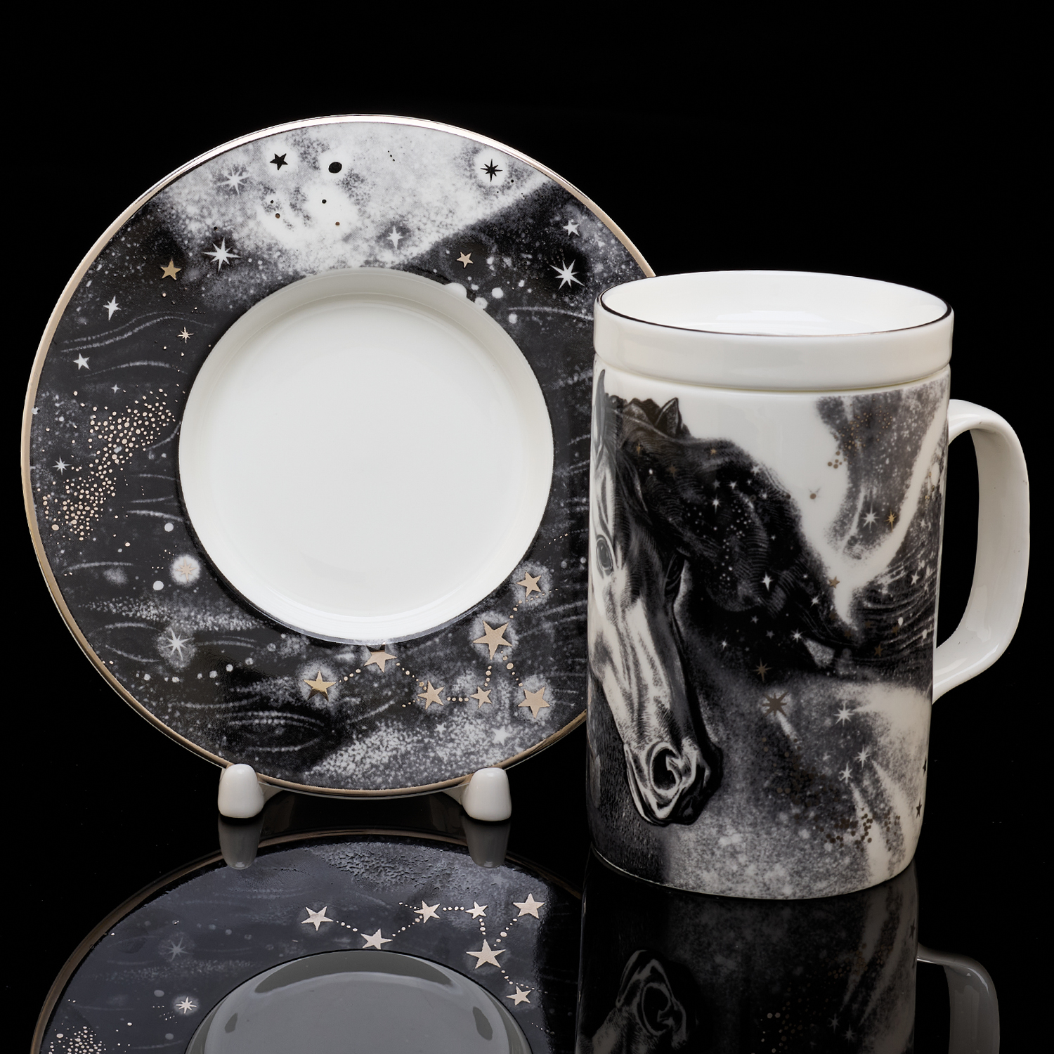 Чайная пара 400 мл "Черный мустанг". Форма Топ. ИФЗ.Материал: фарфор.