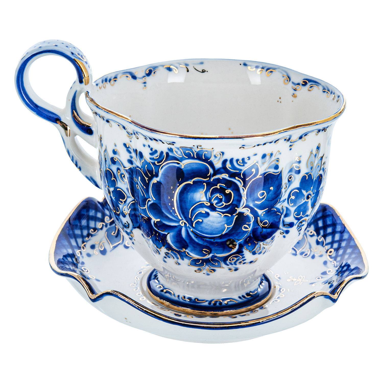 Чайная пара "Домашняя". Гжель в золоте.Материал: фарфор.