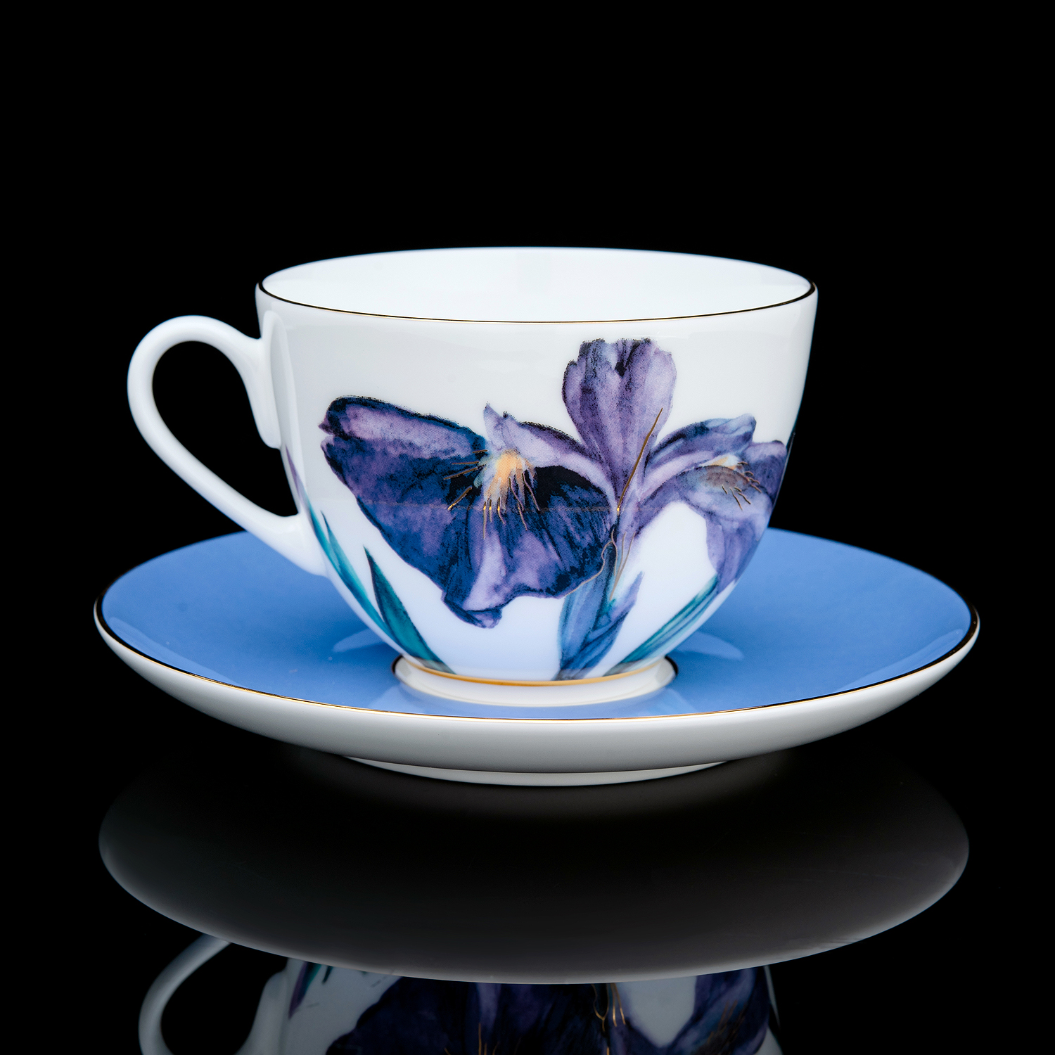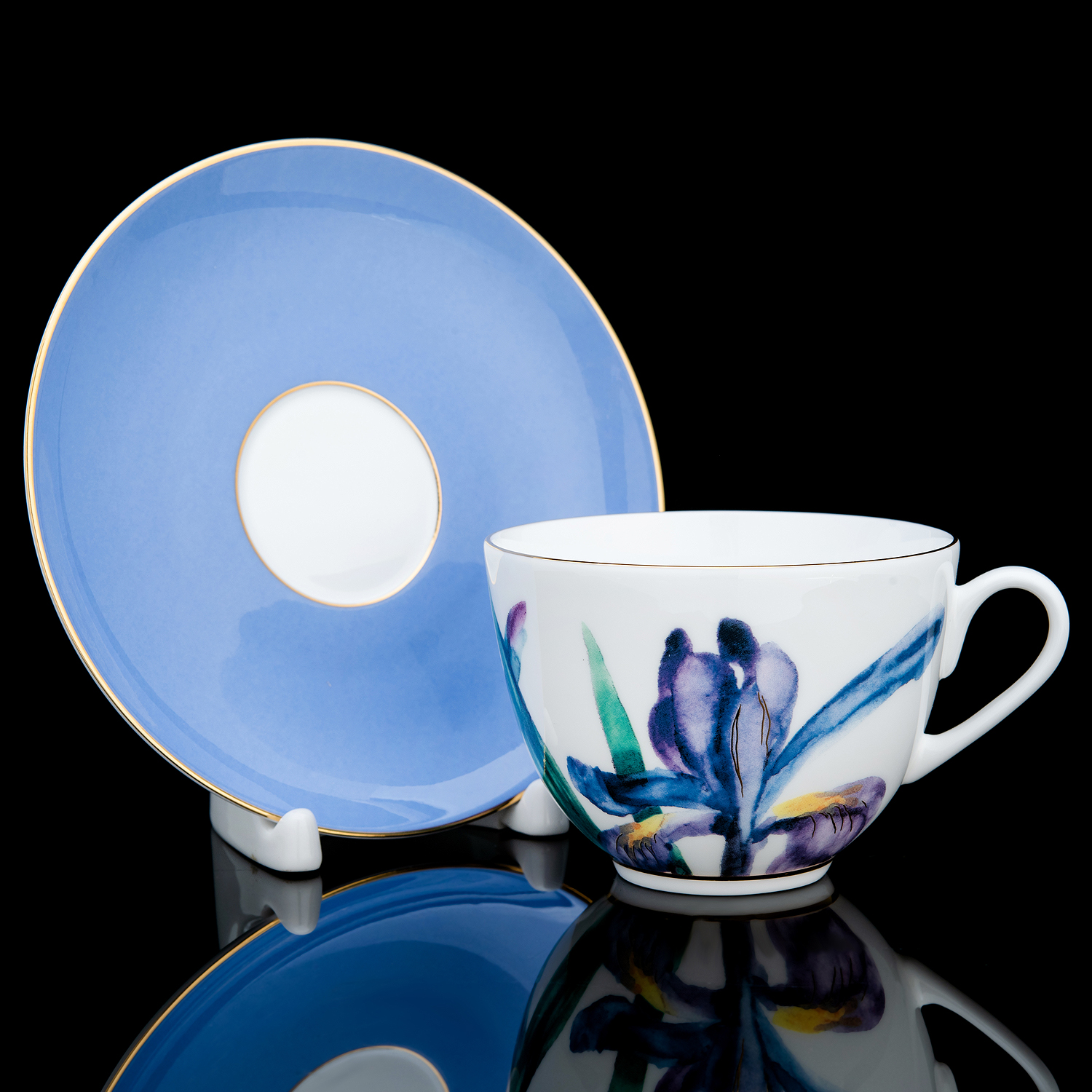 Чайная пара 250 мл "Аметистовое пламя". Форма Весенняя-2. ИФЗ.Материал: костяной фарфор.